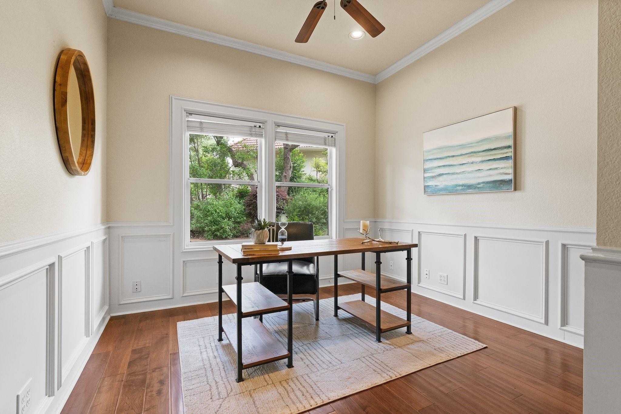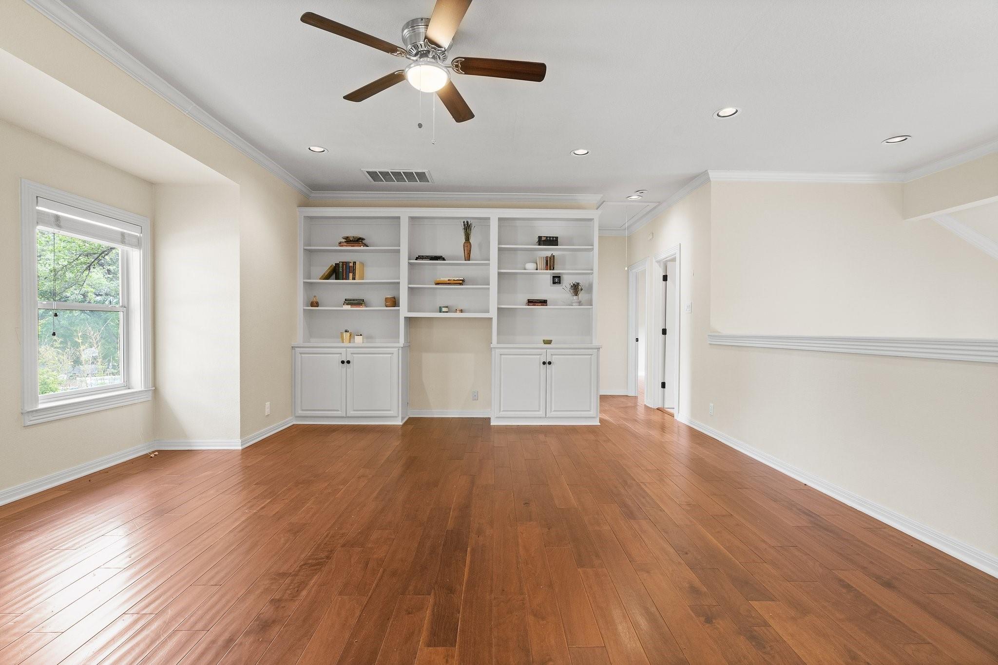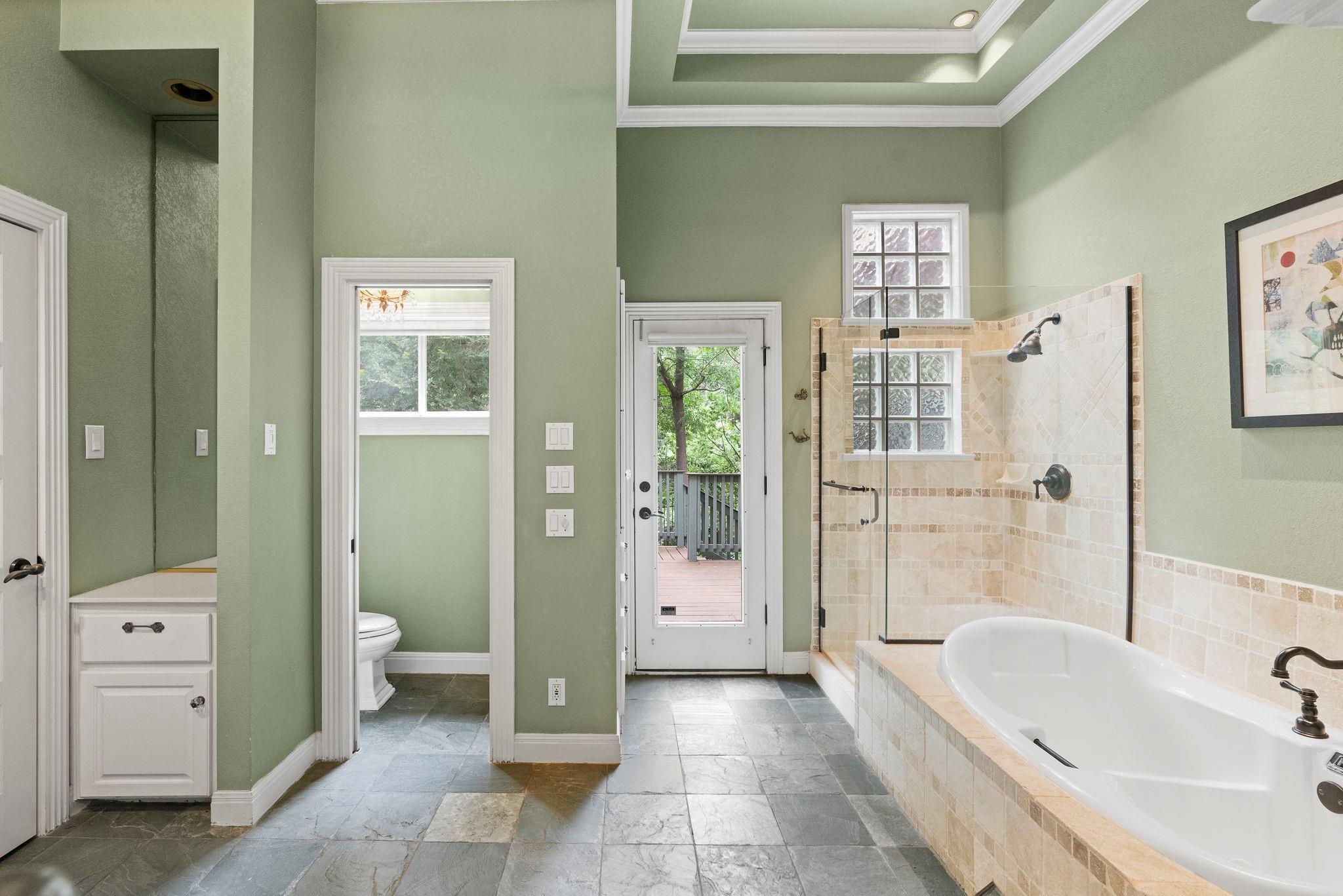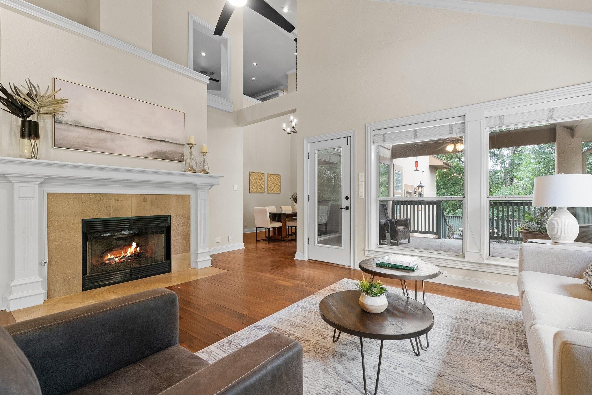 Exquisite luxury residence nestled along Lake Austin’s picturesque Bull Creek Tributary in the highly sought-after Courtyard community of NW Austin. Positioned along a tranquil section of the lake, the home features spectacular views of the private lakefront park and majestic Cat Mountain cliffs. A rare gem, it boasts exclusive access to Lake Austin through its DEEDED BOAT SLIP. Captivating curb appeal incorporates elegant stucco with arched windows, professionally landscaped grounds with majestic live oaks, and a 3-car garage. The expansive interior encompasses 3 beds, 2.5 baths, a home office, a formal parlor, multiple living and dining areas, and a gourmet kitchen. Every corner exudes charm, boasting tall ceilings, tasteful fixtures, crown molding, recessed lighting, and stunning hardwood floors. The chef-inspired gourmet kitchen is replete with timeless cabinetry, high-end ubatuba granite countertops, a SubZero refrigerator, and a Thermador SS gas range. Flowing seamlessly from the kitchen, the welcoming family room invites relaxation beneath its soaring vaulted ceilings, with an elegant wood-burning fireplace serving as its centerpiece. The breathtaking outdoor areas include a covered back porch, al fresco dining deck, and an expansive brick patio with hill country and creek views. A luxurious gas fireplace seamlessly rests between the oversized owner’s suite and spa-like ensuite bath featuring a soaking tub, walk-in shower, dual vanity, and private entry to the back deck. The second-floor welcomes you to a versatile game room with a built-in desk and bookcases, two secondary bedrooms, and a guest bathroom. For a low monthly HOA fee, residents of the Courtyard enjoy a park on Lake Austin, dock, playground, picnic facilities, nature trails, and kayak storage. Come enjoy the unparalleled luxury lifestyle at this remarkable residence where natural beauty, refined elegance, and serene surroundings seamlessly merge to create a truly enchanting living experience.