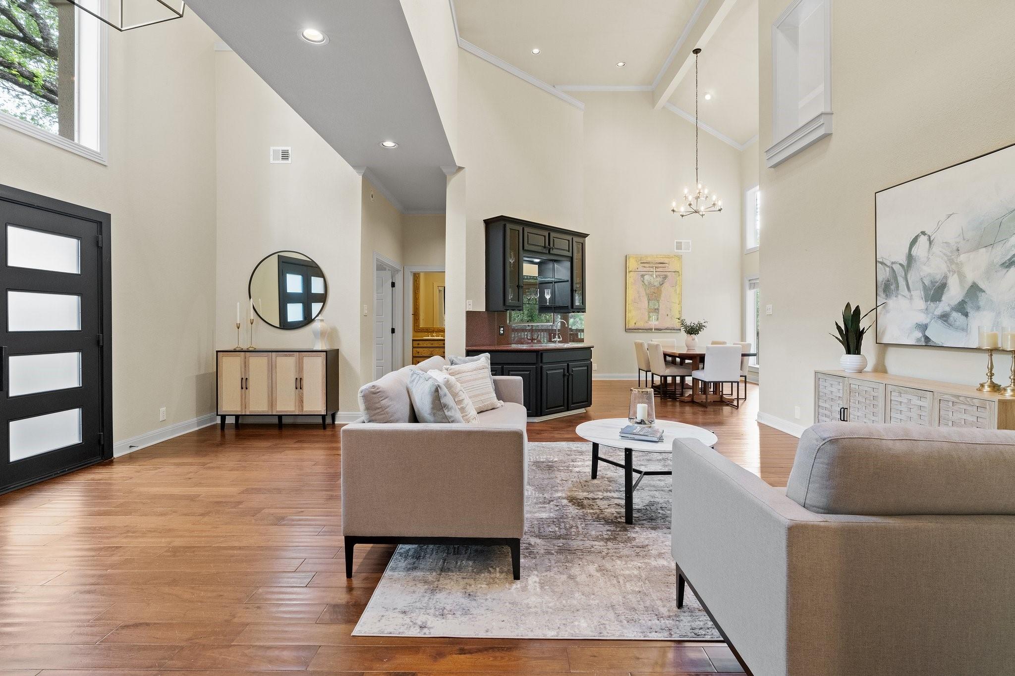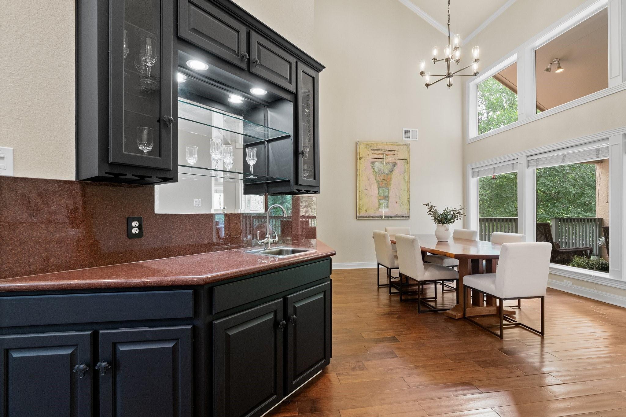 | Interior Features | Bar, Bookcases, Breakfast Bar, Built-in Features, Ceiling Fan(s), High Ceilings, Tray Ceiling(s), Vaulted Ceiling(s), Chandelier, Granite Counters, Tile Counters, Crown Molding, Double Vanity, Electric Dryer Hookup, Gas Dryer Hookup, Entrance Foyer, Interior Steps, Kitchen Island, Multiple Dining Areas, Multiple Living Areas, Open Floorplan, Pantry, Primary Bedroom on Main, Recessed Lighting, Soaking Tub, Storage, Walk-In Closet(s), Washer Hookup, Wet Bar | |