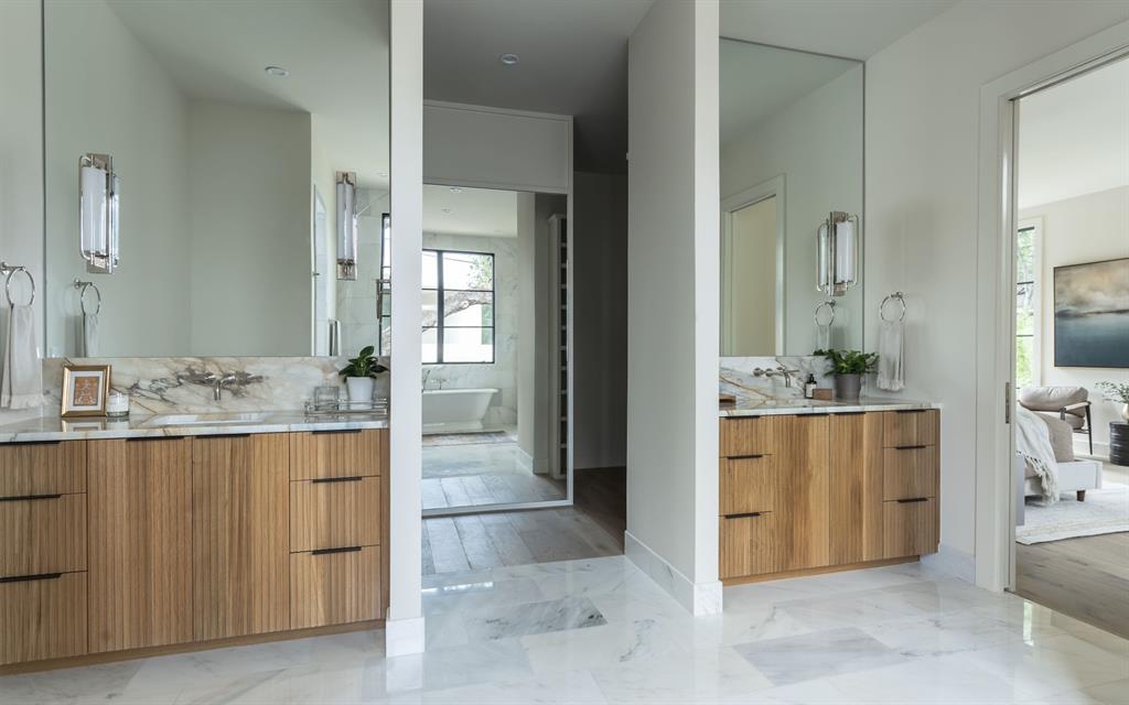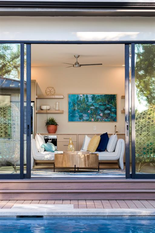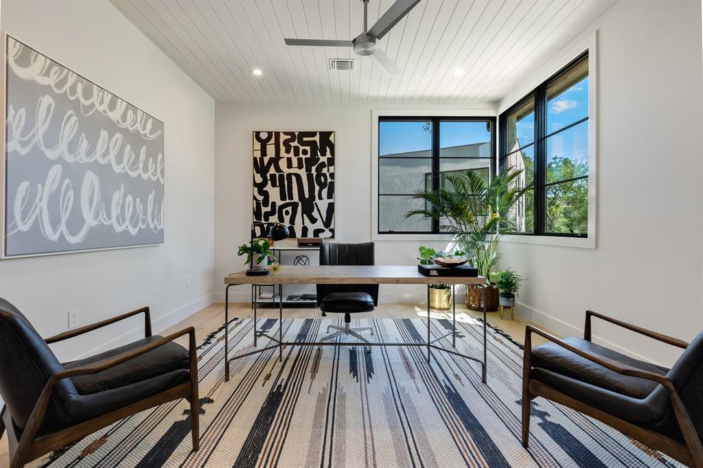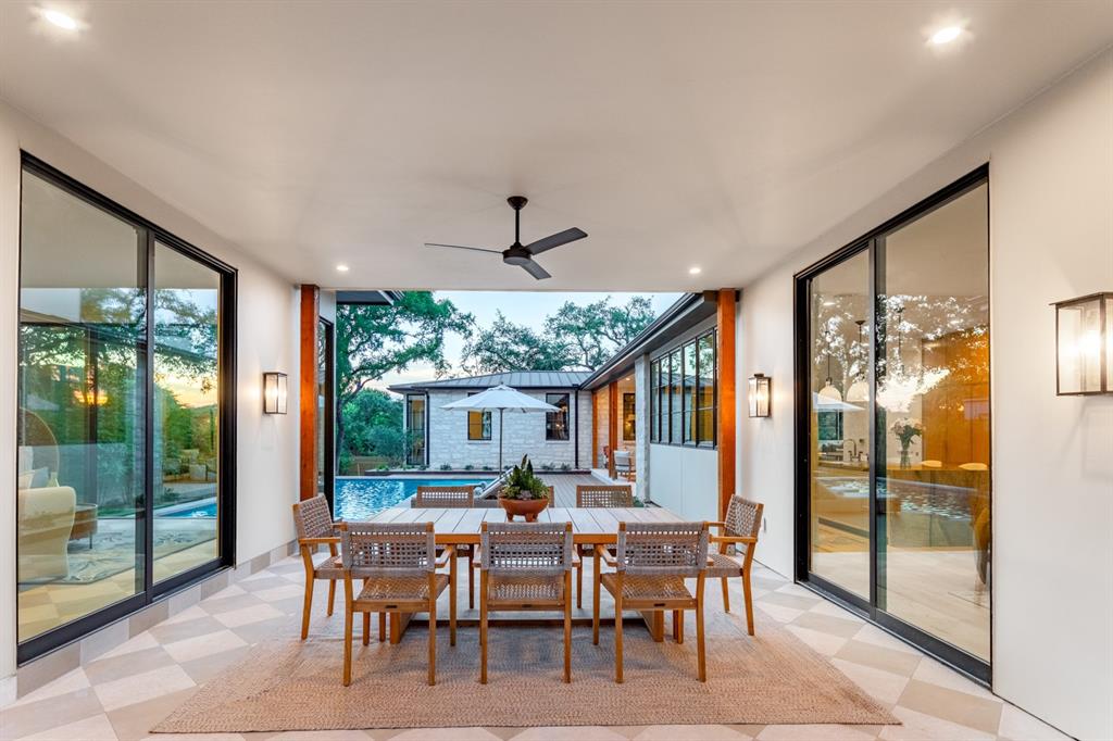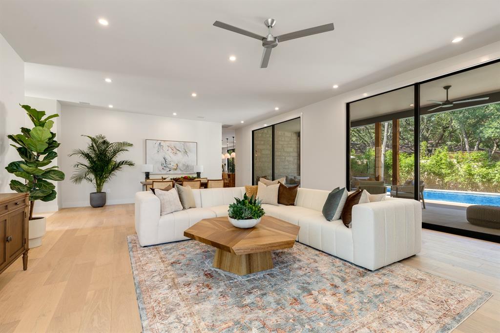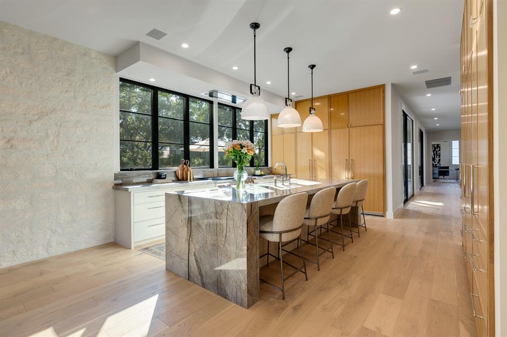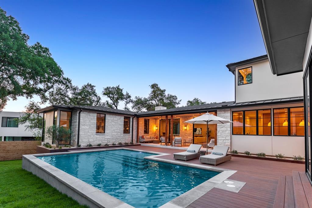 Come experience this luxurious, modern new-build in Barton Hills. Situated on almost a third acre and steps from Barton Hills Elementary, the gorgeous Barton Creek Greenbelt, Zilker Park, Barton Springs, restaurants/shops on S. Lamar and Barton Springs Rd, Lady Bird Lake and surrounding hike and bike trails and much more! The house has 5 bedrooms, 5.5 bathrooms and is 4531sf as per architect including separate poolhouse with kitchenette,full bath and walk-in closet. Design by FAB Architecture, built by Cobb Development, prepare to be be amazed at all of the exquisite features and finishes. Built like a custom home, no detail was overlooked. You will love the grand living and dining areas with custom stone fireplace, installed Frame TV and picturesque window seating overlooking lush backyard pool area through wall-to-wall Western sliders. Cook’s dream kitchen with stone walls, panel Wolf/Sub-Zero appliances, custom cabinets, beautiful stone countertops and an additional living area for lounging while cooking and entertaining.Rohl plumbing fixtures and designer lighting throughout.Walking down a library-like hallway you’ll arrive at the Owners Suite. This well-appointed and comfortable space feels so private while looking out to the backyard pool. Gorgeous primary bath has dual vanities and a dream closet with custom built-in cabinets and shelving.Adjacent to the Owners Suite is a private Executive Office.Upstairs you’ll find an additional living room/den at the top of the stairs and three secondary bedrooms,all with large en-suite bathrooms and walk-in closets.Finally, the backyard oasis includes ample covered and uncovered entertainment space and a large pool.There is also a separate pool house with kitchenette consisting of full-sized refrigerator,dishwasher,sink and an installed Frame TV, full bath and walk-in closet.This space could easily double as home gym,nanny quarters or overflow guest space.Large utility room and 2-car garage equipped with EV hookups.
