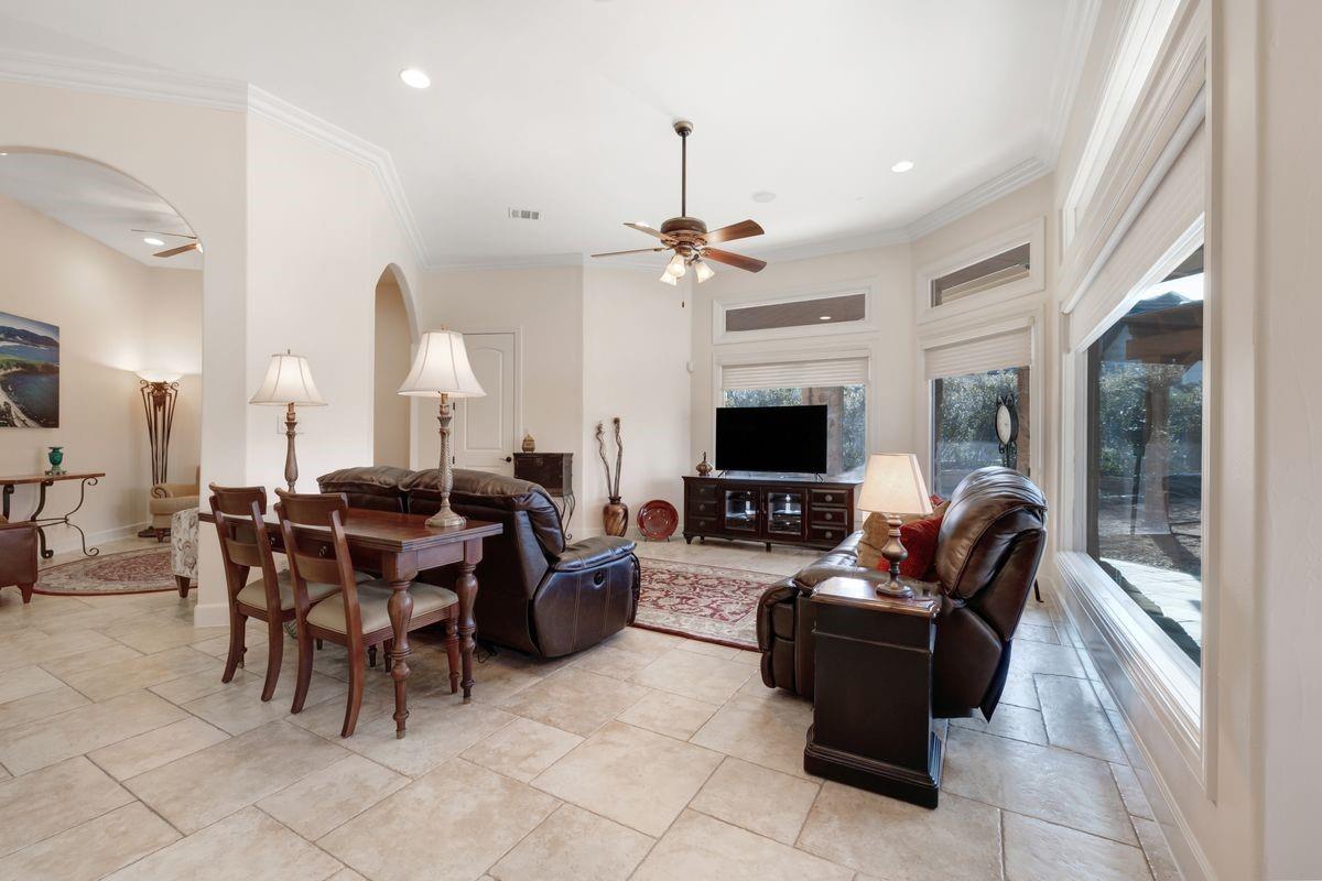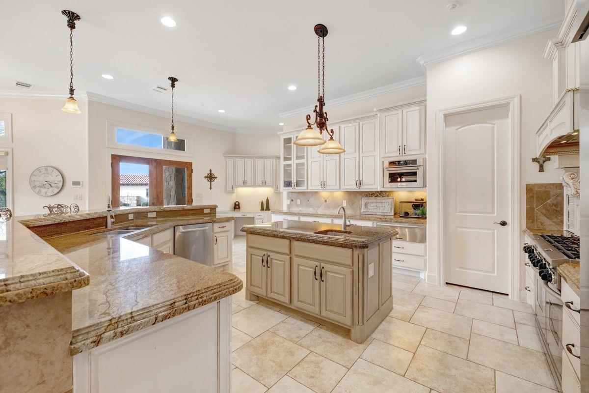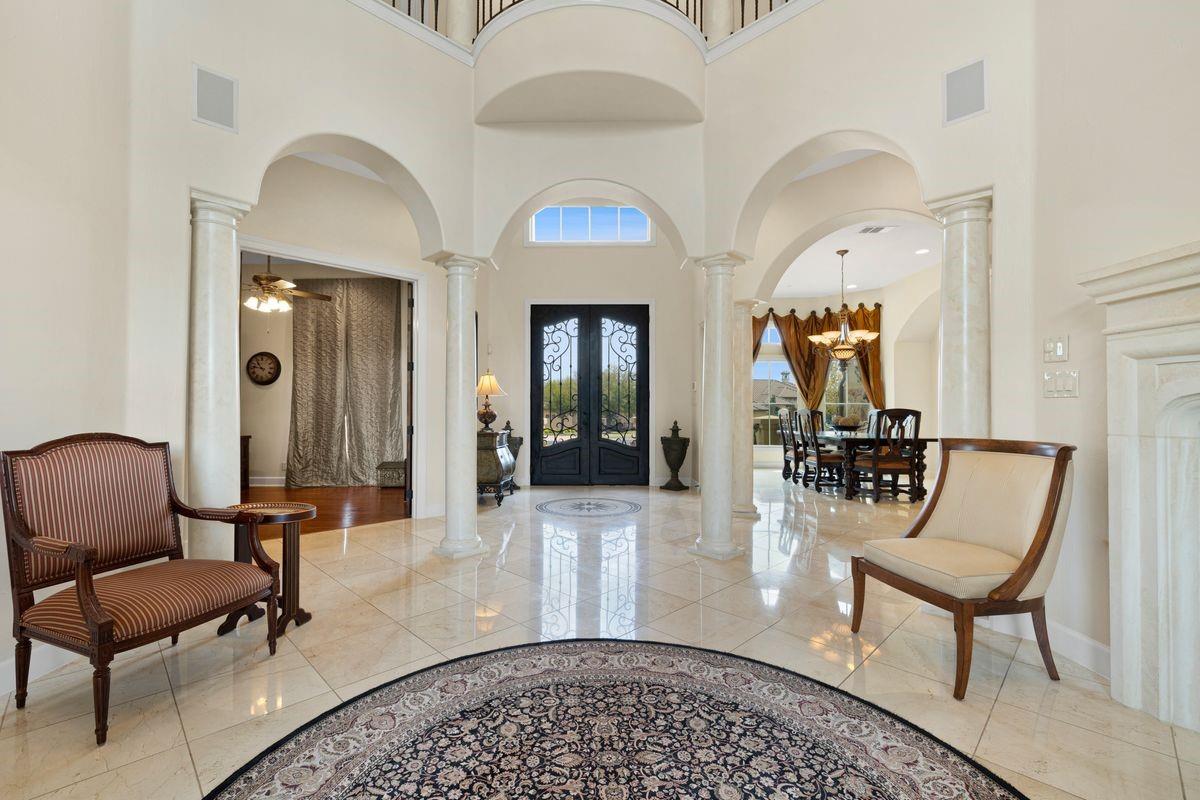 Welcome to Villa Royale! ~ http://www.villaroyaleoncimarronhills.com ~ This exquisite residence is nestled on a picturesque one-acre corner lot within the esteemed golf course community of Cimarron Hills. Experience the stately elegance and timeless charm of this remarkable masterpiece. Upon entering, you’ll be greeted by a voluminous foyer with a fireplace, an abundance of natural light, and views of the tranquility beyond. The thoughtful floor plan boasts multiple sitting areas, two bars, a home theater, and a formal dining room—providing ample space for hosting gatherings of any size. The chef’s kitchen, complete with generous storage and an additional catering area, is sure to delight culinary enthusiasts. Step outside to discover an expansive covered living area featuring an impressive stone fireplace, a tranquil koi pond, an outdoor kitchen, a pergola, and two spacious balconies overlooking the scenic golf course. Surrounded by breathtaking landscaping and lush flora, you’ll enjoy unparalleled privacy and natural beauty right at your doorstep. This property backs to the award-winning 18-hold Jack Nicklaus Signature Golf Course, offering endless opportunities to perfect your swing and enjoy the ultimate golfing experience. The Cimarron Hills Clubhouse features old-world architecture and modern amenities including the Cimarron Spa, newly renovated fitness center, men's and women's lockers and lounges, tennis courts, pickleball courts, swimming pool and world-class dining. Experience the epitome of luxury living at Cimarron Hills—a true gem and your own personal oasis awaiting its next discerning owner.