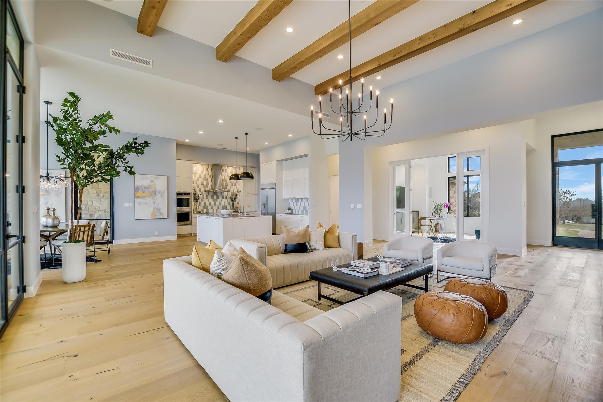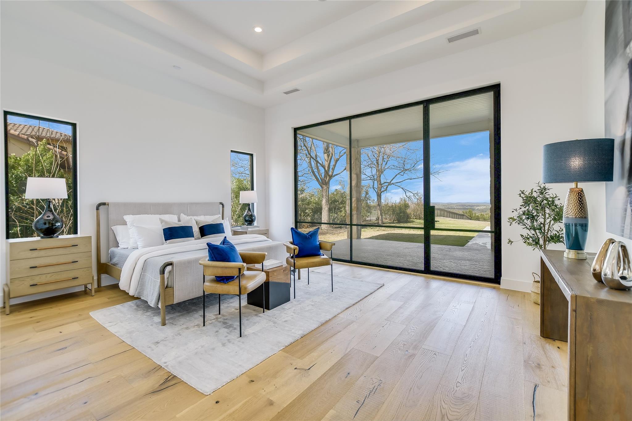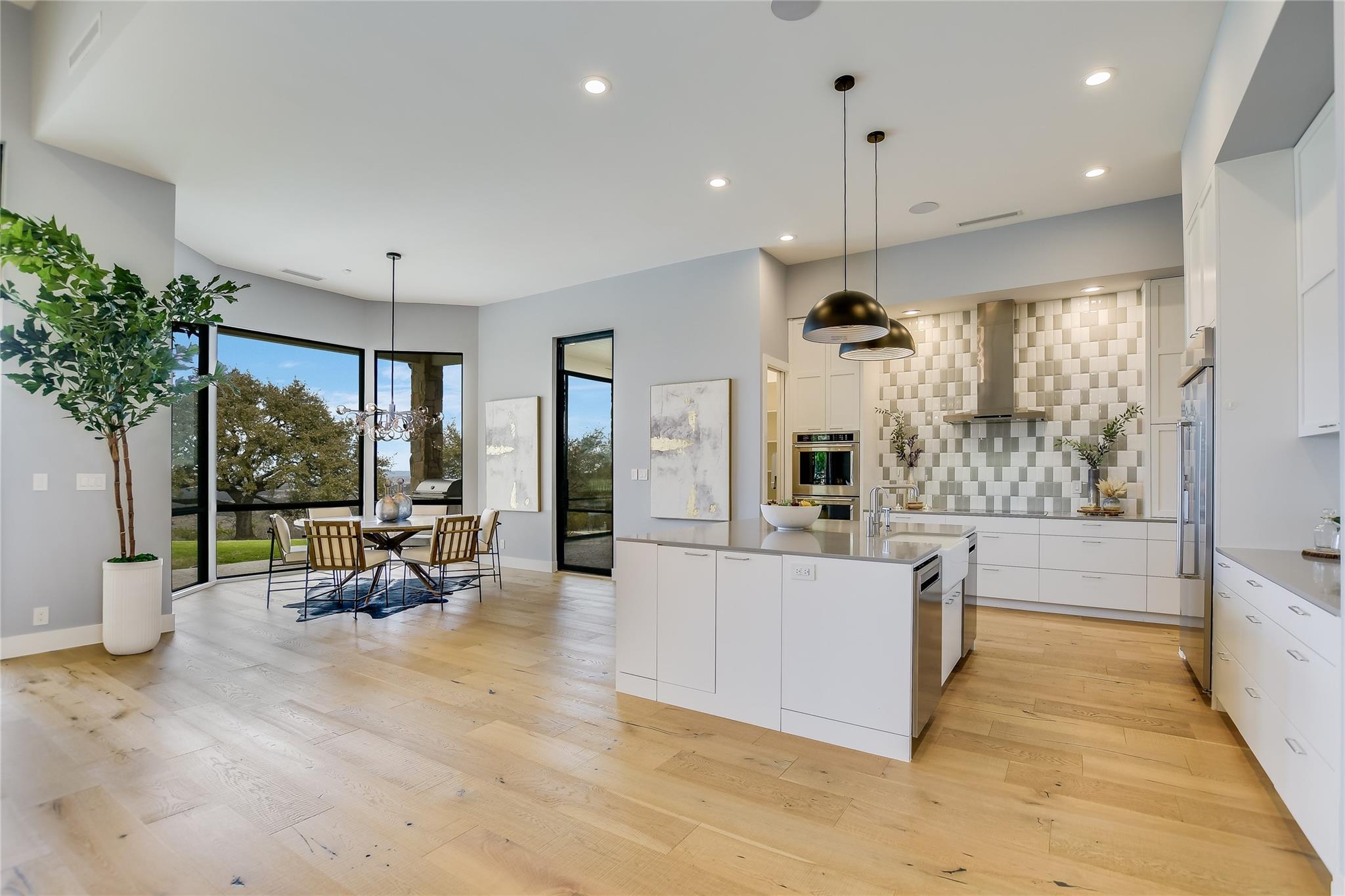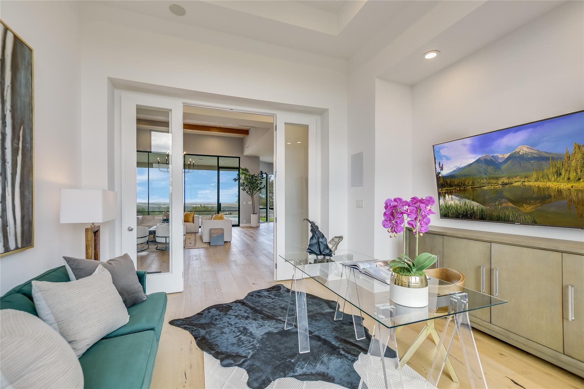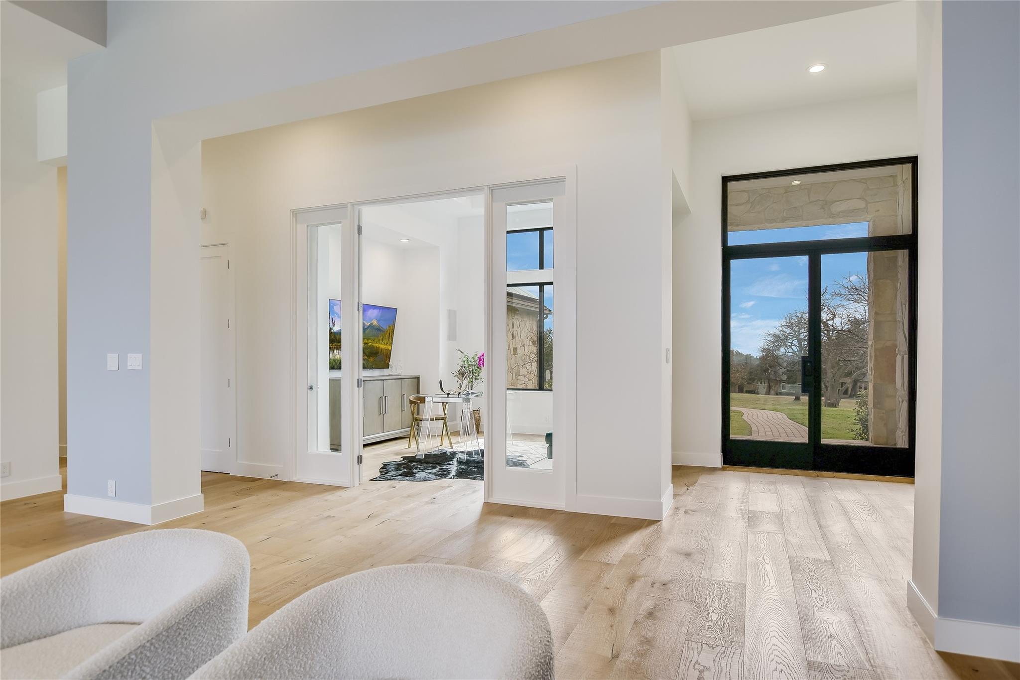 Your dream of quiet peaceful living with amazing Hill Country Views starts here! Step inside the front door and fall in love with the magical yard, the mesmerizing light blue water pool and views for miles. The sellers spent nearly $1 million transforming the 2006 construction into a modern, energy efficient dream home. The simplistic European modern design was created by Nana Kim 9 Square Studio and Zbranek & Holt Custom Homes. Pool constructed by Athena Pools. The large living room is anchored with the industrial design fireplace and custom shelving with bench and features expansive windows that allows for a lot of natural light and brings the calm of nature into the space. The sleek design of the home continues in the kitchen which is open to the living area making it perfect for entertaining. The spacious primary bedroom also takes advantage of the views with floor to ceiling windows, access to the back patio pool, a spa like bathroom and double walk-in closets. Other highlights include a screened in patio with outdoor kitchen, a home office, a dedicated exercise room with its own AC, oversized laundry/mudroom off the garage, fully owned solar system, electric car charger, and Control4 home automation system.