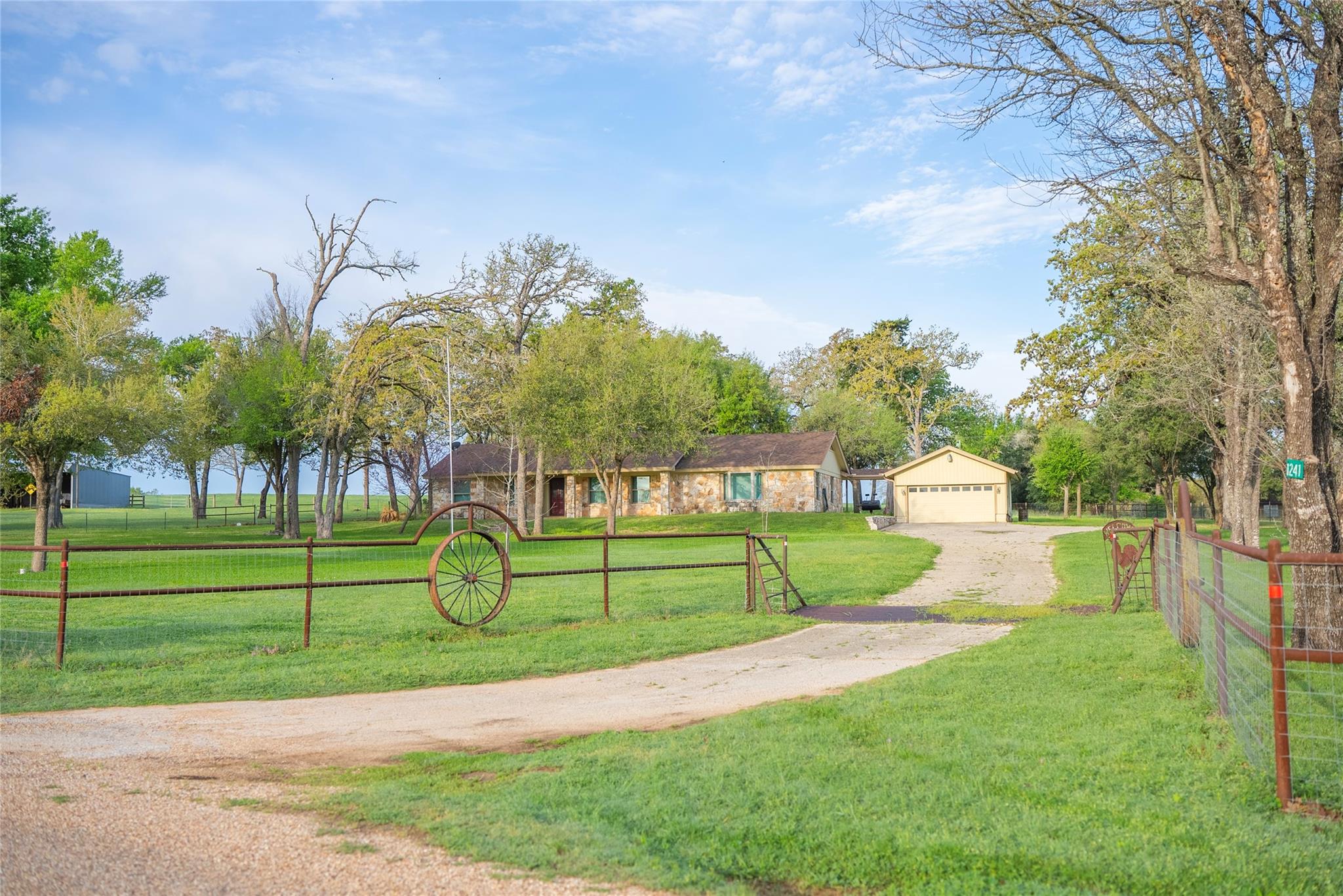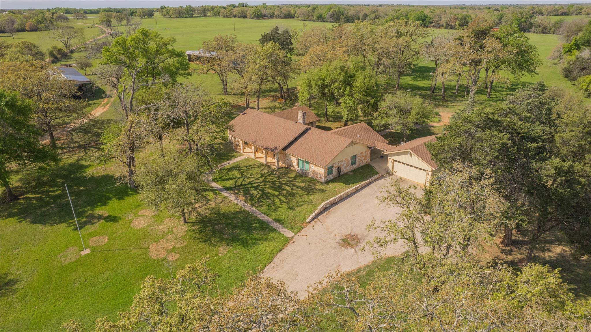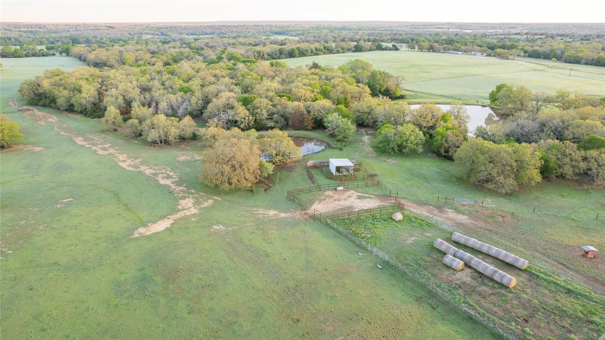 Nestled in the picturesque countryside of Lexington, Texas, this +/-134-acre ranch boasts a rich history and offers a rare opportunity to own an impeccably maintained piece of Texas. The property features beautiful rolling grass hills, highly improved costal hay fields, highway road frontage and paved county road frontage and is accented by many majestic trees, creating both, a serene landscape and diverse investment opportunity. This ranch is distinguished by its 4 ponds and wet weather creek adding both charm and functionality to the land. Whether used for fishing, livestock, hunting, or simply enjoying the peaceful water views, these water features enhance the beauty and versatility of the property. The house features a spacious layout, with modern amenities and rustic charm. The home was built around 1975 and recently updated with four bedrooms and three bathrooms and a spacious open floor plan. At approximately 2,438sf, this home is well suited as a weekend home, a temporary home while you build your dream home, or a permanent residence. There is a drive through 40x30 shop with an extended carport covering, providing ample space for storage, hobbies, or work projects. This workspace provides plumbing with a sink. Next to the shop, there is an RV pad with utility hook ups. There is also an equipment shed, hay barn, and covered working pens. A standout feature is the underground water lines that run to troughs in all fields, ensuring efficient water access for livestock. This feature, combined with the well-maintained perimeter fences, cross-fencing, and cattle guards makes this ranch a turn-key operation for cattle or other livestock. An easy drive from Austin, an easy commute to the new Samsung Facility, Tesla, as well as Houston or College Station, the location is perfect. Just over an hour from the Austin airport yet completely remote. Easily accessible from paved county road 406. Additionally, the property fronts along FM 696 and has multiple access gates.