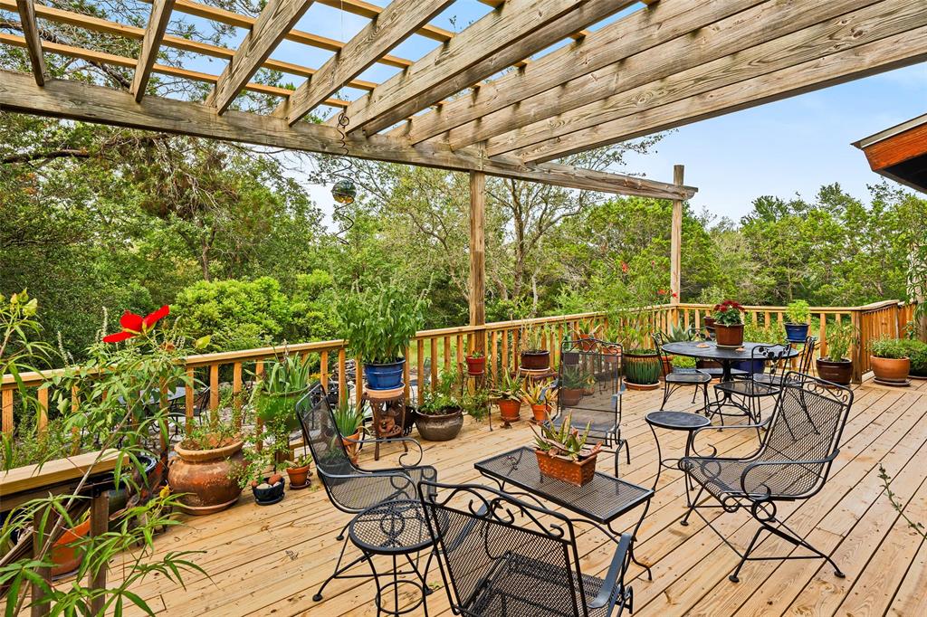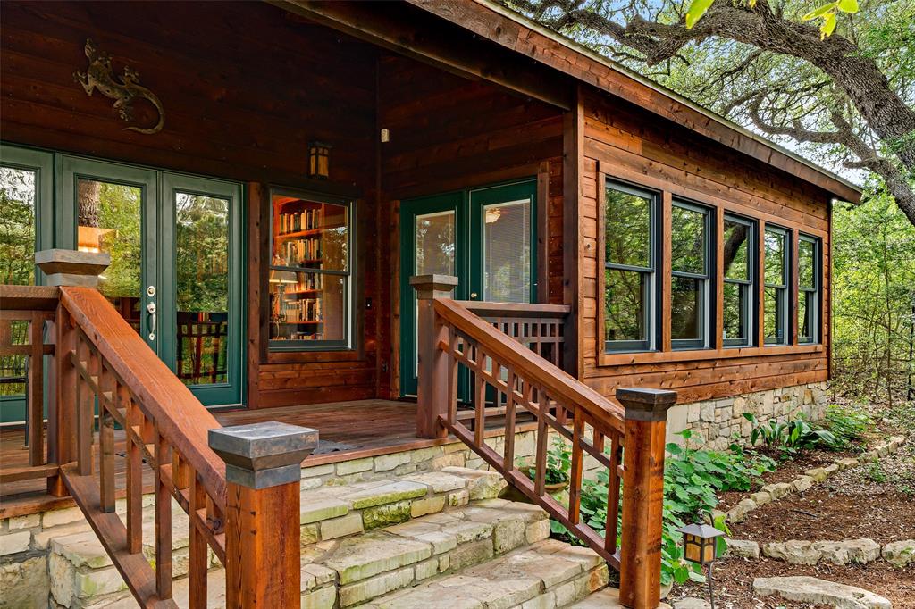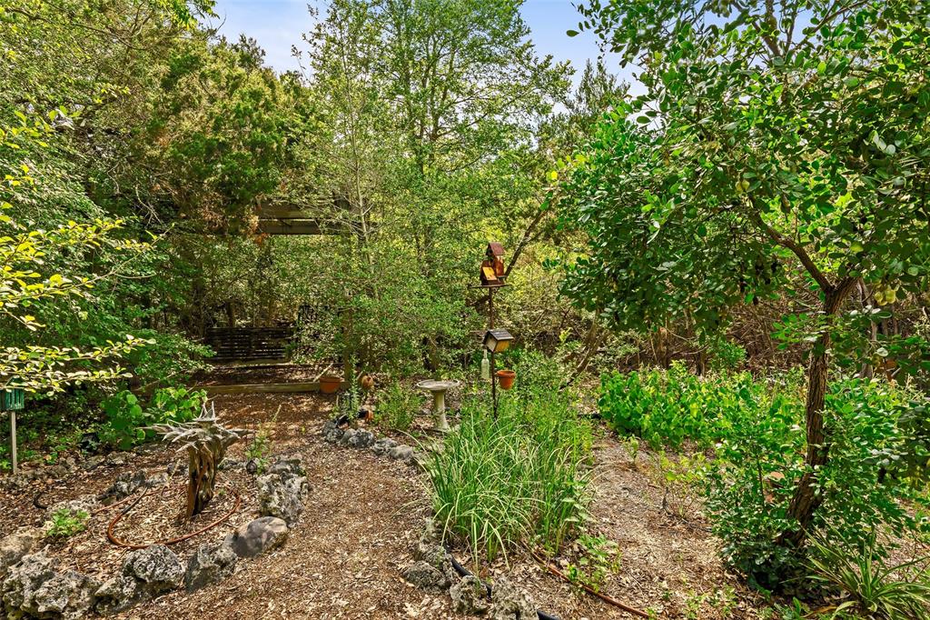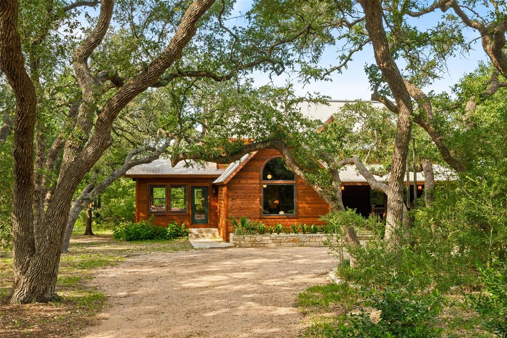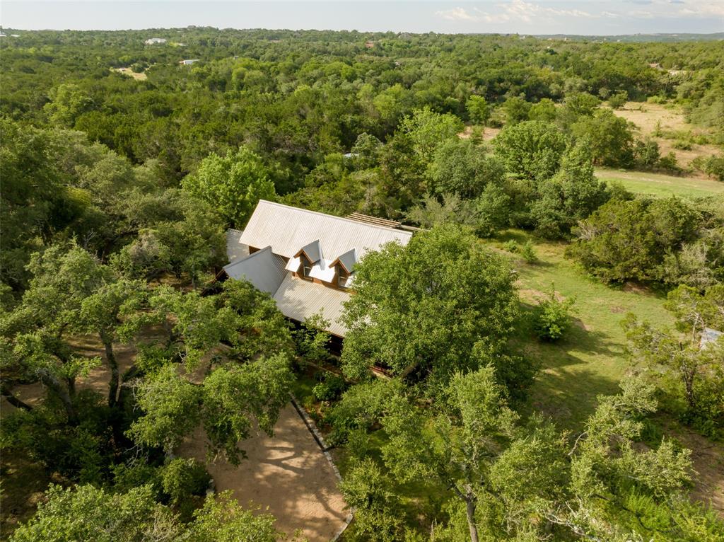 You've found your Unicorn! A Nature lover’s dream, an exceptionally private (4100 sq.ft. per old appraisal) compound that blends into a lush, green, heavily wooded 2.8 acre park-like setting with countless hollies, perennials and wildflowers. This is a unique, secluded refuge, a private world of wood, stone, glass, greenery, abundant wildlife and countless birds, including road runners, great horned owls, hawks and hummingbirds, among many others. This place is alive with motion, light, and the sound of birds, truly a place to experience and enjoy. The 1980s main house was remodeled and enlarged in 2004/05, including the addition of a utility room and a cedar porch room surrounded by glass windows. Also in 2004/05, a separate game room/office building was added, offset from but facing the main house and the interior of the property. This addition creates the feel of a spacious compound. This building has a full bathroom and could be converted into a separate residence perfect for a short term rental or guest house. The office is almost entirely glass on two sides overlooking the greenery, a fabulous work-from-home space. House features lots of natural light, wood floors, custom stone patio, and a secret garden with an arbor and wooden swing. Enter the property via tall, custom cedar automatic gates on metal frames. Multiple outbuildings for storage and shop. Extensive drip irrigation is in place. This is a great location, secluded but near the intersection of FM 1826 and Hwy 45, with excellent access to downtown Austin; Austin Bergstrom is within a 25 minute drive. Close to two H-E-B grocery stores, Seaton SW Medical Center, The Salt Lick is 7.5 miles SW, Driftwood, Escarpment Village, and other amenities are within 4 miles. The owners have transformed this location into a dream setting ready for new owners to make this their dream home.