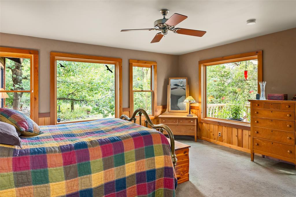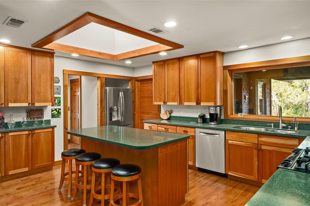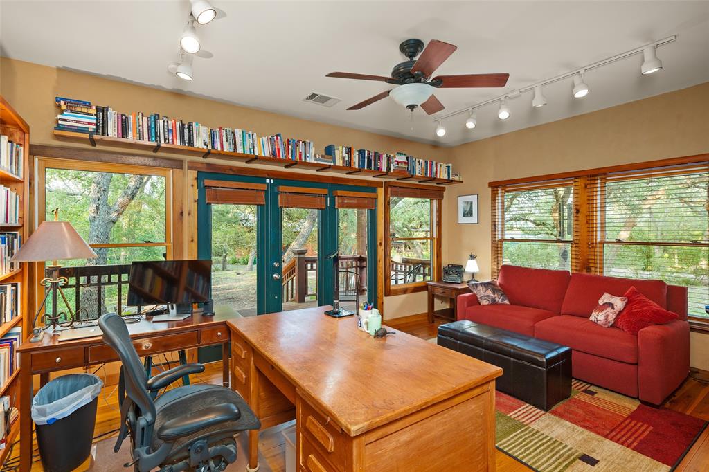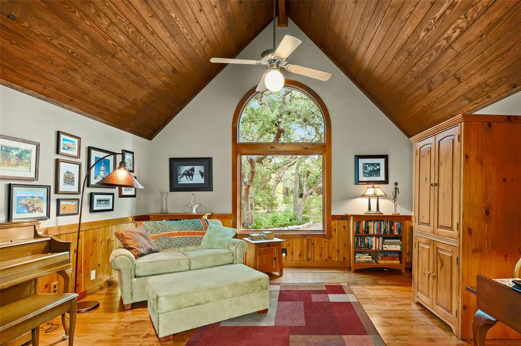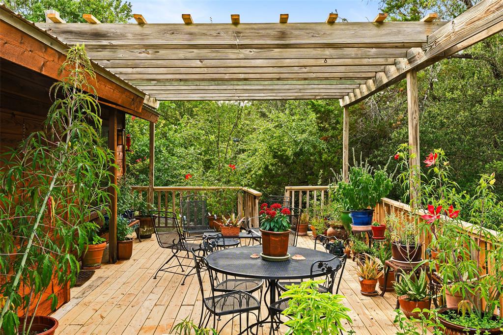 You've found your Unicorn! A Nature lover’s dream, an exceptionally private (4100 sq.ft. per old appraisal) compound that blends into a lush, green, heavily wooded 2.8 acre park-like setting with countless hollies, perennials and wildflowers. This is a unique, secluded refuge, a private world of wood, stone, glass, greenery, abundant wildlife and countless birds, including road runners, great horned owls, hawks and hummingbirds, among many others. This place is alive with motion, light, and the sound of birds, truly a place to experience and enjoy. The 1980s main house was remodeled and enlarged in 2004/05, including the addition of a utility room and a cedar porch room surrounded by glass windows. Also in 2004/05, a separate game room/office building was added, offset from but facing the main house and the interior of the property. This addition creates the feel of a spacious compound. This building has a full bathroom and could be converted into a separate residence perfect for a short term rental or guest house. The office is almost entirely glass on two sides overlooking the greenery, a fabulous work-from-home space. House features lots of natural light, wood floors, custom stone patio, and a secret garden with an arbor and wooden swing. Enter the property via tall, custom cedar automatic gates on metal frames. Multiple outbuildings for storage and shop. Extensive drip irrigation is in place. This is a great location, secluded but near the intersection of FM 1826 and Hwy 45, with excellent access to downtown Austin; Austin Bergstrom is within a 25 minute drive. Close to two H-E-B grocery stores, Seaton SW Medical Center, The Salt Lick is 7.5 miles SW, Driftwood, Escarpment Village, and other amenities are within 4 miles. The owners have transformed this location into a dream setting ready for new owners to make this their dream home.