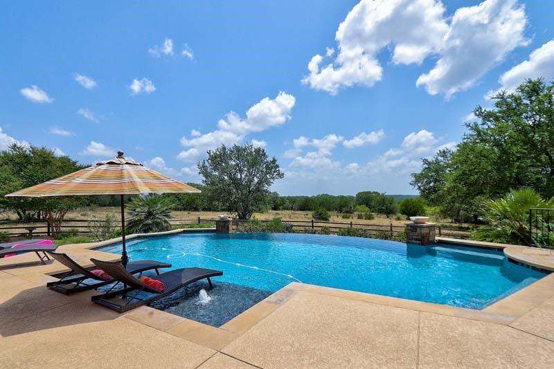 Tucked away within a secluded, gated 20+ acre estate, this exceptional property boasts an agricultural exemption and a meticulously designed one-story luxury home spanning over 5,500+ sqft, including a detached Casita. Approach this serene retreat via a winding, tree-lined paved driveway, ensuring complete privacy. The landscape surrounding the home is a picture of tranquility, with lush greenery thoughtfully centered around a majestic 350-year-old "mother oak" tree. Stately oak trees grace the property, alongside open pastures, Hill Country views from the rear of the home, and an inviting outdoor living space complete with a kitchen and an infinity-edge pool. This impressive residence offers four bedrooms and five bathrooms, along with practical amenities such as a butler's kitchen, a media room, a study, a fitness room, and a dedicated utility room in the master wing. There's an oversized 2.5-car main garage and a separate two-story, three-car garage & shop, including a 500 sqft Casita. The property is equipped with a 52,000-gallon rainwater collection system, a wine cellar, and a high-end kitchen. In the neighborhood, residents currently have the option to utilize free-roaming livestock to qualify for the agricultural exemption or manage the land themselves. An alternative is to switch to a wildlife exemption. Conveniently located between San Marcos and just 10 minutes from Wimberley, this property offers easy access to I-35 and the Hill Country, with downtown Austin a mere 45-minute drive away. While the property falls within the San Marcos Independent School District, it's noteworthy that students have been accepted into the Wimberley Independent School District. Plus, the renowned San Marcos Academy, a prestigious preparatory school, is just minutes away.