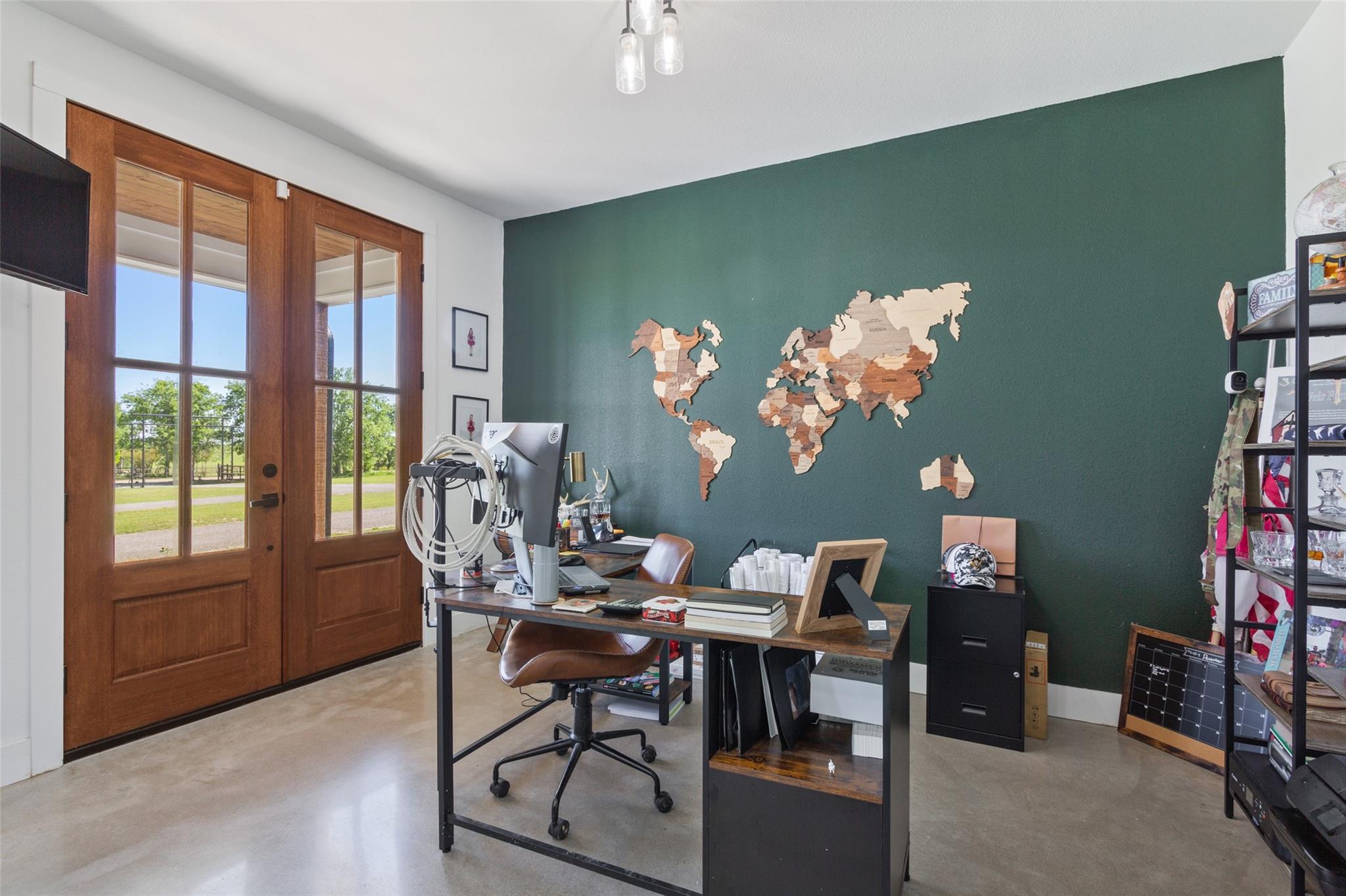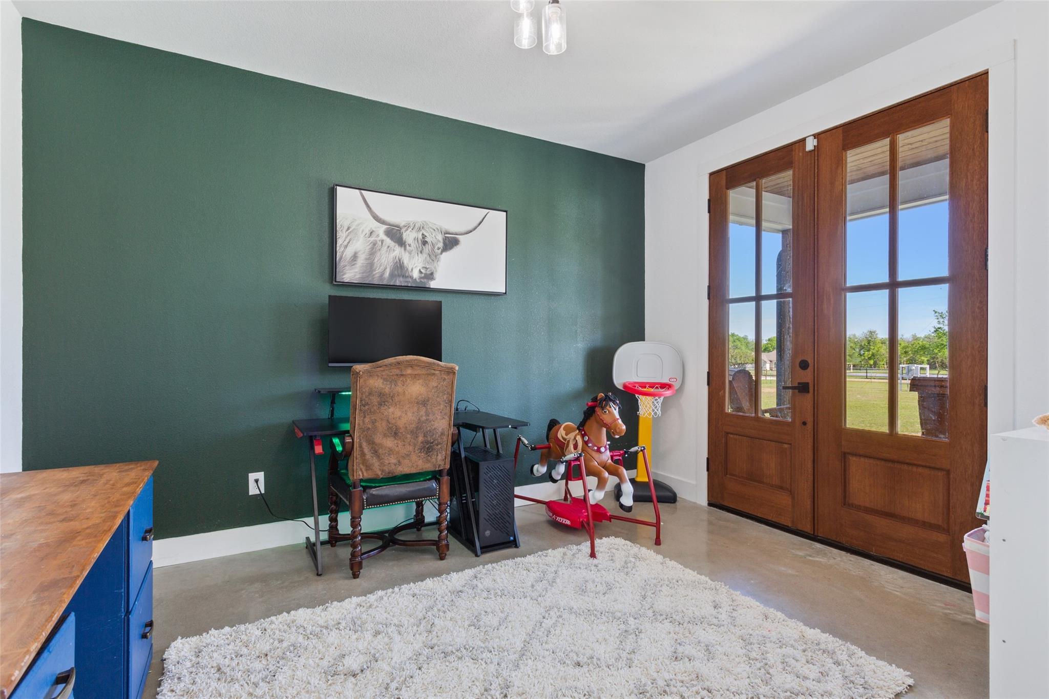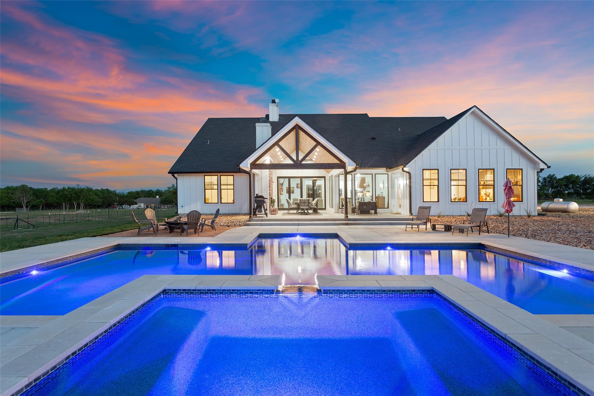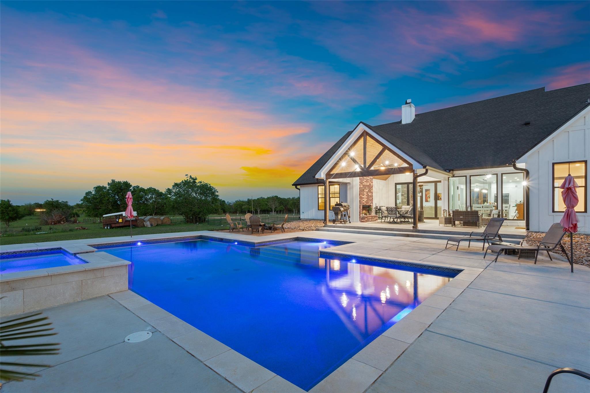 Welcome to 688 Pleasant Run Rd, a stunning 20+ acre retreat in picturesque Crawford, TX. This upscale residence features five generous bedrooms, four full baths, and two multifunctional office spaces. Expertly designed with an open floor plan, this home flawlessly melds indoors with outdoors. A well-equipped kitchen with a butler’s pantry, formal dining area, and spacious family room easily opens up to an external haven through accordion-style glass doors, making entertainment effortless. Impeccable craftsmanship by W4 Custom Builders, high-end materials, and thoughtful architecture are hallmarks of this property. The outdoor space presents an incredible, air-conditioned 3,000 SQFT barn primed for any sports and entertainment lover. Complete with an indoor gym, batting area with retractable net, bar, full bath, and a versatile office or apartment loft; the barn becomes an extension of the home. It includes four horse stables, a paddock, and a dog run. A welcoming patio unfolds into a radiant pool area, perfectly integrated with a soothing spa and cascading waterfall feature. This elegant outdoor oasis beautifully merges with the serene backdrop of the Texas prairie landscape. The fully fenced property encompassing 20+ acres promises natural beauty with a 1/4 acre creek-fed pond, a horse arena, and a baseball practice field. Working pens and varied pasture areas punctuate this unique, sprawling ranch estate. This property's appeal is elevated by a short 25-minute drive to Downtown Waco and I-35 and its inclusion in the sought-after Crawford ISD. The builder/seller will invite the new owner's input on a fresh color palette for the home's interior. The house has been built with the possibility of adding a second story, which an interested buyer could pursue after the home has been sold.