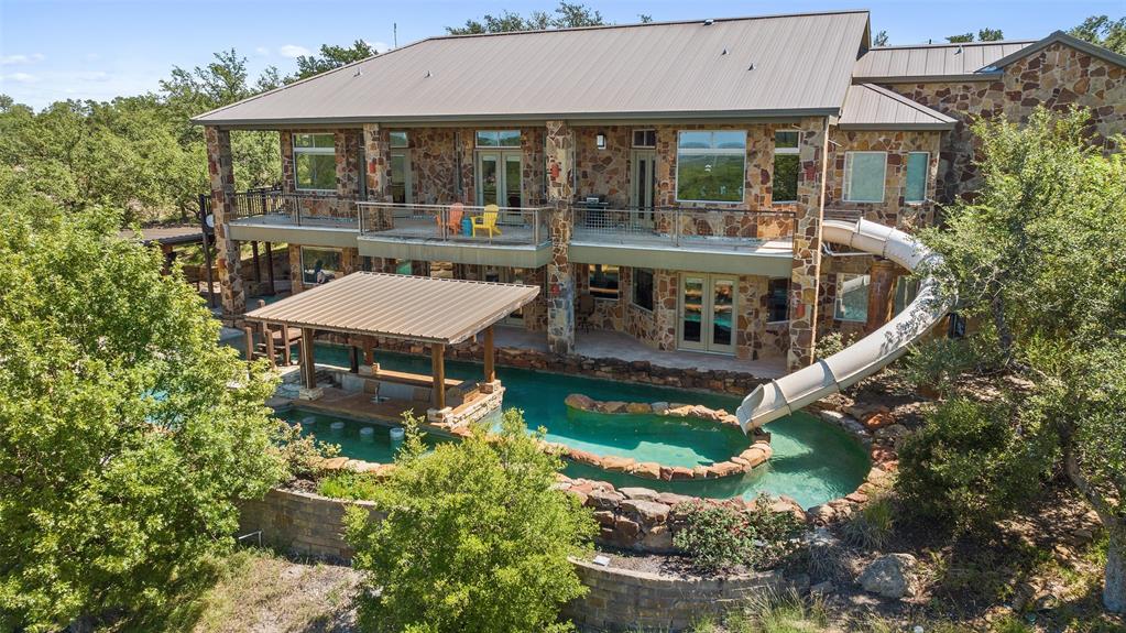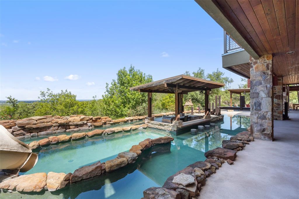 OFFERED BELOW INDEPENDENT APPRAISAL! Welcome to Scenic Ridge Retreat, the ultimate in hill country living with 27.5 ag exempt acres and dual residences in Spicewood, TX. Horses, cattle, exotics, and domestic animals are welcome. The property boasts many types of trees and terrain, includes two storage barns, a reinforced pond, three sides high fenced, fenced pastures, three electric gates, a road system throughout, and two wells with close to 15,000 gallons of storage. The property is nestled between all - only minutes to Spicewood airport and 37 miles to Austin Bergstrom International Airport. Hill Country Galleria in Bee Cave is located only 17 miles away and sits only 16 miles to the lakes in Marble Falls. The custom-built 3/3.5 (5,145 sq. ft.) main residence offers a resort-inspired pool with swim-up bar, 2-story water slide, and outdoor kitchen, along with a spacious outdoor living space. The native-stone-clad home enjoys outdoor access from both levels, with french doors opening out to the lower patio and upper veranda with miles of views. The main-floor primary suite enjoys a large walk-in shower, whirlpool tub, oversized walk-in closet and private office. The lower floor features a complete guest suite with full kitchen, dining, living room, laundry, bedroom, and en suite bath. The guest house is a 2/2 (2,443 sq. ft.) built in 2019, includes a screened porch, modern-style pool, a study, sauna, and a three-car garage that features a small air-conditioned studio. The secondary home is the perfect retreat for guests, care-givers, or multi-generational family units.