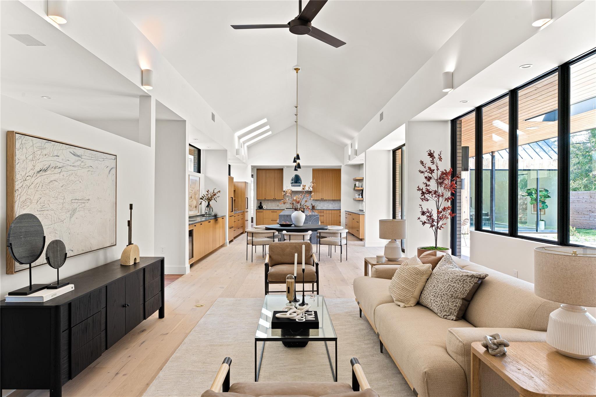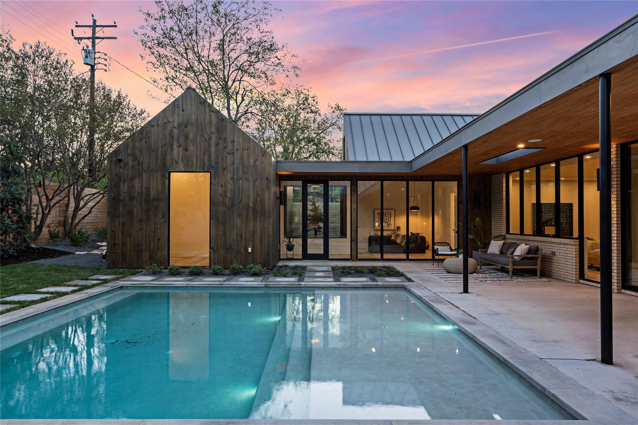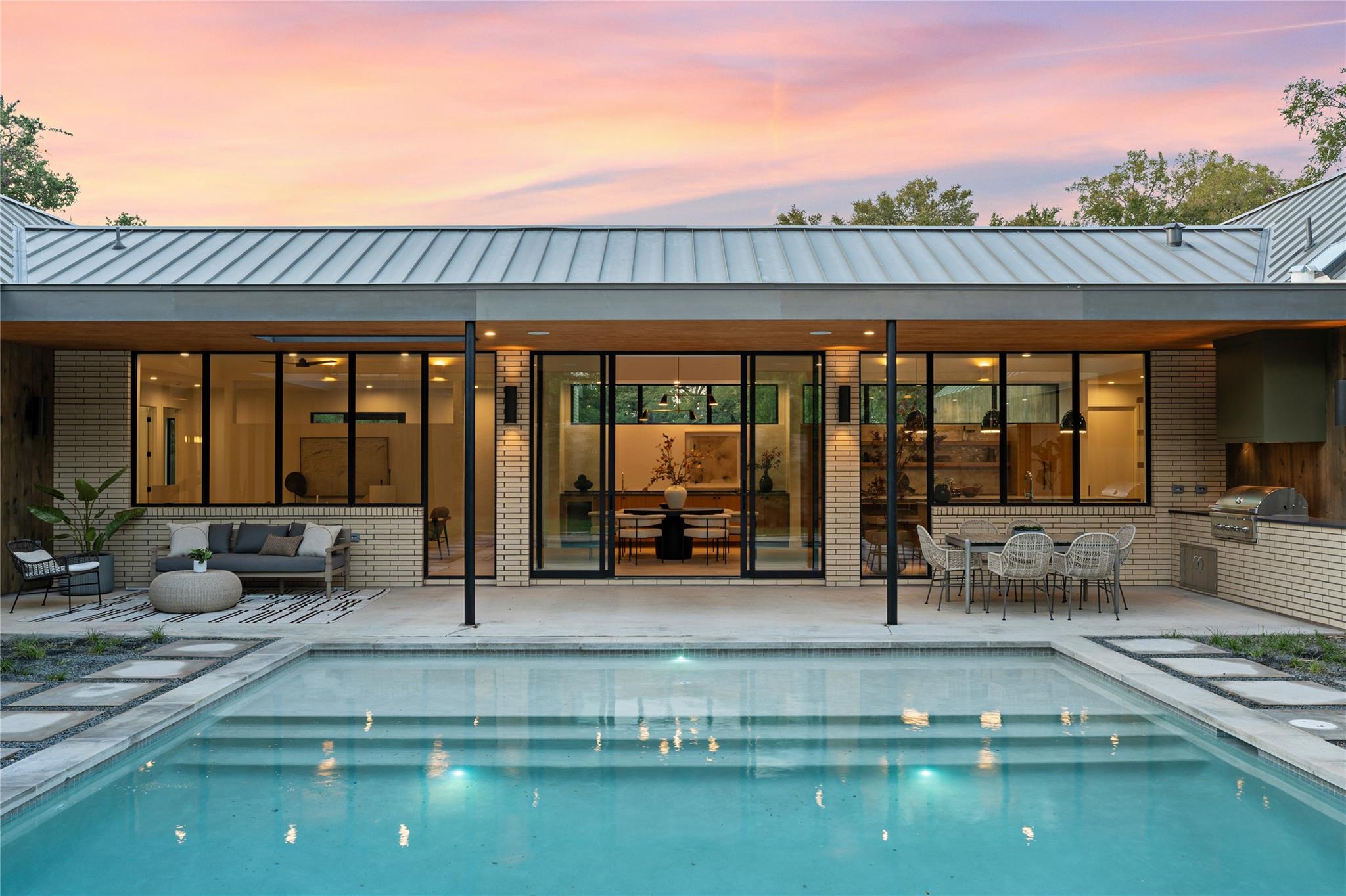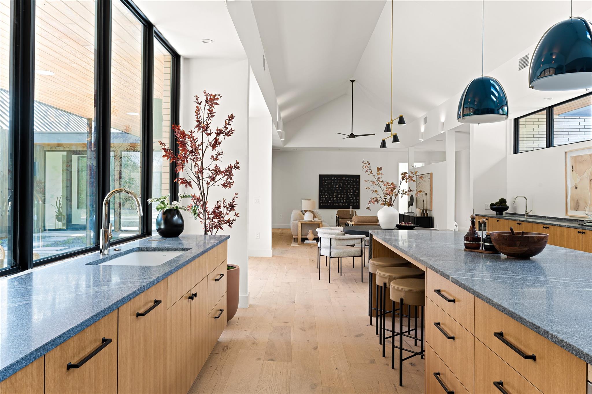 Thoughtfully designed by Side Angle Side and masterfully built by Cobb Development this luxurious new home offers rare single-story living in the heart of Barton Hills. Floor to ceiling windows flood the interior with natural light, highlighting the custom cabinetry, vaulted ceilings, and designer finishes. The U-shaped floor plan wraps around the pool and landscaped backyard creating unique spaces and views in every room in the home. The focal point of this home is a gourmet kitchen equipped with top-of-the-line appliances, making it a culinary haven for any chef. Every detail of this home exudes elegance, from the high-end fixtures to the exquisite materials used throughout. Details and Features... Large Single Story 3,715 sq ft (per appraisal)...4 Bedrooms (primary and two others with vaulted ceilings...3.5 Bathrooms...2 Living Spaces (both with vaulted ceilings)...Large Office w/ Separate Entry to Street...Oversized Garage...769 sq ft of covered patio spaces (per architect)...Oversized 22'x22' Pool...Large Flat .3 Acre Lot...Endless Custom Cabinetry and Built-In Spaces...Two Cabinet Wood Panel Refrigerators and Freezers...Designer Tile and White Oak Flooring Throughout...48" Wolf Range...Outdoor Grill, Hood and Sink...Luxury Plumbing & Lighting...Western Window & Door Package...All Brick Masonry & Real Wood Exteriors...Custom Landscaping...Metal Roof.