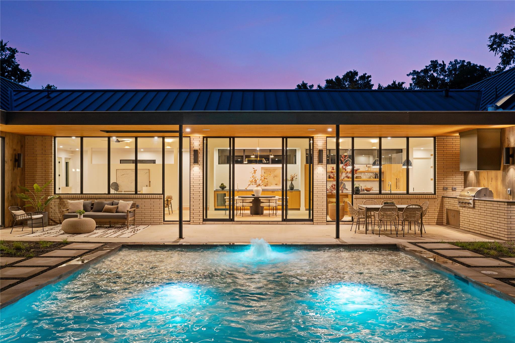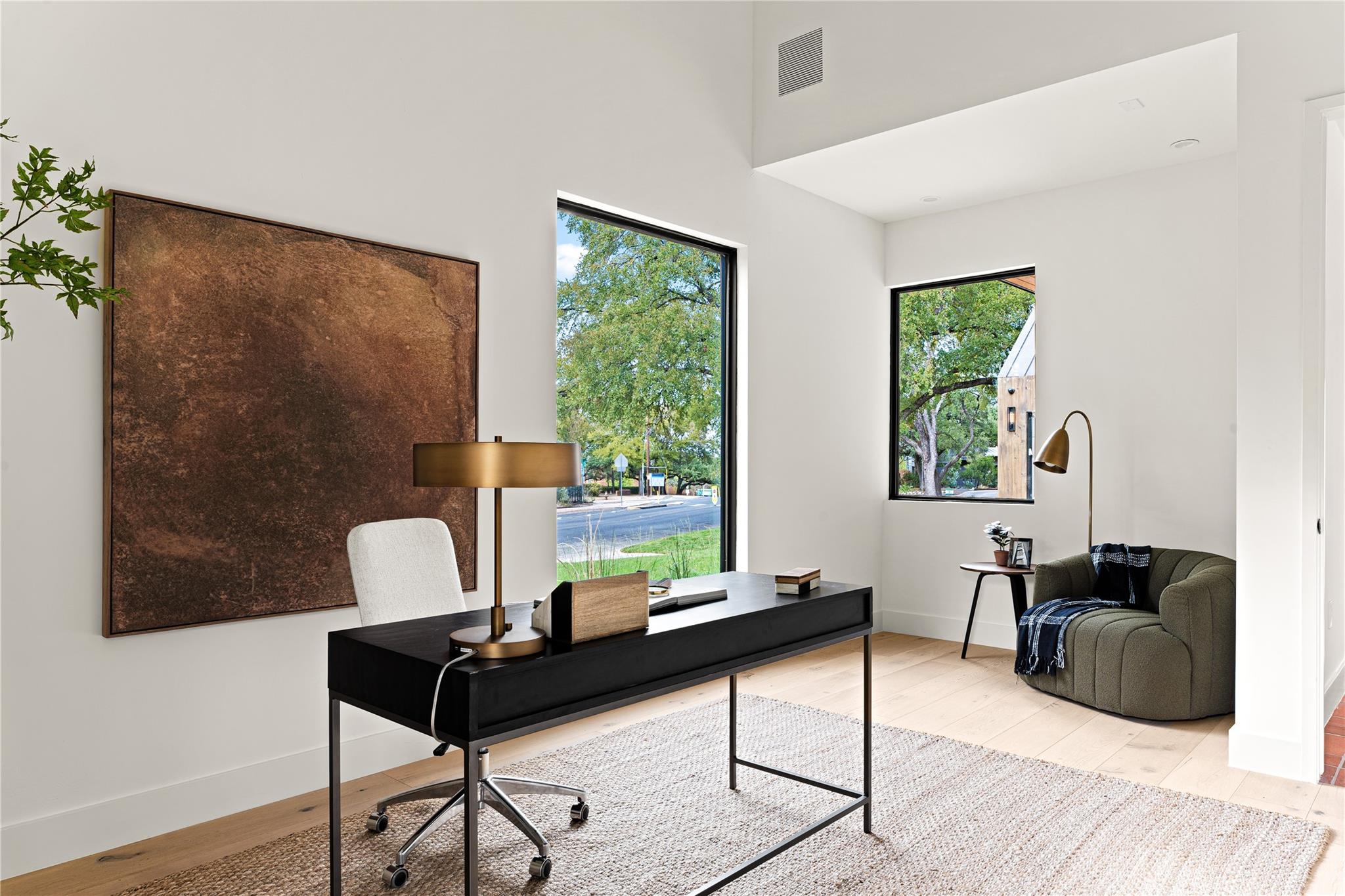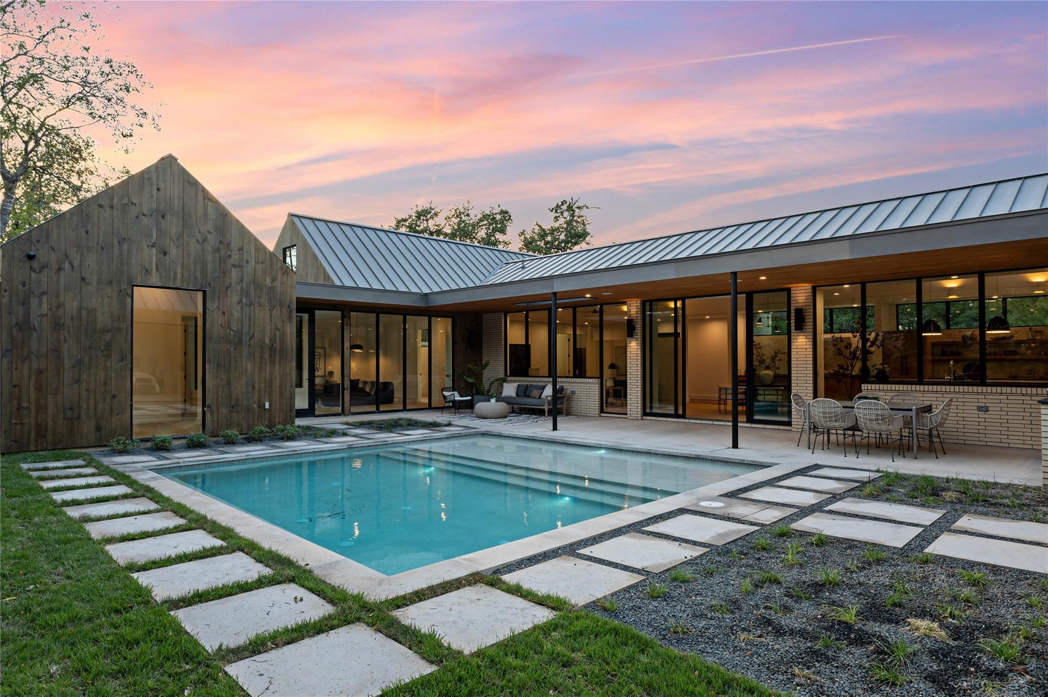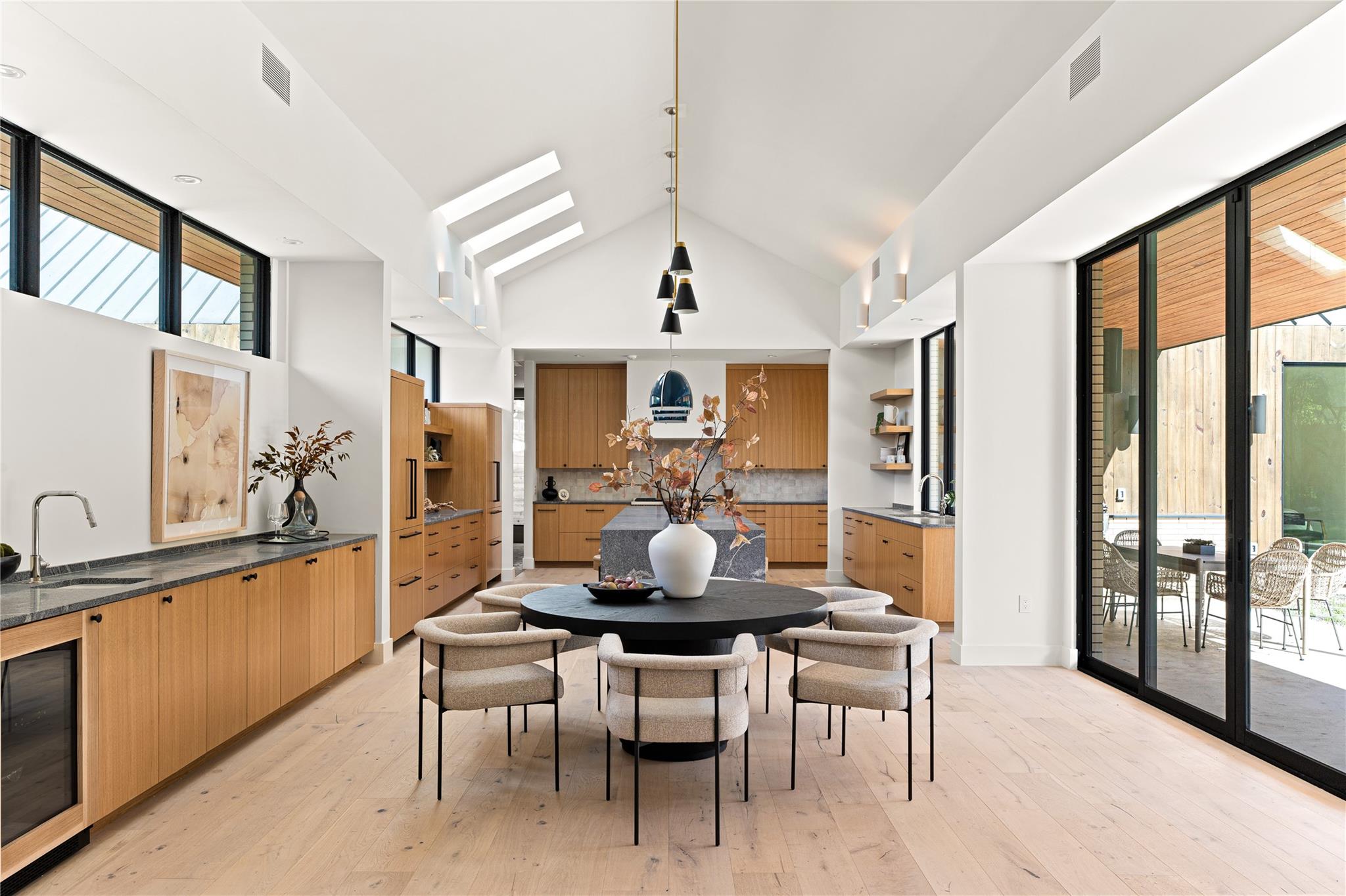 Thoughtfully designed by Side Angle Side and masterfully built by Cobb Development this luxurious new home offers rare single-story living in the heart of Barton Hills. Floor to ceiling windows flood the interior with natural light, highlighting the custom cabinetry, vaulted ceilings, and designer finishes. The U-shaped floor plan wraps around the pool and landscaped backyard creating unique spaces and views in every room in the home. The focal point of this home is a gourmet kitchen equipped with top-of-the-line appliances, making it a culinary haven for any chef. Every detail of this home exudes elegance, from the high-end fixtures to the exquisite materials used throughout. Details and Features... Large Single Story 3,715 sq ft (per appraisal)...4 Bedrooms (primary and two others with vaulted ceilings...3.5 Bathrooms...2 Living Spaces (both with vaulted ceilings)...Large Office w/ Separate Entry to Street...Oversized Garage...769 sq ft of covered patio spaces (per architect)...Oversized 22'x22' Pool...Large Flat .3 Acre Lot...Endless Custom Cabinetry and Built-In Spaces...Two Cabinet Wood Panel Refrigerators and Freezers...Designer Tile and White Oak Flooring Throughout...48" Wolf Range...Outdoor Grill, Hood and Sink...Luxury Plumbing & Lighting...Western Window & Door Package...All Brick Masonry & Real Wood Exteriors...Custom Landscaping...Metal Roof.