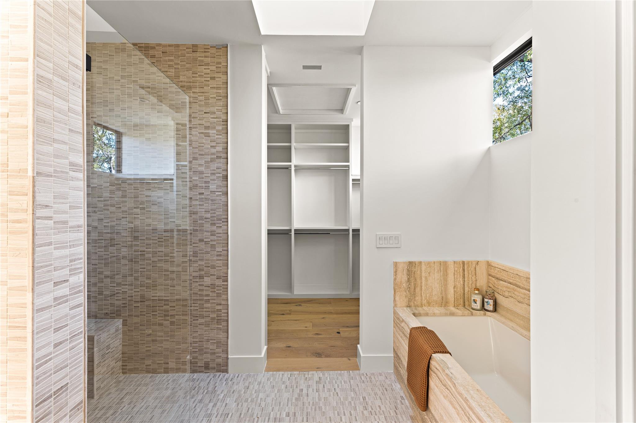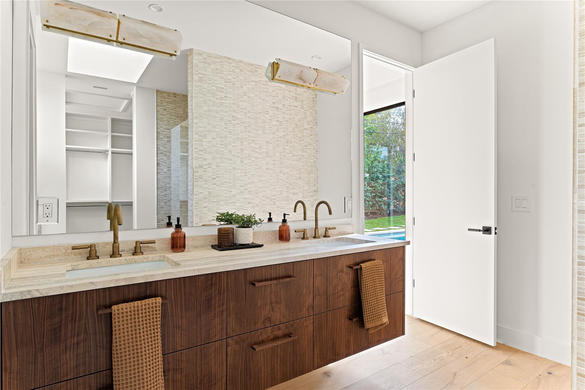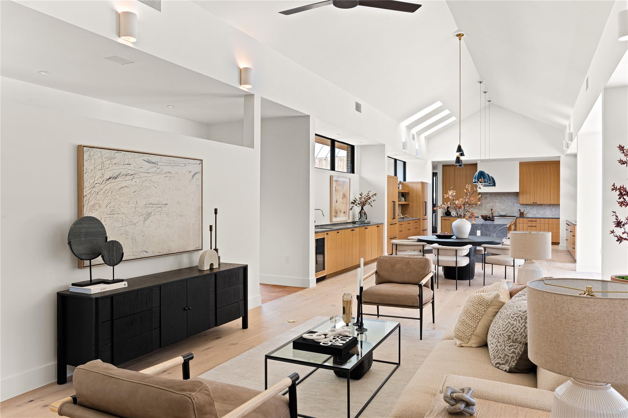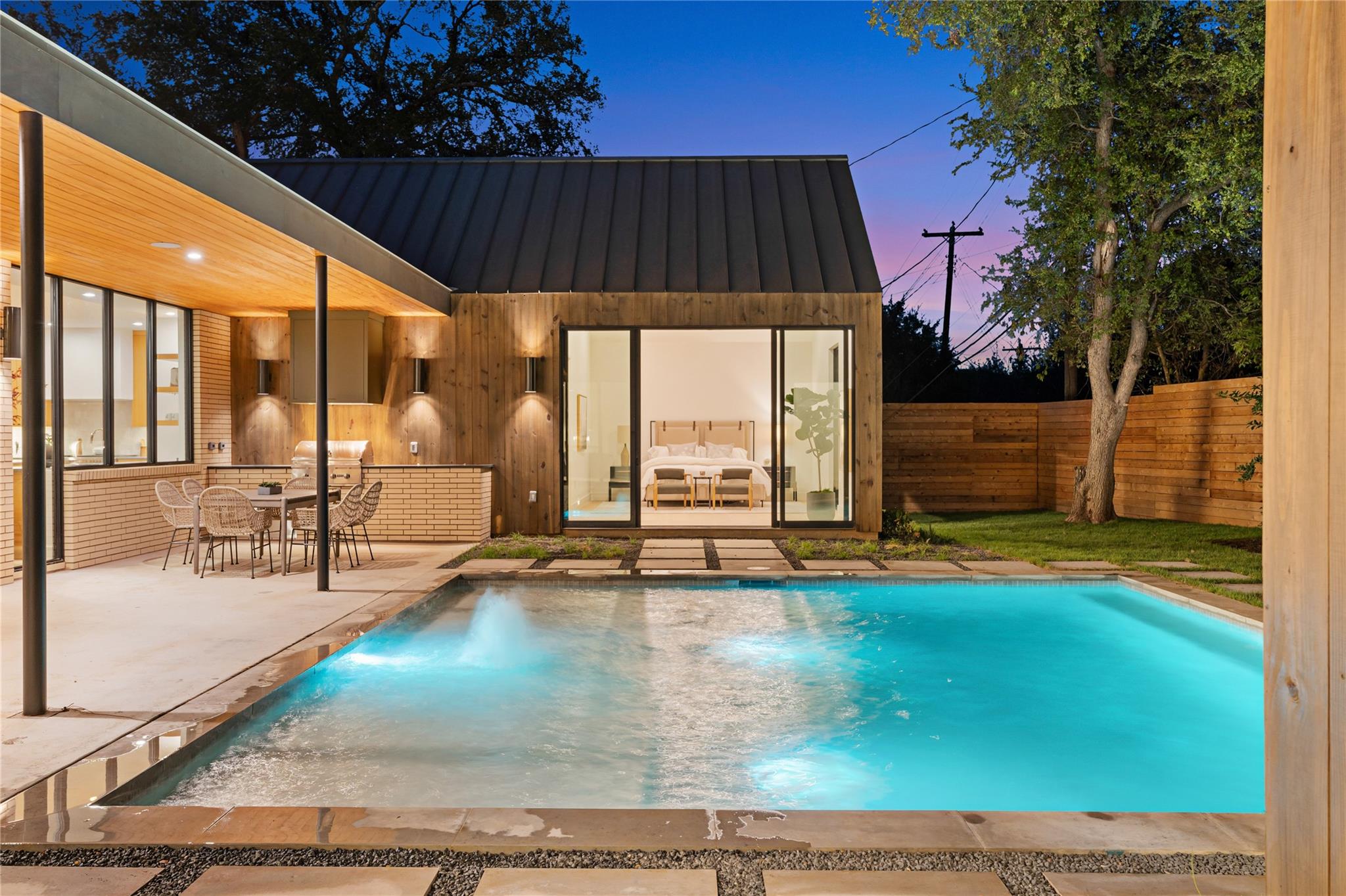 Thoughtfully designed by Side Angle Side and masterfully built by Cobb Development this luxurious new home offers rare single-story living in the heart of Barton Hills. Floor to ceiling windows flood the interior with natural light, highlighting the custom cabinetry, vaulted ceilings, and designer finishes. The U-shaped floor plan wraps around the pool and landscaped backyard creating unique spaces and views in every room in the home. The focal point of this home is a gourmet kitchen equipped with top-of-the-line appliances, making it a culinary haven for any chef. Every detail of this home exudes elegance, from the high-end fixtures to the exquisite materials used throughout. Details and Features... Large Single Story 3,715 sq ft (per appraisal)...4 Bedrooms (primary and two others with vaulted ceilings...3.5 Bathrooms...2 Living Spaces (both with vaulted ceilings)...Large Office w/ Separate Entry to Street...Oversized Garage...769 sq ft of covered patio spaces (per architect)...Oversized 22'x22' Pool...Large Flat .3 Acre Lot...Endless Custom Cabinetry and Built-In Spaces...Two Cabinet Wood Panel Refrigerators and Freezers...Designer Tile and White Oak Flooring Throughout...48" Wolf Range...Outdoor Grill, Hood and Sink...Luxury Plumbing & Lighting...Western Window & Door Package...All Brick Masonry & Real Wood Exteriors...Custom Landscaping...Metal Roof.