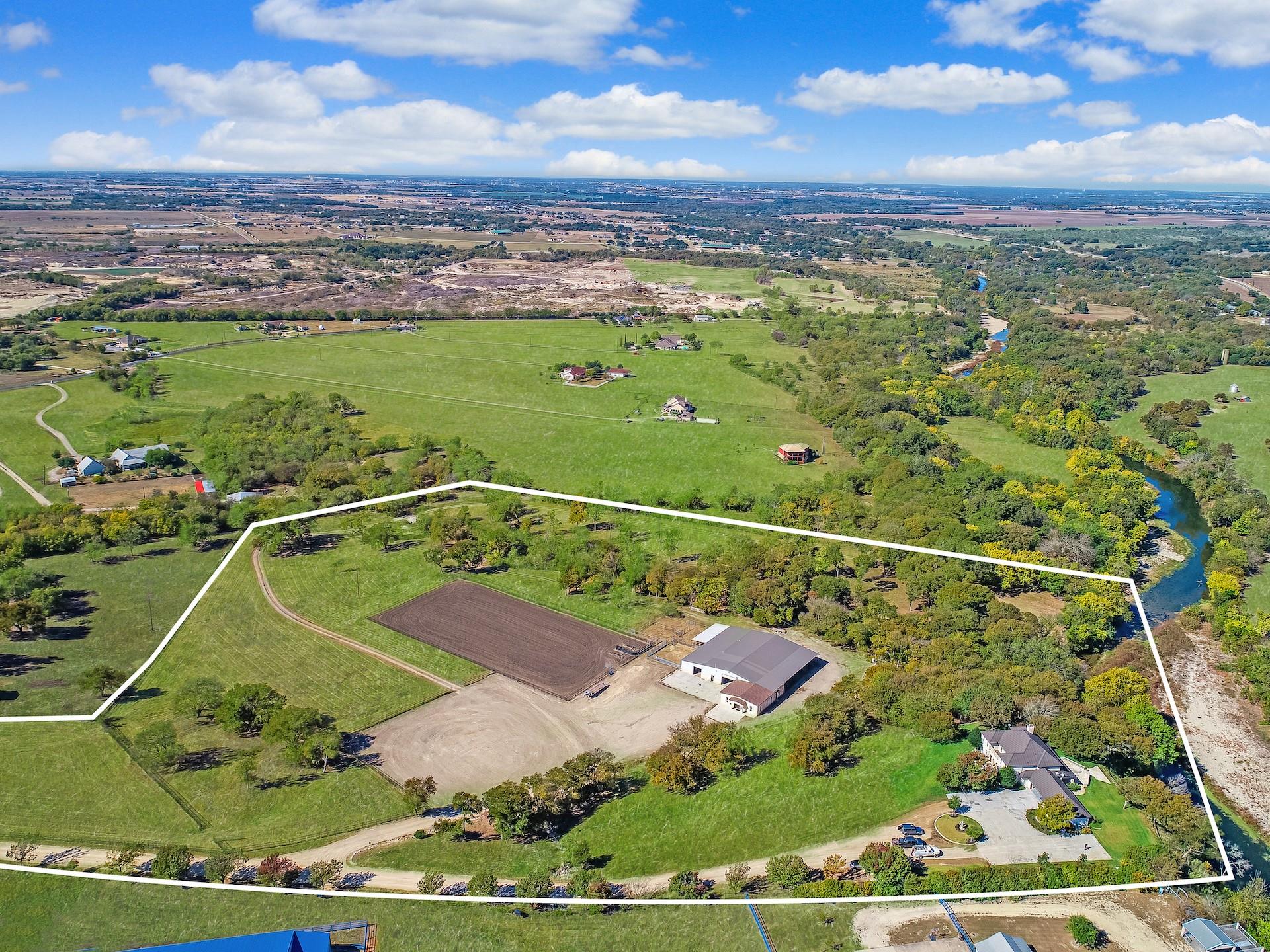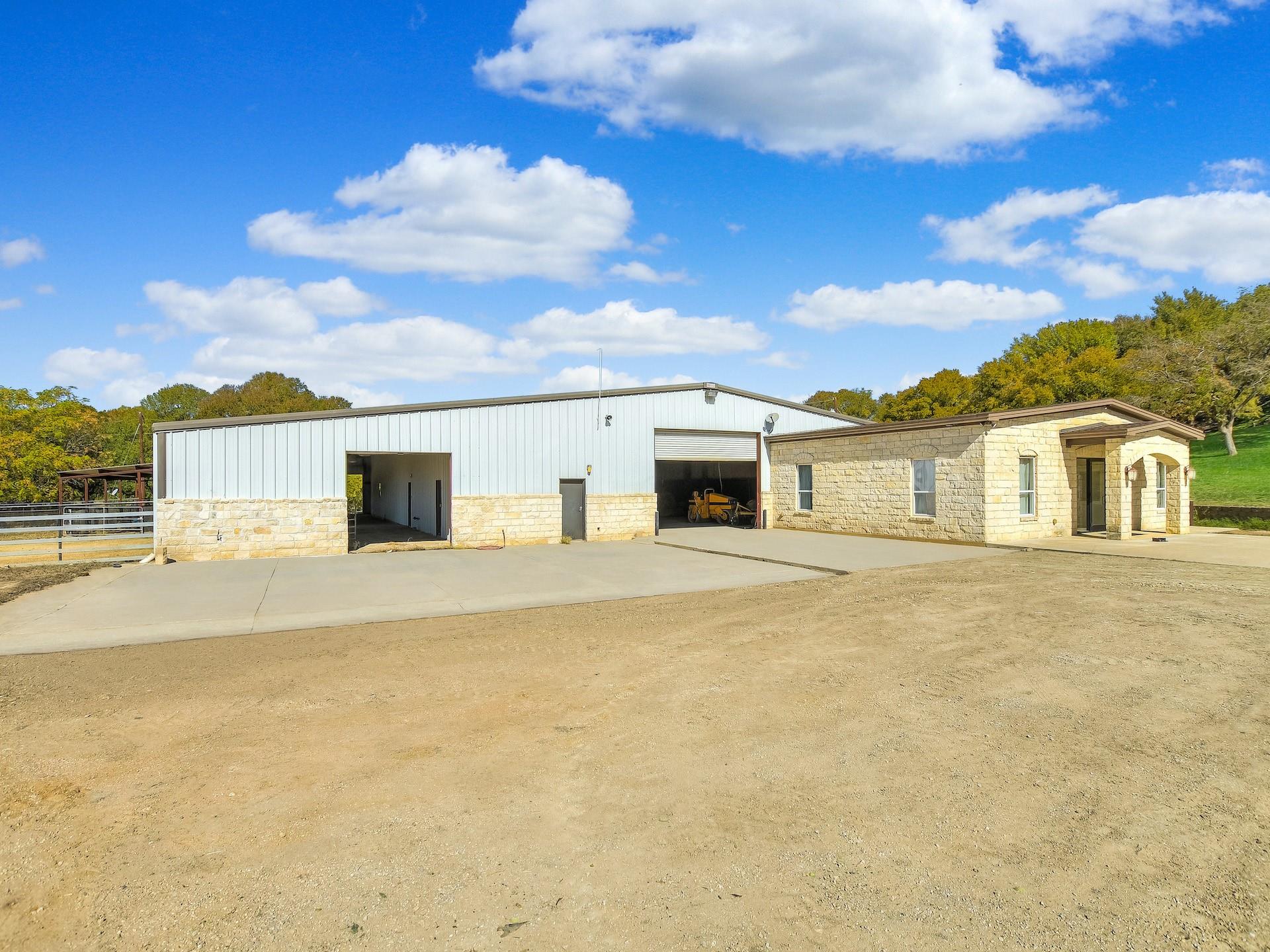 Welcome to your dream property nestled on 22 acres of breathtaking landscape, overlooking the serene San Gabriel River. This remarkable listing boasts a sprawling 5,112 SQFT residential masterpiece, paired with a massive 10,000 SQFT commercial building, and an additional five office spaces seamlessly attached to the structure. Enjoy the epitome of luxury living in the expansive 5,112 SQFT home on the top of the hill overlooking the River, featuring meticulously crafted details and premium finishes throughout. With ample space for relaxation, entertainment and a Casita, this residence offers the perfect blend of comfort and sophistication. Whether you're unwinding in the spacious living areas, preparing culinary delights in the gourmet kitchen, or retiring to the tranquil bedrooms, every moment spent here is infused with elegance and charm. Adjacent to the residential oasis stands a remarkable 10,000 SQFT commercial building (6,000 SQFT enclosed) with two overhead doors, 400 AMP, two bathrooms, 3.5 Ton HVAC, multiple 18-Wheeler parking and 20 ft floor to ceiling height, presenting endless opportunities for business ventures or creative endeavors. From retail space to workshops or studios, this versatile structure caters to a myriad of possibilities. Additionally, the five attached office spaces with two common areas and two bathrooms offer convenience and accessibility for professional endeavors, making it an ideal setting for entrepreneurs and professionals alike. Beyond the confines of these remarkable structures lies an Ag Exempted 22 acres of pristine land, providing a picturesque backdrop for outdoor activities and exploration. With panoramic views of the San Gabriel River, every glance is met with natural splendor and tranquility, creating an idyllic retreat from the hustle and bustle of everyday life.
