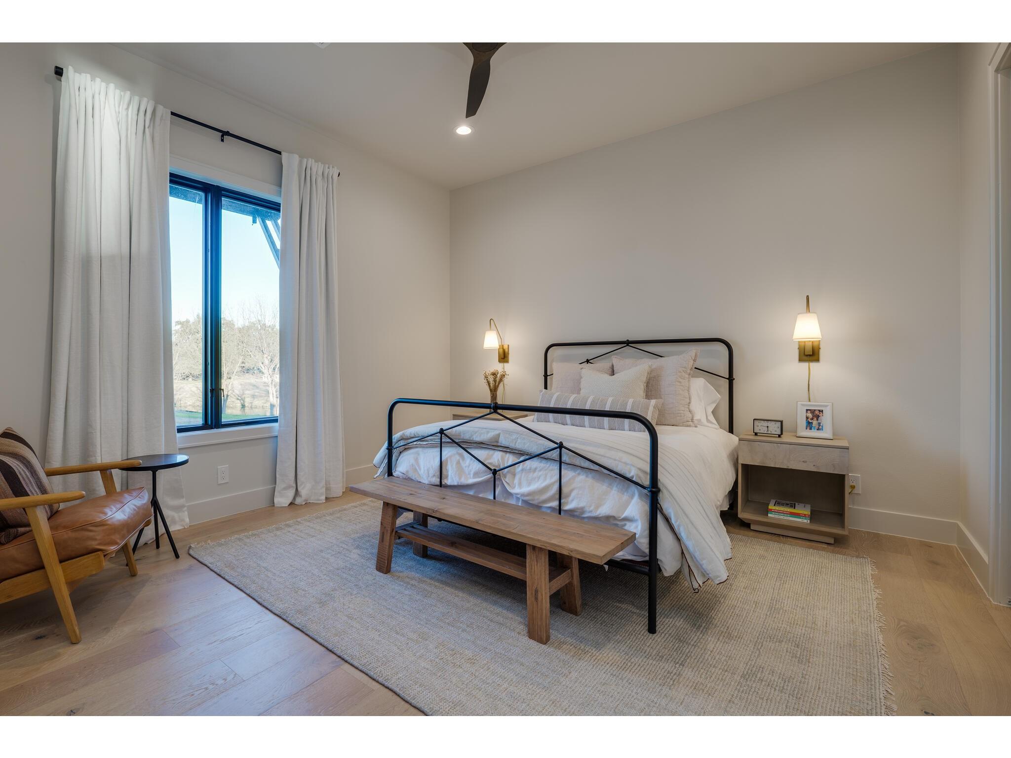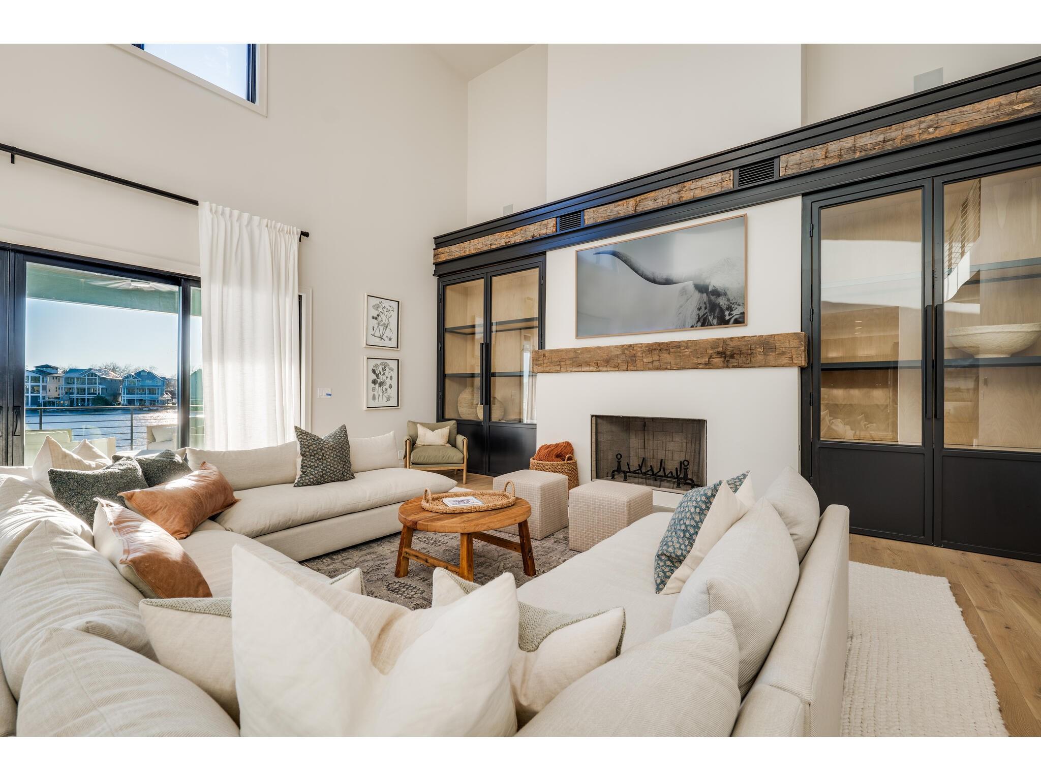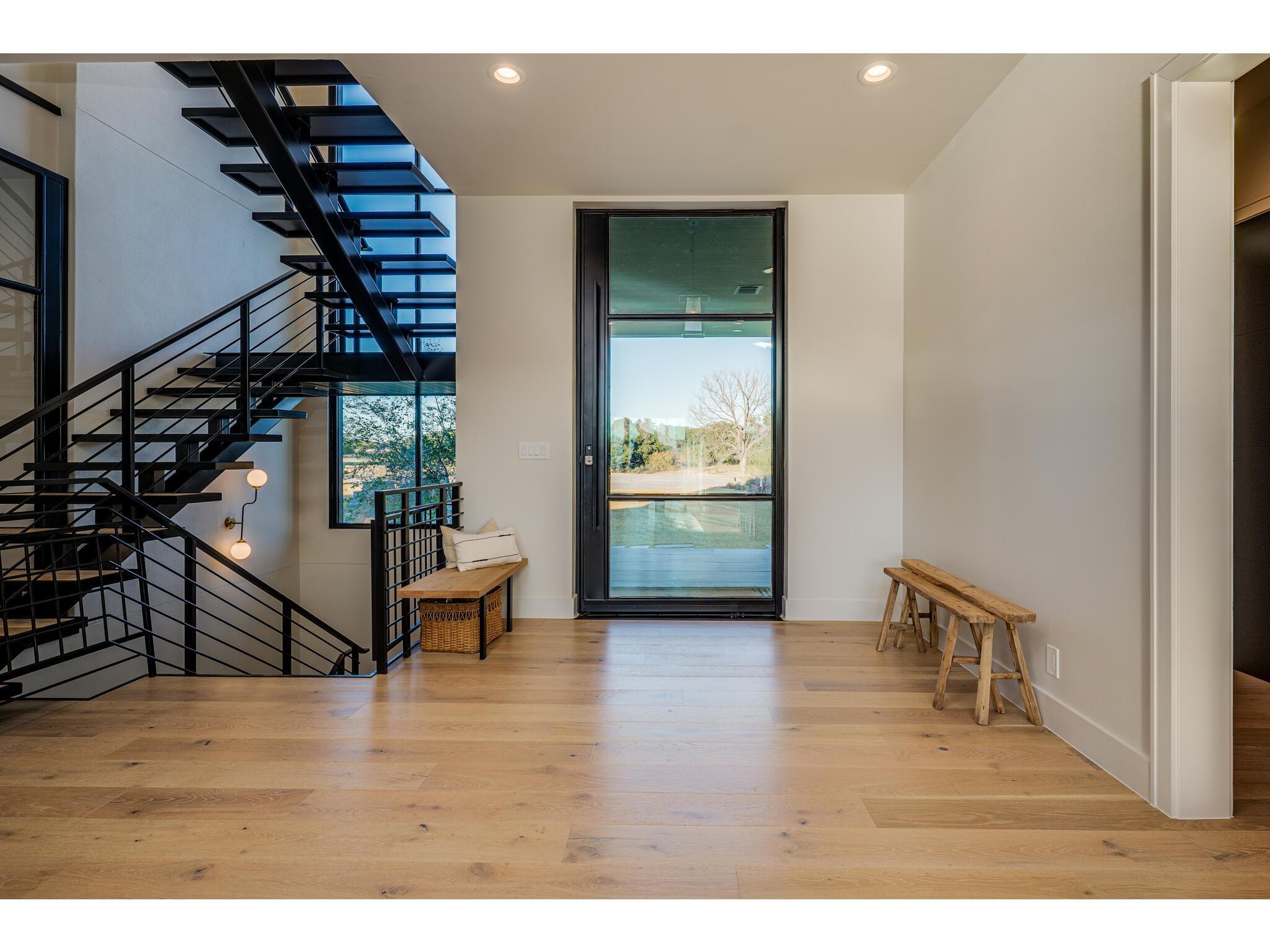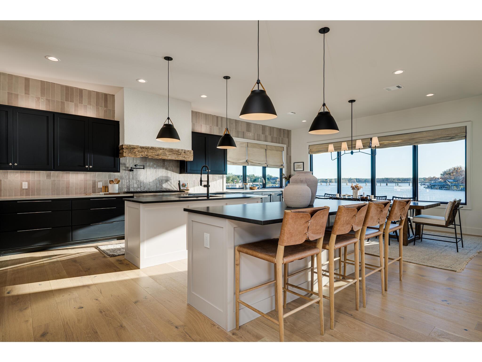 Exceptional waterfront property in Gated Legendary Estates on Lake LBJ blends modern lifestyle with sophisticated casual elegance. Located on private cul-de-sac with amazing views of Lake LBJ from expansive windows. 5,329 SF per Floor Plan Graphics. Designed with entertaining in mind, this masterfully designed home with wood flooring throughout has detailed finishes & intricate attention to detail. Sliding wall of windows in living area & primary bedroom brings the outdoors in. Relax on large covered deck with views of the amazing backyard oasis & playground. Cozy fireplace in living area encased in stone with glass front built-ins on each side. Enter office through glass and iron doors. Ideal for working remotely. Spacious kitchen is a chef's delight with high-end stainless Thermador appliances, double kitchen islands, beautiful cabinetry & expansive windows to enjoy lake views. Dining area with service bar next to kitchen with endless views. Primary suite adjacent to office on main level offers privacy & comfort. Spa-like primary bath w/ modern soaking tub & large frameless walk-in shower for complete relaxation. Additional bedroom suite on main level. 3 luxurious bedroom suites upstairs, one bedroom with queen bunk beds great for children to enjoy. Outdoor oasis with permeable turf includes boat slip, 2 wave runner slips, sundeck with slide, incredible pool and spa, built in trampoline, lounging areas, grill and summer kitchen. An unforgettable outdoor adventure for all to enjoy in this scenic Hill Country backdrop. Elevator for easy assess to all 3 levels, large laundry room on main level, stackable washer/dryer upstairs provides convenience. State of the art A/V System. 3 Car tandem garage plus large storage room. The Legends Golf Club located nearby. Walk across the street onto the golf course. Come experience the best of Lake and Hill Country living in this stunning modern resort-style waterfront home. Furniture negotiable
