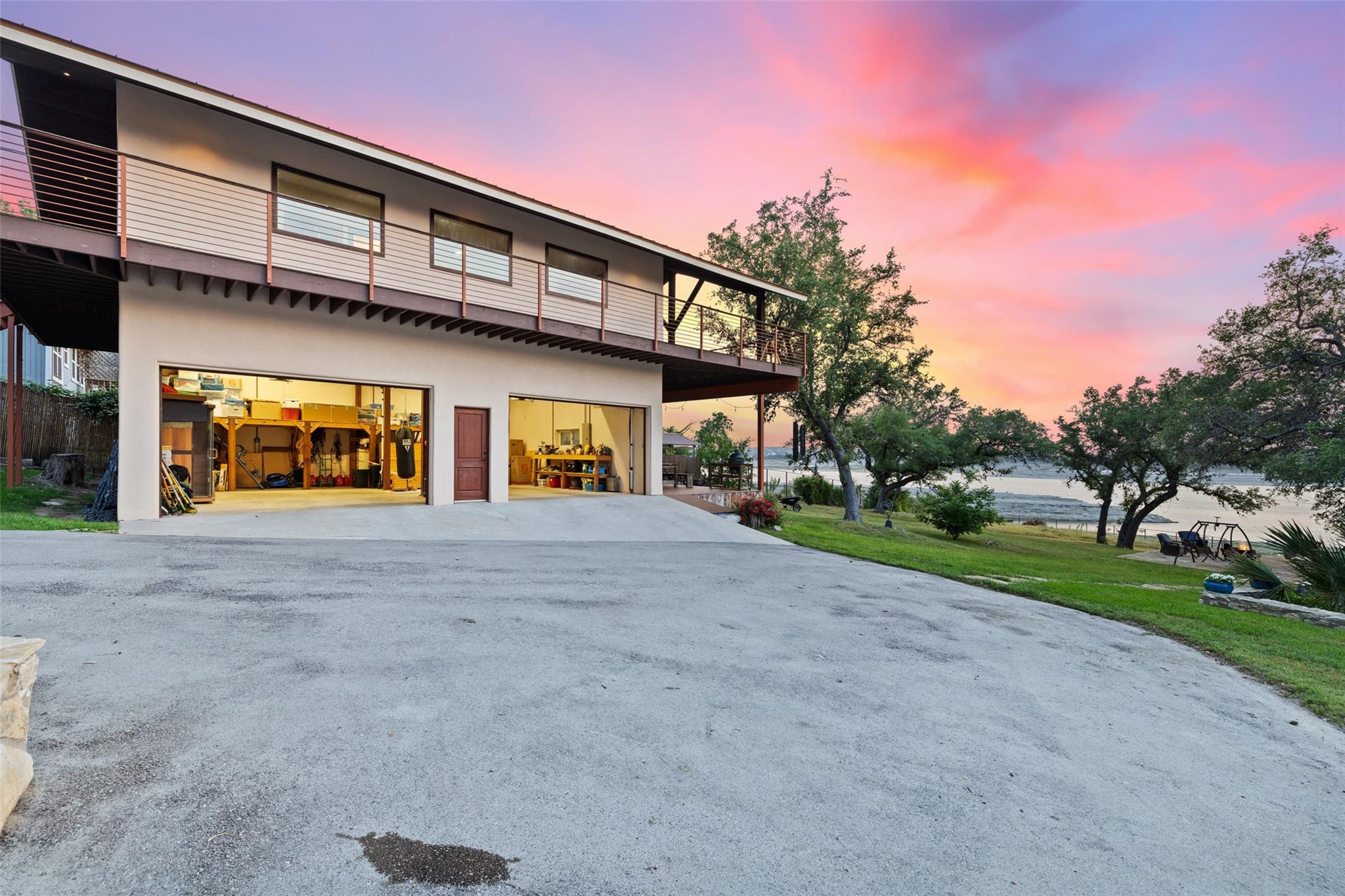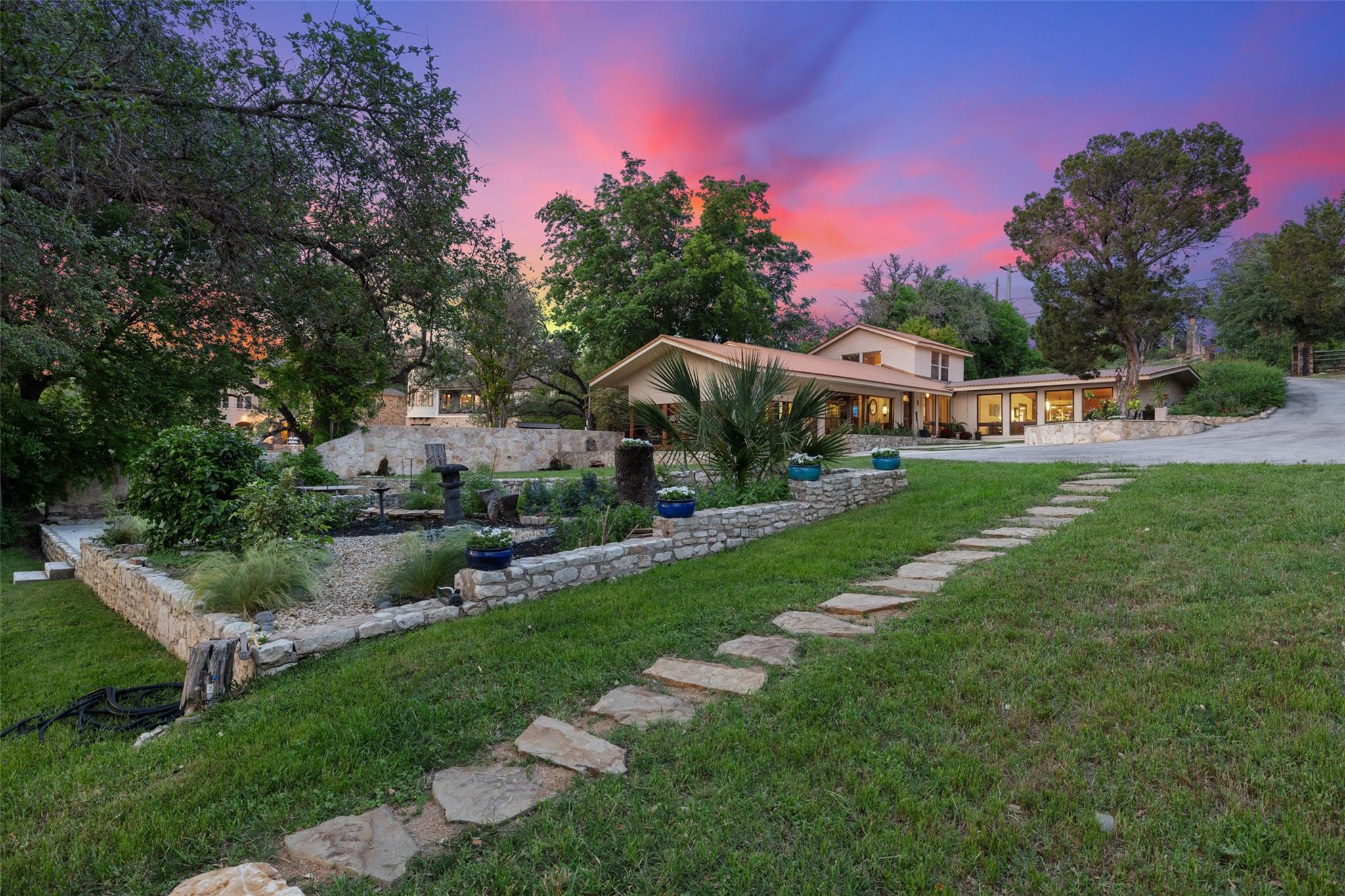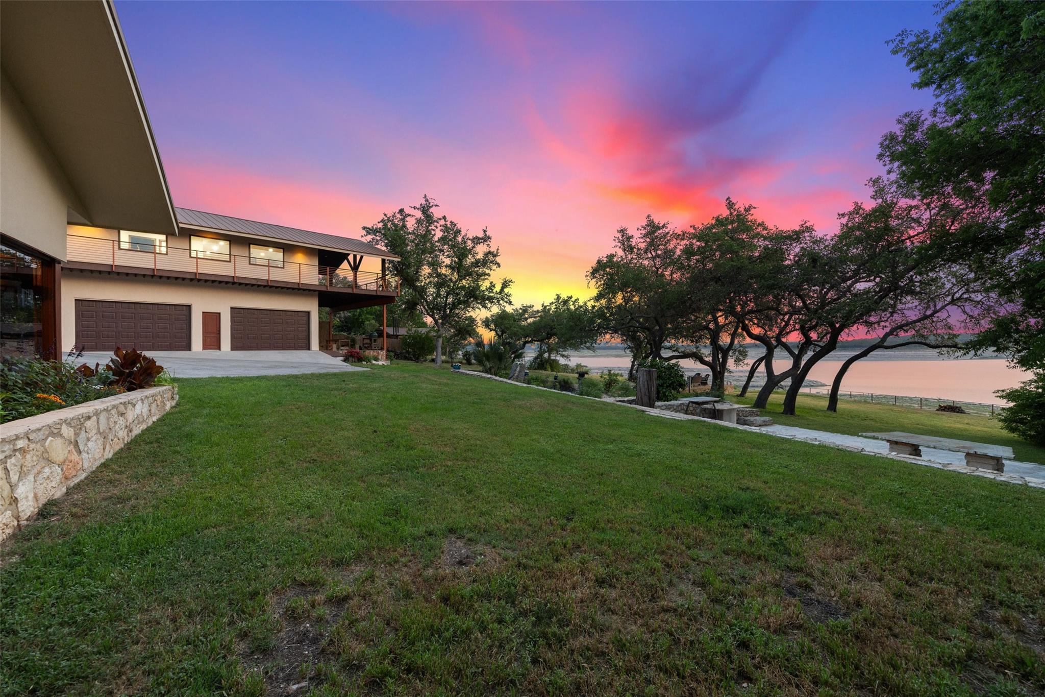 Two amazing deep Lake Travis waterfront homes on a gated lot!Welcome to 16827 South Ridge Lane–a little slice of paradise in the famous Texas hill country.Located on the West side of Hudson Bend, this property offers panoramic sunset views across Lake Travis.The land consists of a 0.9078 acre waterfront lot with 1.29 under water acres and rights + a covered second story deck, spa, fire pit, bee/butterfly garden and boat dock.No need to worry about lake levels here, the dock is always accessible on this deep water cove that is not crowded.The 2,940+/-sq.ft. main house, built in 1965 and recently renovated.A wide foyer welcomes you to this amazing residence.Inside, the open floor plan greets you in the main living/dining/kitchen with lots of natural light.The beautiful kitchen boasts a large peninsula breakfast bar, granite counters, stainless steel appliances and a laundry/pantry combo with storage.The first floor also provides a sunroom, primary suite, 2 bedrooms and 2 baths for easy living.Upstairs you will find the 3rd bedroom complete with half bath.The 2 car garage has 2 large entry doors, storage loft and enough space to house all your toys for the lake.Plus, there’s room in the driveway for an additional 6 vehicles.The guest house above the garage is smaller at 1,080+/- sq ft. with 1 floor of living space and was built in 2015.Inside is an open dining/kitchen/living, 2nd living and a full bath plus a wraparound covered deck(spa conveys).This is perfect for guests or to rent out as an income property.Pick fresh fruit from the apple, grapefruit, lemon, loquat, peach, pear and pomegranate trees.Relax at the firepit to take in the famous Texas sunset or cruise the lake from your boat dock.Come live the lake lifestyle where you feel like you are far from it all yet close enough in to shopping, dining and entertainment.This property is truly one of a kind where the enjoyment and memories are endless.