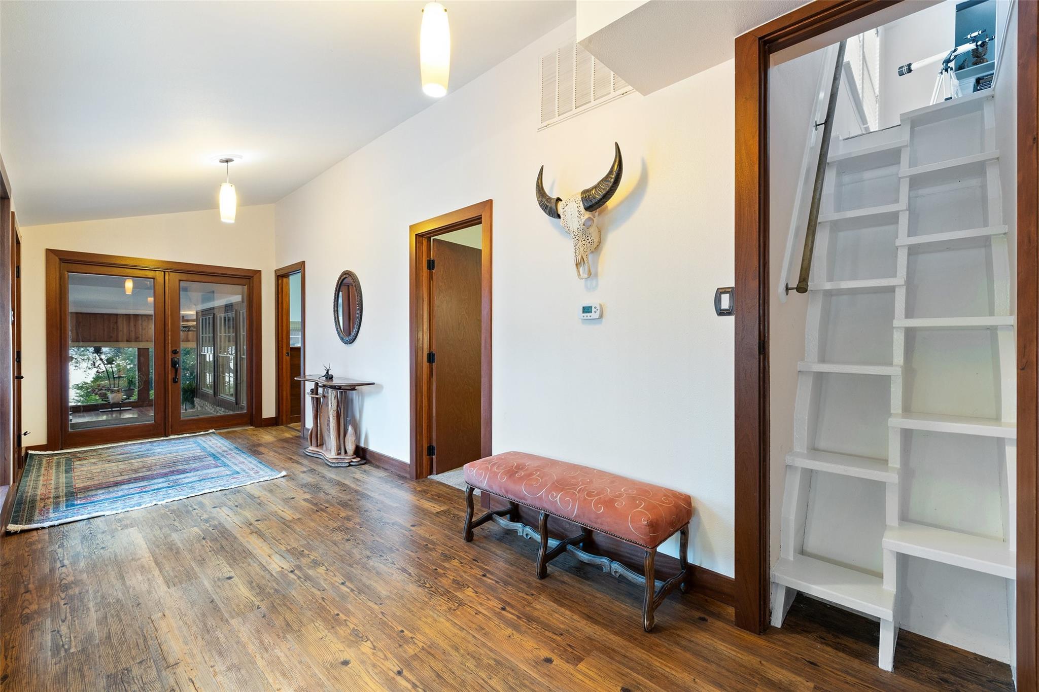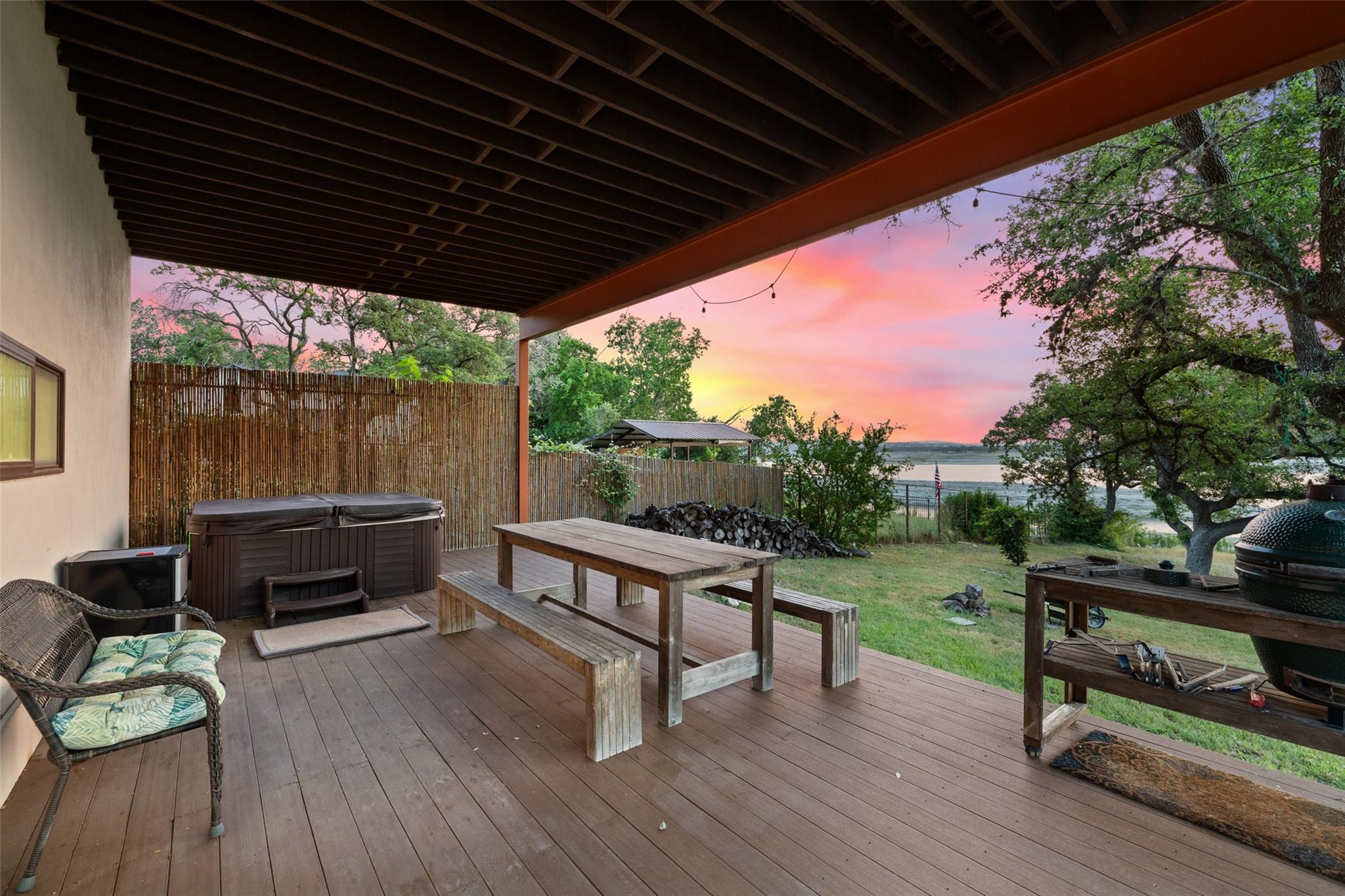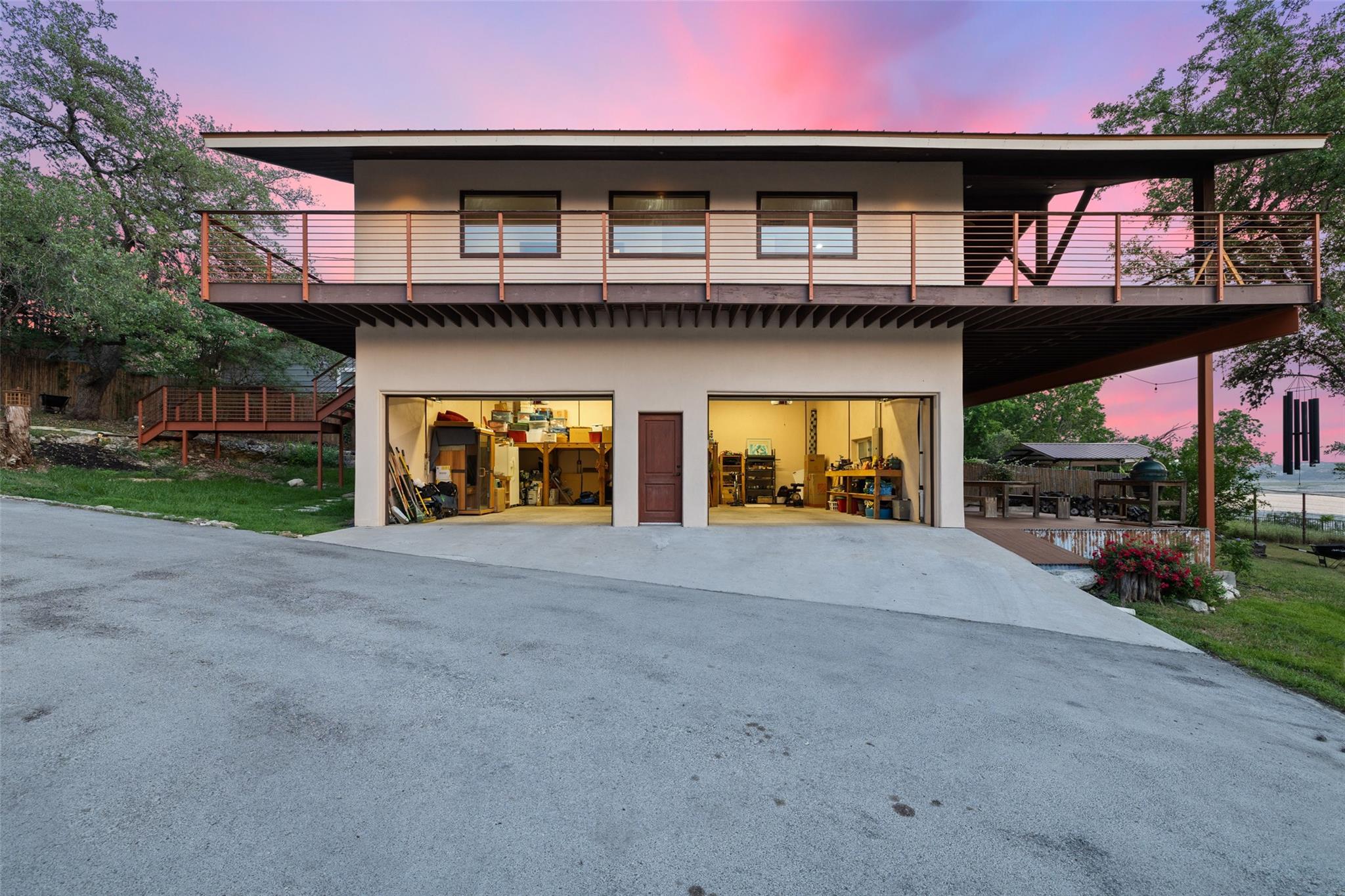 Two amazing deep Lake Travis waterfront homes on a gated lot!Welcome to 16827 South Ridge Lane–a little slice of paradise in the famous Texas hill country.Located on the West side of Hudson Bend, this property offers panoramic sunset views across Lake Travis.The land consists of a 0.9078 acre waterfront lot with 1.29 under water acres and rights + a covered second story deck, spa, fire pit, bee/butterfly garden and boat dock.No need to worry about lake levels here, the dock is always accessible on this deep water cove that is not crowded.The 2,940+/-sq.ft. main house, built in 1965 and recently renovated.A wide foyer welcomes you to this amazing residence.Inside, the open floor plan greets you in the main living/dining/kitchen with lots of natural light.The beautiful kitchen boasts a large peninsula breakfast bar, granite counters, stainless steel appliances and a laundry/pantry combo with storage.The first floor also provides a sunroom, primary suite, 2 bedrooms and 2 baths for easy living.Upstairs you will find the 3rd bedroom complete with half bath.The 2 car garage has 2 large entry doors, storage loft and enough space to house all your toys for the lake.Plus, there’s room in the driveway for an additional 6 vehicles.The guest house above the garage is smaller at 1,080+/- sq ft. with 1 floor of living space and was built in 2015.Inside is an open dining/kitchen/living, 2nd living and a full bath plus a wraparound covered deck(spa conveys).This is perfect for guests or to rent out as an income property.Pick fresh fruit from the apple, grapefruit, lemon, loquat, peach, pear and pomegranate trees.Relax at the firepit to take in the famous Texas sunset or cruise the lake from your boat dock.Come live the lake lifestyle where you feel like you are far from it all yet close enough in to shopping, dining and entertainment.This property is truly one of a kind where the enjoyment and memories are endless.