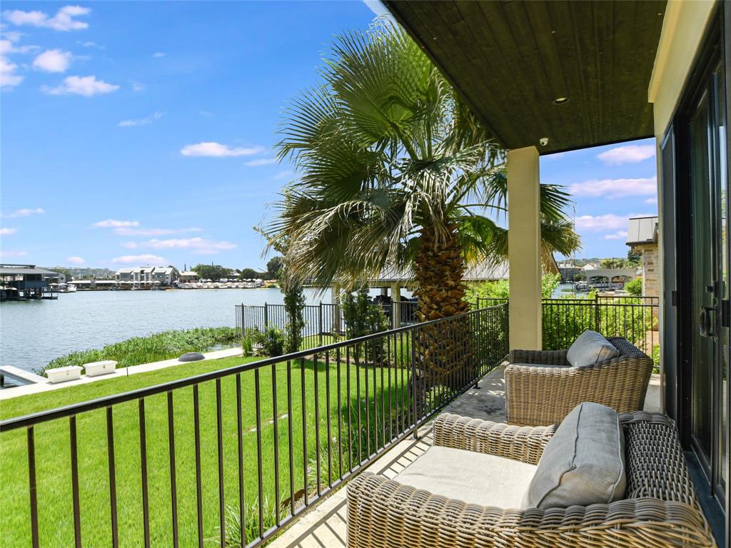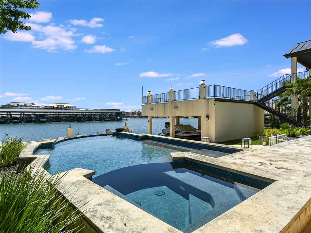 Luxurious waterfront home, located in the core Horseshoe Bay Resort area where member activities surround you. Upon entering, it’s evident the home is perfect for entertaining large groups of friends and family. Just adjacent to the entry seating area is a bar with all the expected amenities including a mini fridge, ice maker, and plenty of room to store your cocktails and other refreshments. Just beyond is the living area framed in tall wood beamed ceilings with a fireplace and large TV as a focal point. The adjacent gourmet kitchen has a double oven Wolf range, an additional wall oven and microwave, large wine cooler, built in coffee bar, island seating and a massive dining area. The owner’s suite has all the luxuries with an enclosed fireplace and TV facing the bed. The owner’s bath, with an entrance on each side, hosts a wonderful soaking tub, a massive walk-in shower/steam shower with touch screens to enjoy the comfort settings of each owner with a touch of a button, and Rinnai digital controller for the hot water. The covered porch is home to an outdoor kitchen with gas grill, sink, fridge, icemaker, fireplace with TV above, and views of the water across the awesome spa and pool. There are also integrated screens to fully enclose the porch for more privacy or protection. Along the water, there is a beach-like area and plenty of open patio space to enjoy the views. Additional deck space above the double boathouse and adjacent double jet ski slips (all with hydraulic lifts). The upstairs of the home with a full bath is a dedicated game room/media room with large Black Diamond projection screen and full bar seating area with all the amenities. The home is loaded with conveniences and being sold fully furnished.