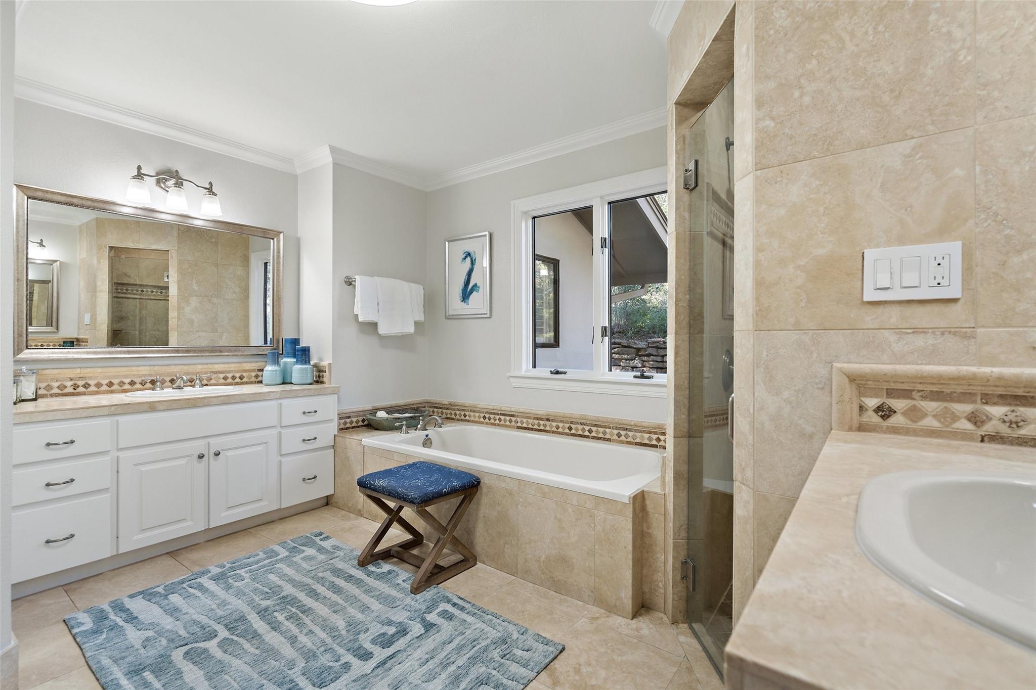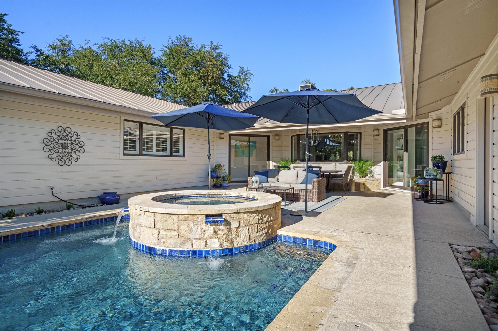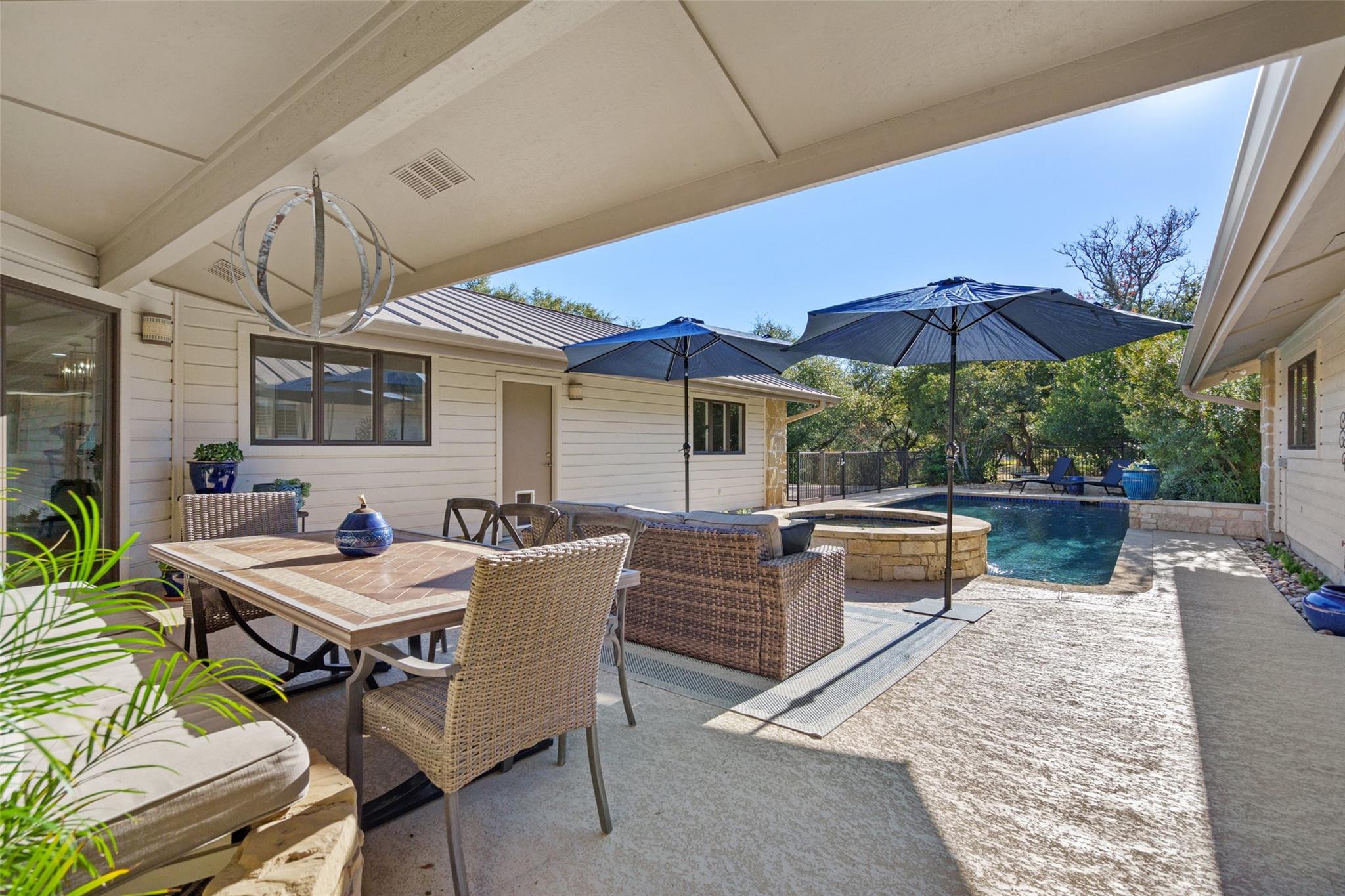 GREAT PRICE! Welcome to your dream home in the prestigious gated community of Rob Roy, located in the Eanes ISD and so close to HEB, shops, and restaurants. This impeccably designed one-story home features 5 bedrooms and 3 bathrooms on a sprawling 1-acre lot, providing the perfect balance of space and privacy. The heart of the home is a recently remodeled kitchen that combines quality, stainless steel appliances, custom cabinetry, and gorgeous geometric tile backsplash to create a space everyone will cherish. The expansive floor plan is thoughtfully designed to cater to both family living and those with frequent guests seeking a sophisticated retreat. Five generously sized bedrooms offer versatility, providing ample space for a growing family or accommodating guests with style, comfort, and privacy. Indulge in the relaxing outdoor experience within your private sanctuary. Step outside to discover a sparkling heated pool and a soothing hot tub with plenty of space for entertaining. The landscaped grounds extend over an acre, offering flat areas for a playscape or trampoline. This home lives larger than its 3,769 square feet of living space. A former builder’s residence that has been tastefully updated with attention to detail evident at every turn. The climate-controlled garage has a dedicated HVAC; perfect for a gym, workshop, band practice or to keep pets comfy. Within the highly acclaimed Eanes ISD, this residence is zoned to Bridgepoint Elementary, Hill Country Middle, and Westlake High. Many exceptional private schools are nearby including St. Stephen’s, St. Gabriel’s, St. Michael’s, and Trinity. The gated Rob Roy neighborhood with a 24-hour security guard provides an added layer of security and exclusivity; truly a special neighborhood in Westlake. This home presents an ideal floor plan that seamlessly blends practicality with privacy. Don't miss the opportunity to make this exquisite residence in the coveted Rob Roy neighborhood your own.