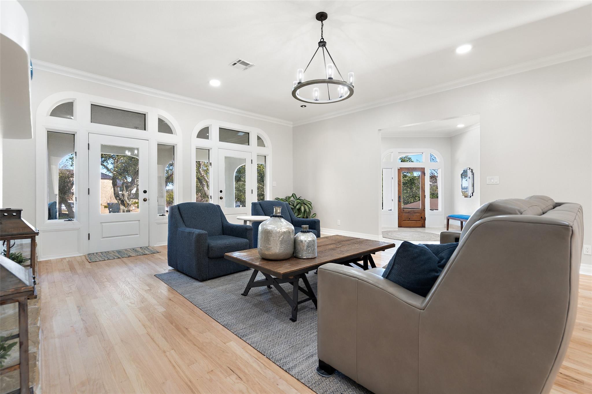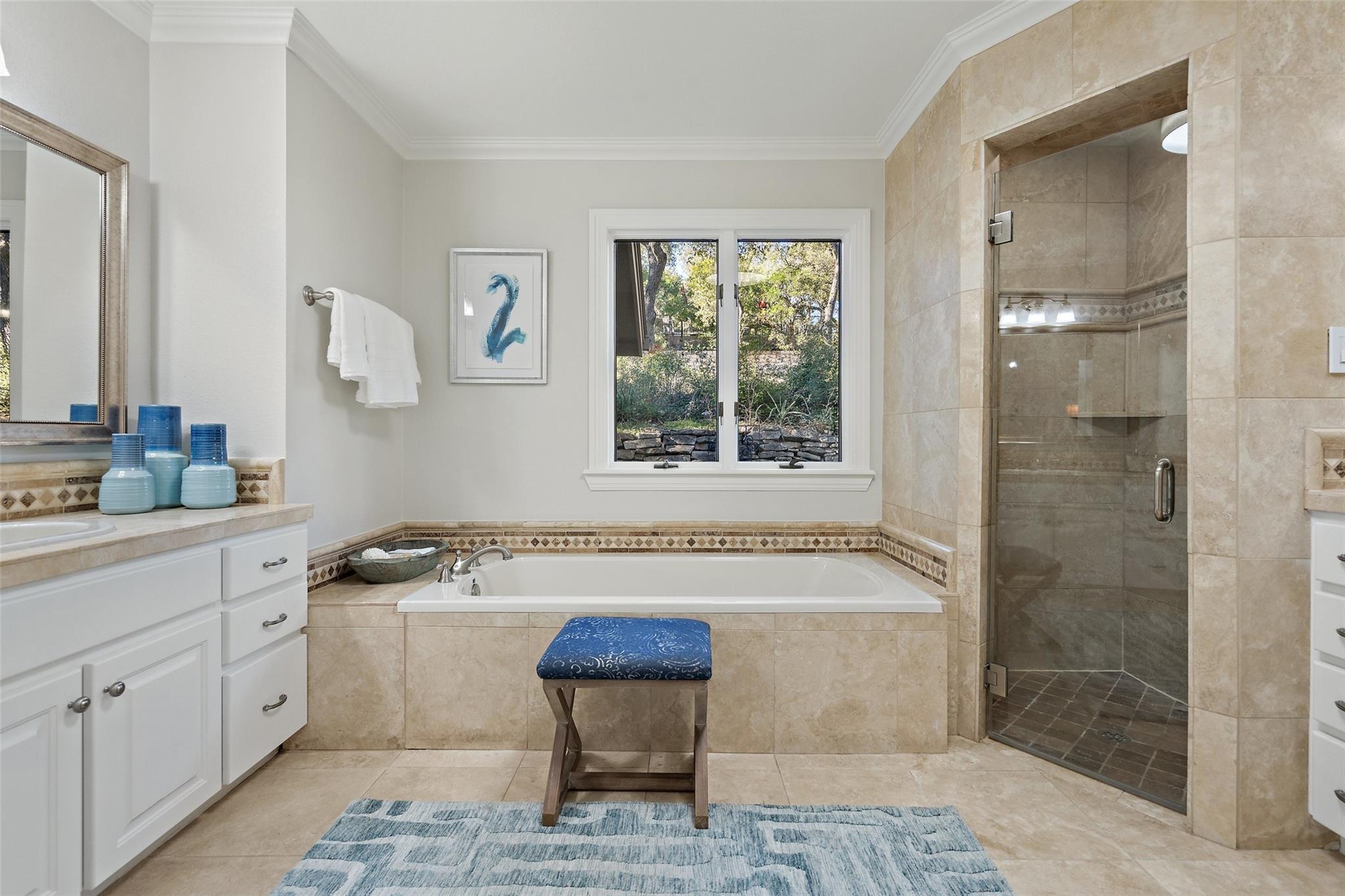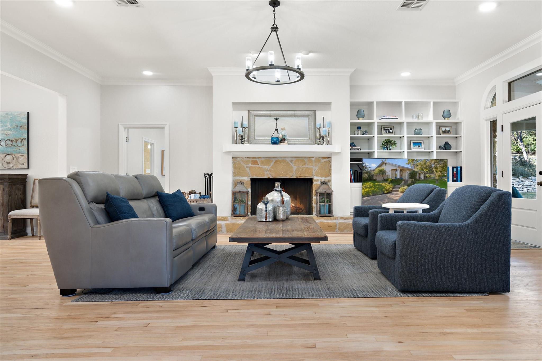 GREAT PRICE! Welcome to your dream home in the prestigious gated community of Rob Roy, located in the Eanes ISD and so close to HEB, shops, and restaurants. This impeccably designed one-story home features 5 bedrooms and 3 bathrooms on a sprawling 1-acre lot, providing the perfect balance of space and privacy. The heart of the home is a recently remodeled kitchen that combines quality, stainless steel appliances, custom cabinetry, and gorgeous geometric tile backsplash to create a space everyone will cherish. The expansive floor plan is thoughtfully designed to cater to both family living and those with frequent guests seeking a sophisticated retreat. Five generously sized bedrooms offer versatility, providing ample space for a growing family or accommodating guests with style, comfort, and privacy. Indulge in the relaxing outdoor experience within your private sanctuary. Step outside to discover a sparkling heated pool and a soothing hot tub with plenty of space for entertaining. The landscaped grounds extend over an acre, offering flat areas for a playscape or trampoline. This home lives larger than its 3,769 square feet of living space. A former builder’s residence that has been tastefully updated with attention to detail evident at every turn. The climate-controlled garage has a dedicated HVAC; perfect for a gym, workshop, band practice or to keep pets comfy. Within the highly acclaimed Eanes ISD, this residence is zoned to Bridgepoint Elementary, Hill Country Middle, and Westlake High. Many exceptional private schools are nearby including St. Stephen’s, St. Gabriel’s, St. Michael’s, and Trinity. The gated Rob Roy neighborhood with a 24-hour security guard provides an added layer of security and exclusivity; truly a special neighborhood in Westlake. This home presents an ideal floor plan that seamlessly blends practicality with privacy. Don't miss the opportunity to make this exquisite residence in the coveted Rob Roy neighborhood your own.