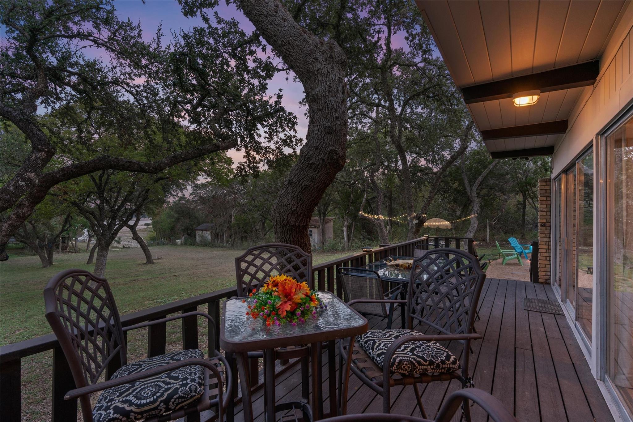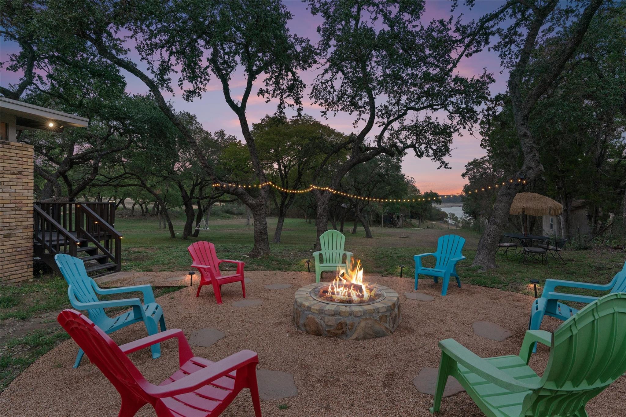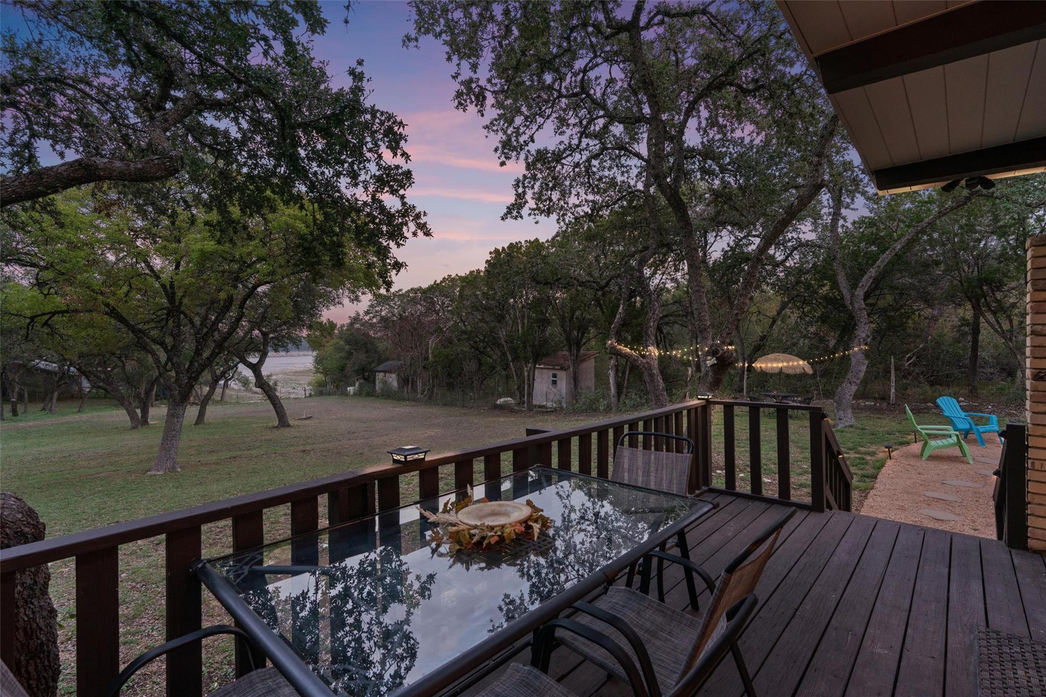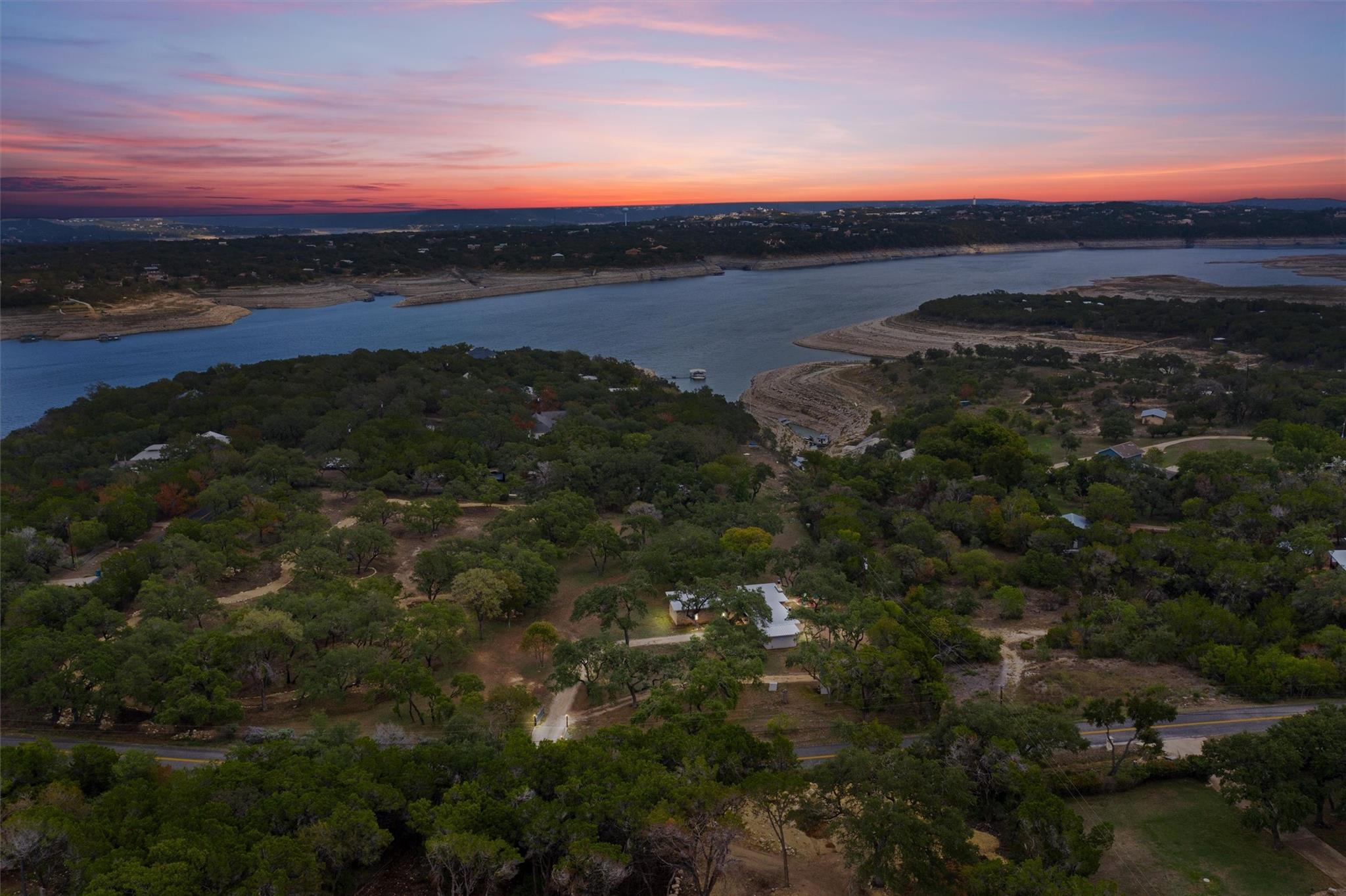 This exceptional waterfront 4.2-acre property nested amidst the tranquil surroundings of Lago Vista, offers a rare blend of serenity and style. Boasting breathtaking views of the lake and the picturesque sunsets, this home is a true retreat for those seeking peace and natural beauty. Wake up to stunning views of the lake every morning, which can be enjoyed from every room. Step inside to discover a thoughtfully designed interior featuring a fully furnished 3 bed/2 bath, providing the perfect balance of comfort and functionality. The open concept living area is bathed in natural light, creating a warm and inviting ambiance, while cooking or simply relaxing by the fireplace. The kitchen is equipped with ample counter space, ideal for entertaining guests. The property boasts a generous outdoor space, ideal for hosting, or simply relaxing while taking in the scenic views. This stunning lakefront home is conveniently located near wineries, golf courses, schools, restaurants, entertainment, and hiking trails. The unrestricted large lot offers ample possibilities, including adding a private boat dock, adding an additional home, or subdividing into multiple waterfront lots. This home is move in ready as it comes fully furnished.