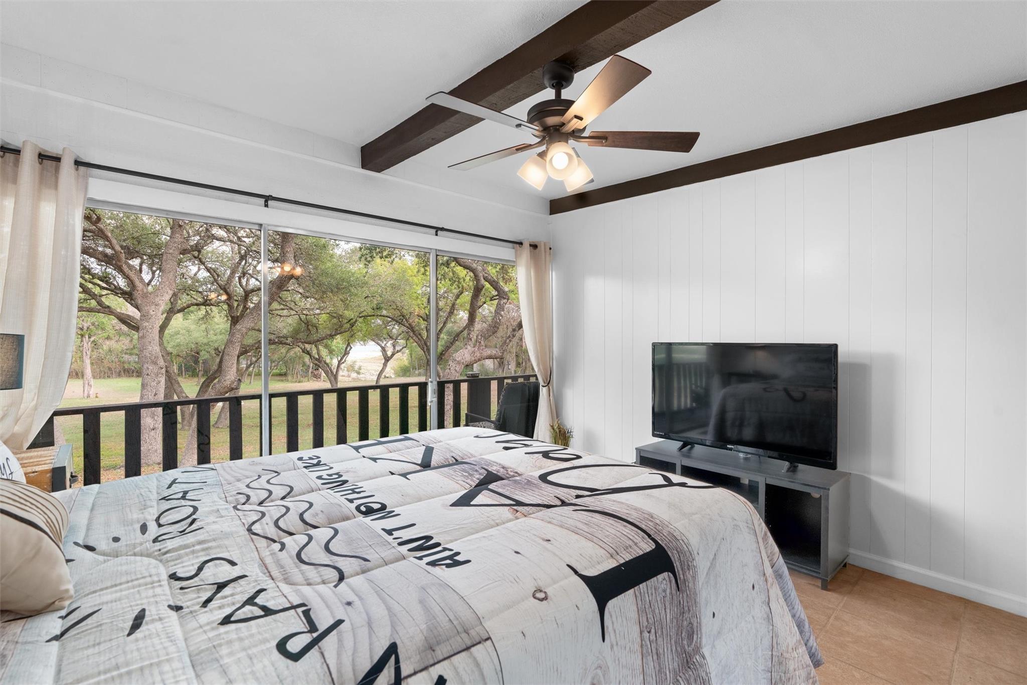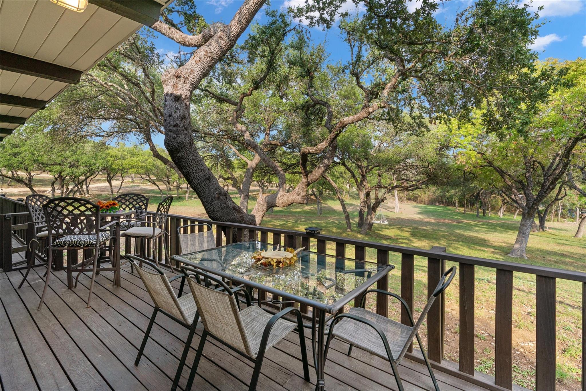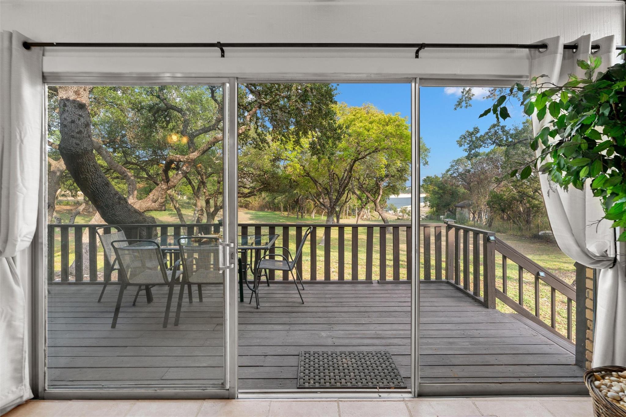 This exceptional waterfront 4.2-acre property nested amidst the tranquil surroundings of Lago Vista, offers a rare blend of serenity and style. Boasting breathtaking views of the lake and the picturesque sunsets, this home is a true retreat for those seeking peace and natural beauty. Wake up to stunning views of the lake every morning, which can be enjoyed from every room. Step inside to discover a thoughtfully designed interior featuring a fully furnished 3 bed/2 bath, providing the perfect balance of comfort and functionality. The open concept living area is bathed in natural light, creating a warm and inviting ambiance, while cooking or simply relaxing by the fireplace. The kitchen is equipped with ample counter space, ideal for entertaining guests. The property boasts a generous outdoor space, ideal for hosting, or simply relaxing while taking in the scenic views. This stunning lakefront home is conveniently located near wineries, golf courses, schools, restaurants, entertainment, and hiking trails. The unrestricted large lot offers ample possibilities, including adding a private boat dock, adding an additional home, or subdividing into multiple waterfront lots. This home is move in ready as it comes fully furnished.