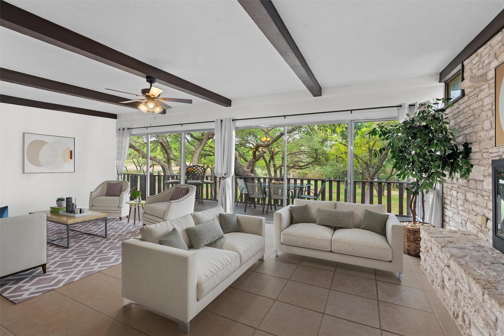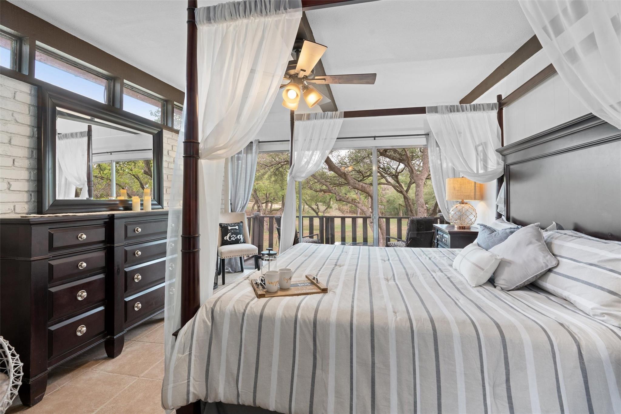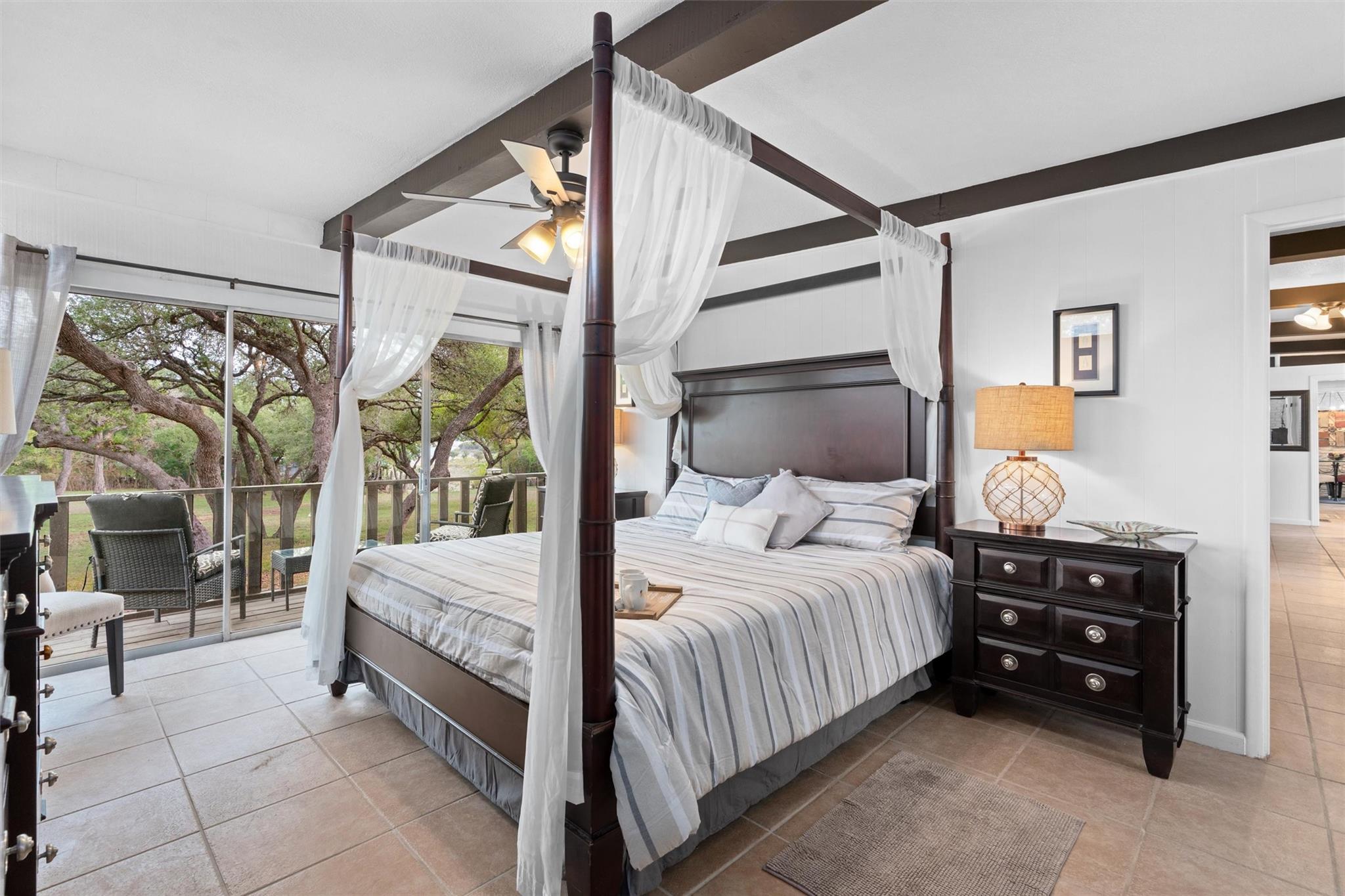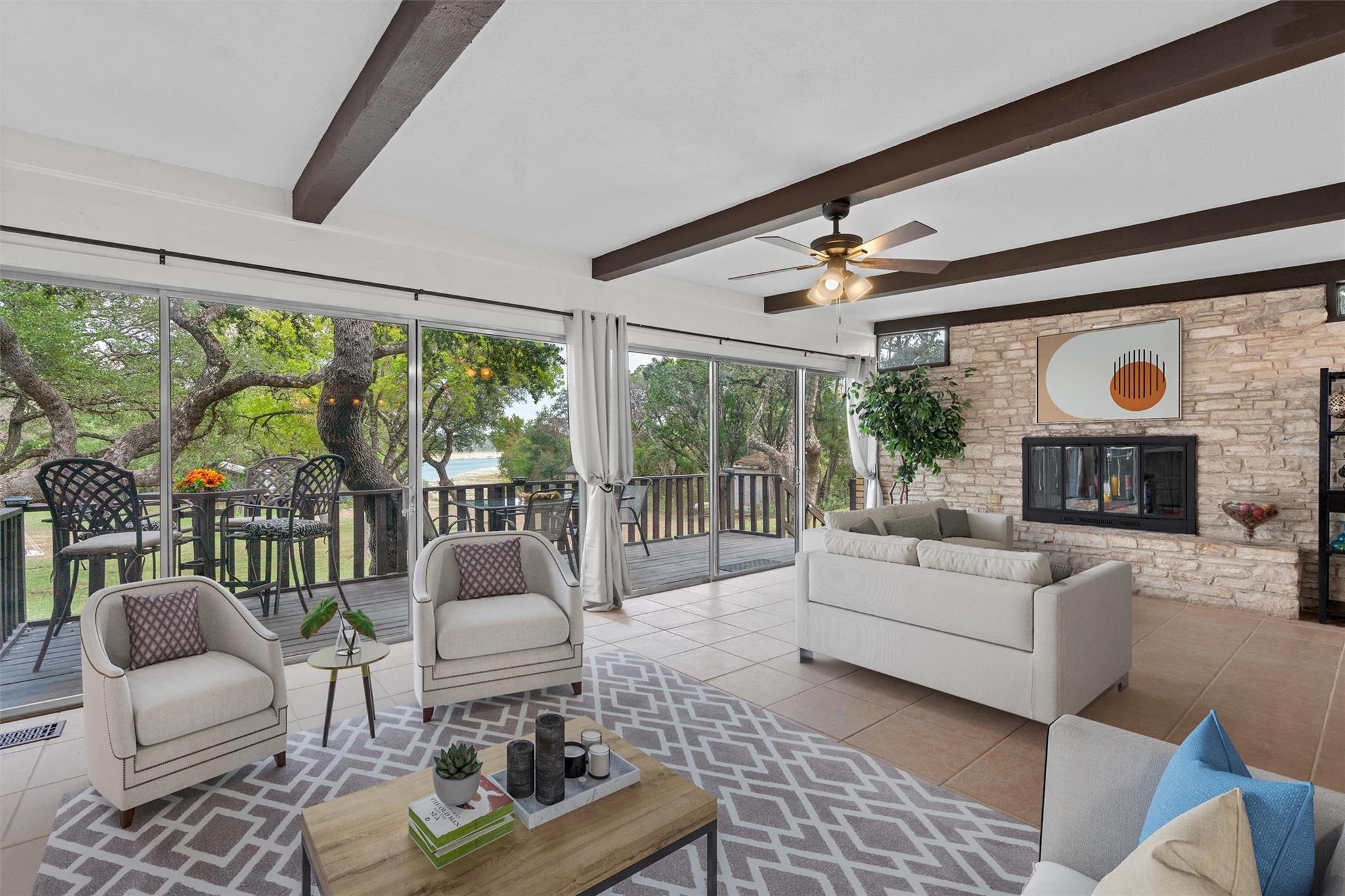 This exceptional waterfront 4.2-acre property nested amidst the tranquil surroundings of Lago Vista, offers a rare blend of serenity and style. Boasting breathtaking views of the lake and the picturesque sunsets, this home is a true retreat for those seeking peace and natural beauty. Wake up to stunning views of the lake every morning, which can be enjoyed from every room. Step inside to discover a thoughtfully designed interior featuring a fully furnished 3 bed/2 bath, providing the perfect balance of comfort and functionality. The open concept living area is bathed in natural light, creating a warm and inviting ambiance, while cooking or simply relaxing by the fireplace. The kitchen is equipped with ample counter space, ideal for entertaining guests. The property boasts a generous outdoor space, ideal for hosting, or simply relaxing while taking in the scenic views. This stunning lakefront home is conveniently located near wineries, golf courses, schools, restaurants, entertainment, and hiking trails. The unrestricted large lot offers ample possibilities, including adding a private boat dock, adding an additional home, or subdividing into multiple waterfront lots. This home is move in ready as it comes fully furnished.