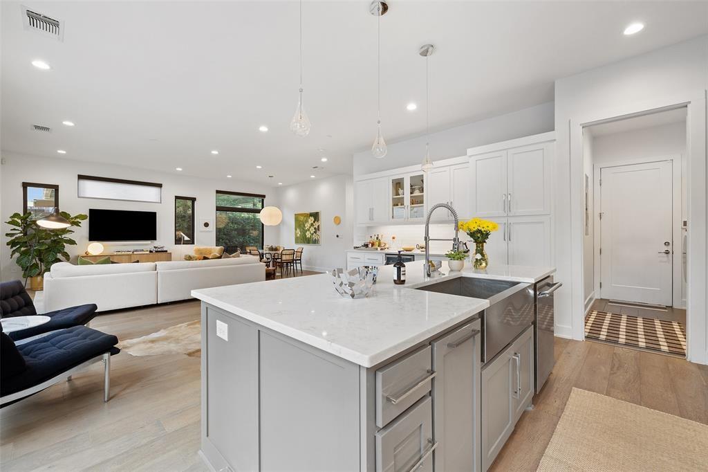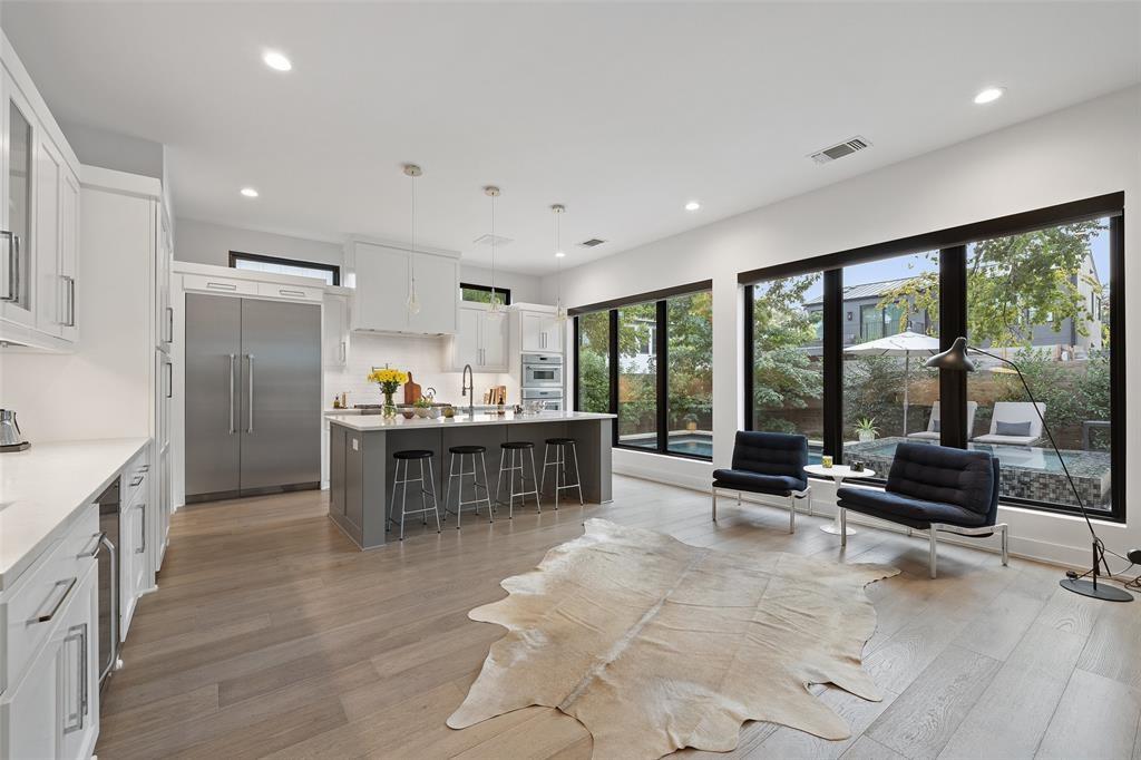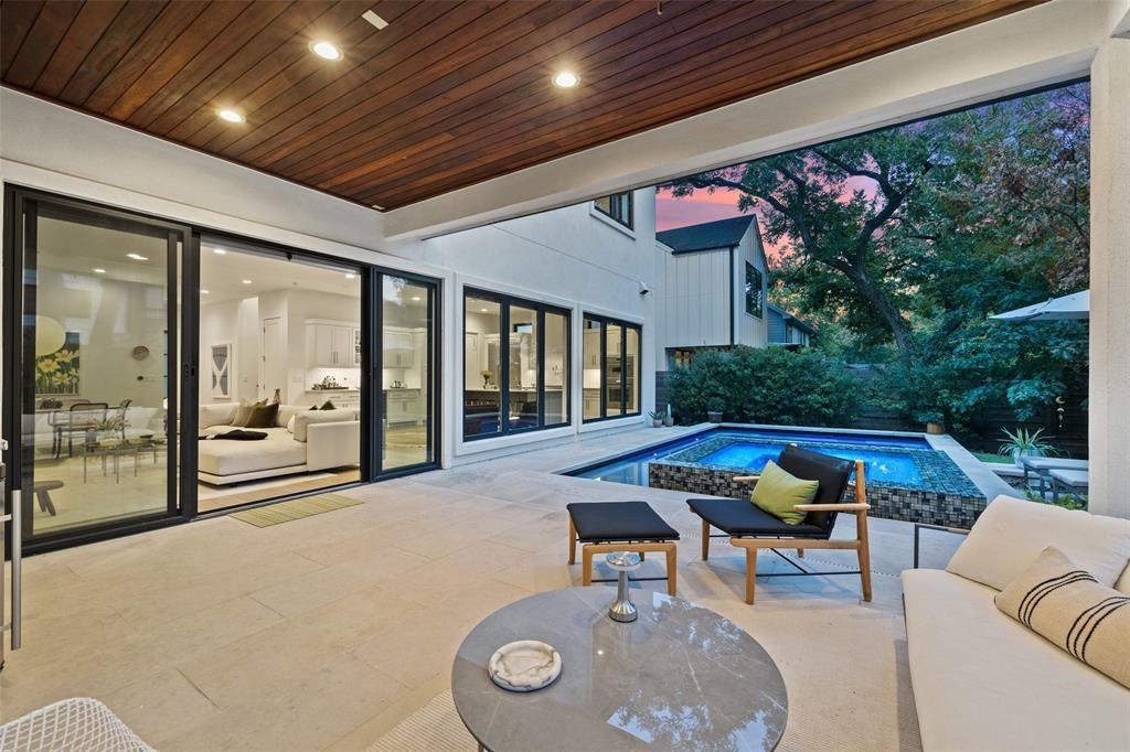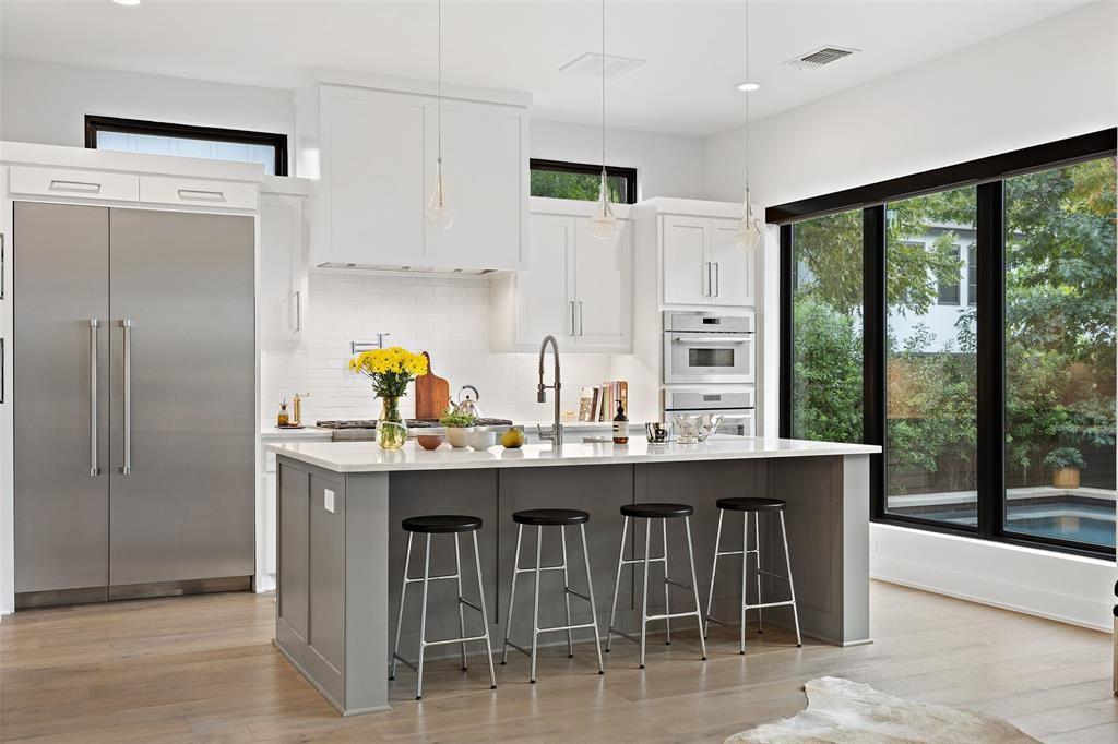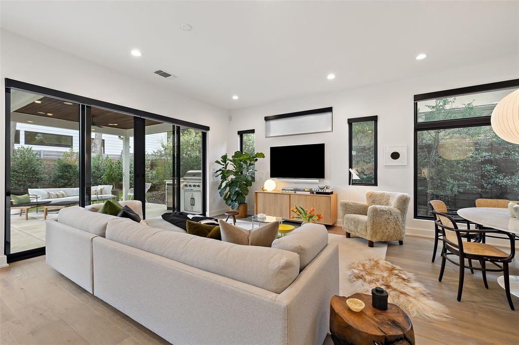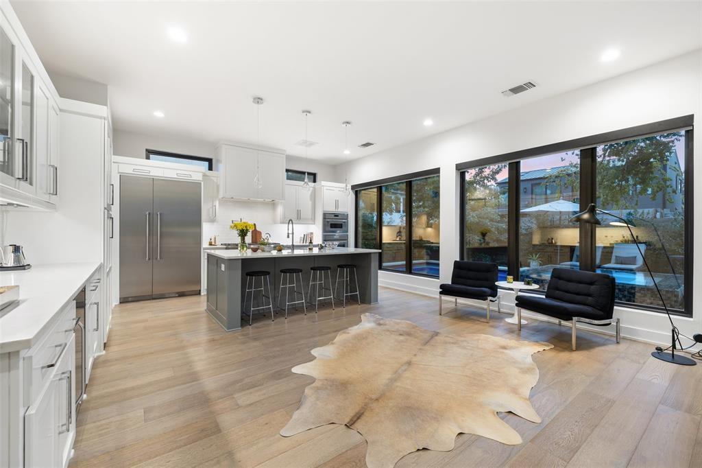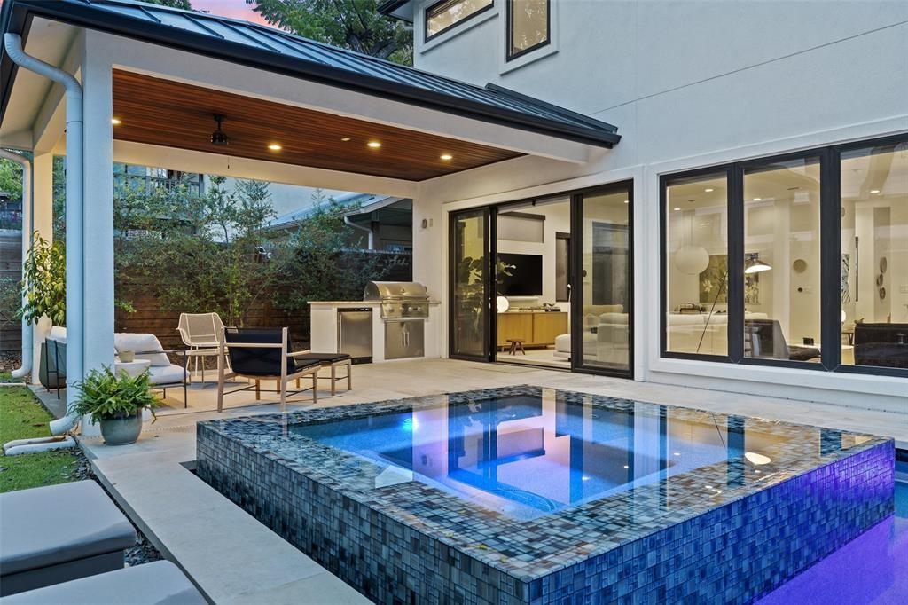 Welcome to your dream home on Austin's iconic Peach Tree Street, where elegance meets charm in the heart of Zilker. This breathtaking residence, perfectly situated just 2 blocks from the Blue-Ribbon award-winning Zilker Elementary school, offers the ideal mix of sophistication and warmth. Nestled on a serene tree-lined street, this home boasts a perfect location within the coveted SoLa District. Enjoy the convenience of being within walking distance to Austin institutions such as Zilker Park, Barton Springs, Alamo Drafthouse, Highball, Uchi, Ramen Tatsyuda, Do512Lounge,Broken Spoke, and Odd Duck. Step into luxury with an expansive modern design where no expense has been spared. The Gourmet Kitchen that opens to the spacious family room is the heart of the home and offers fabulous views of the sparkling pool backyard oasis. The high-end Thermador appliance package in the kitchen is complemented by a built-in outdoor BBQ and a beautiful bar with wine storage, making entertaining a delight. The master bath is a true retreat, featuring a large shower and marble finishes. Relax in the sparkling pool and spa, controlled effortlessly with wifi, and enjoy the added convenience of recently installed turf in the backyard. The standing seam metal roof adds a touch of modernity while providing a functional and aesthetically pleasing touch. The interior is bathed with natural light, thanks to Fleetwood sliding doors, high-end windows, and wide plank white oak flooring. Practicality meets luxury with a 2-car garage, recently planted hedges in the back, ensuring privacy and adding to the overall appeal. As a bonus, this home comes complete with a newly purchased LG washer and dryer. With meticulous attention to detail, including Design Within Reach lighting, this home on Peach Tree Street is the epitome of Austin living—sophisticated, charming, and within arm's reach of everything that makes this city iconic.