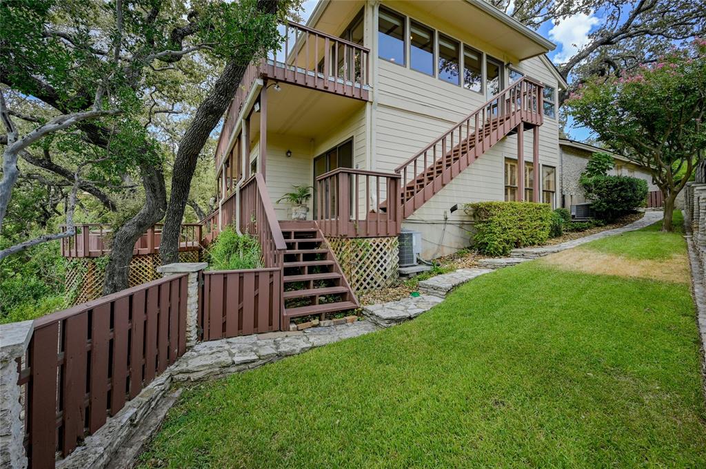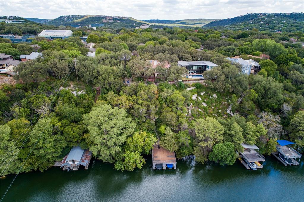 A Wonderful Location on Lake Austin inside the 360 Bridge. Enjoy treetop views overlooking Lake Austin and your private boat dock with two slips plus a party deck in a serene cove. This residence, a creation by Don Reynolds, stands as a testament to heritage within The Courtyard. Originally one of the inaugural 3 dwellings erected for the visionary developer of the Swim and Tennis Club, this home offers the opportunity to become the steward of its storied legacy. Designed for the discerning owner seeking a lakeside retreat, this property is suited for those desiring a "lock-and-leave" lifestyle. Upon approach, a sweeping panorama unfolds, courtesy of strategically positioned windows, affording vistas of Lake Austin, the Austin Country Club, and the picturesque Hill Country. As you traverse this exceptional residence, the sensation of dwelling amongst the treetops, poised majestically above the tranquil lake, becomes palpable. The main level hosts 3 bedrooms, while an additional 2 are on the upper level. The primary suite stands as a sanctuary unto itself, graced by vaulted ceilings, a see-through fireplace, and ample space for a sitting area, all complemented by an expansive en-suite bath. Positioned in the exclusive Courtyard enclave, discreetly nestled at the confluence of 2222 and 360, this residence offers exceptional accessibility to prominent local landmarks such as the Pennybacker Bridge, Barton Creek Mall, Trader Joe's, Central Market, the Arboretum, and the Domain. The essence of The Courtyard extends beyond its residences; the community encompasses a private, gated park featuring a playground, barbecue and picnic area, scenic trails tracing the meandering course of Bull Creek, and a wealth of additional amenities. Tax and assessed values are estimates for illustration purposes only. All figures should be independently verified. 24-Hour Advance Showing Notice.