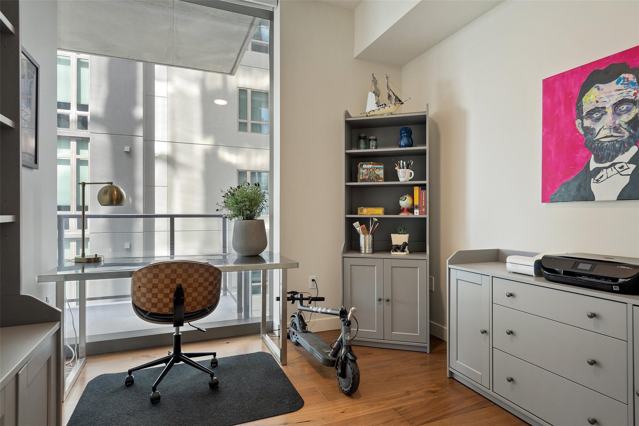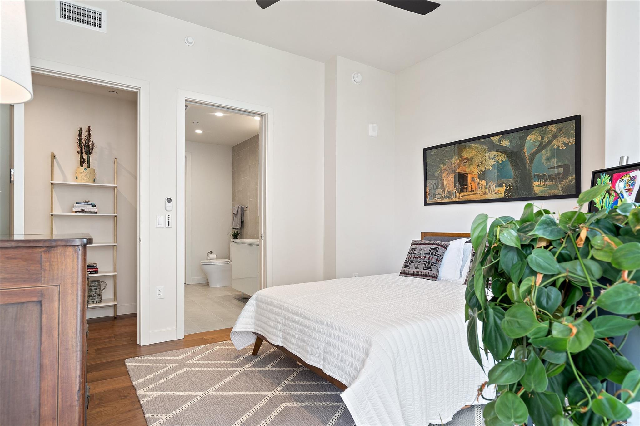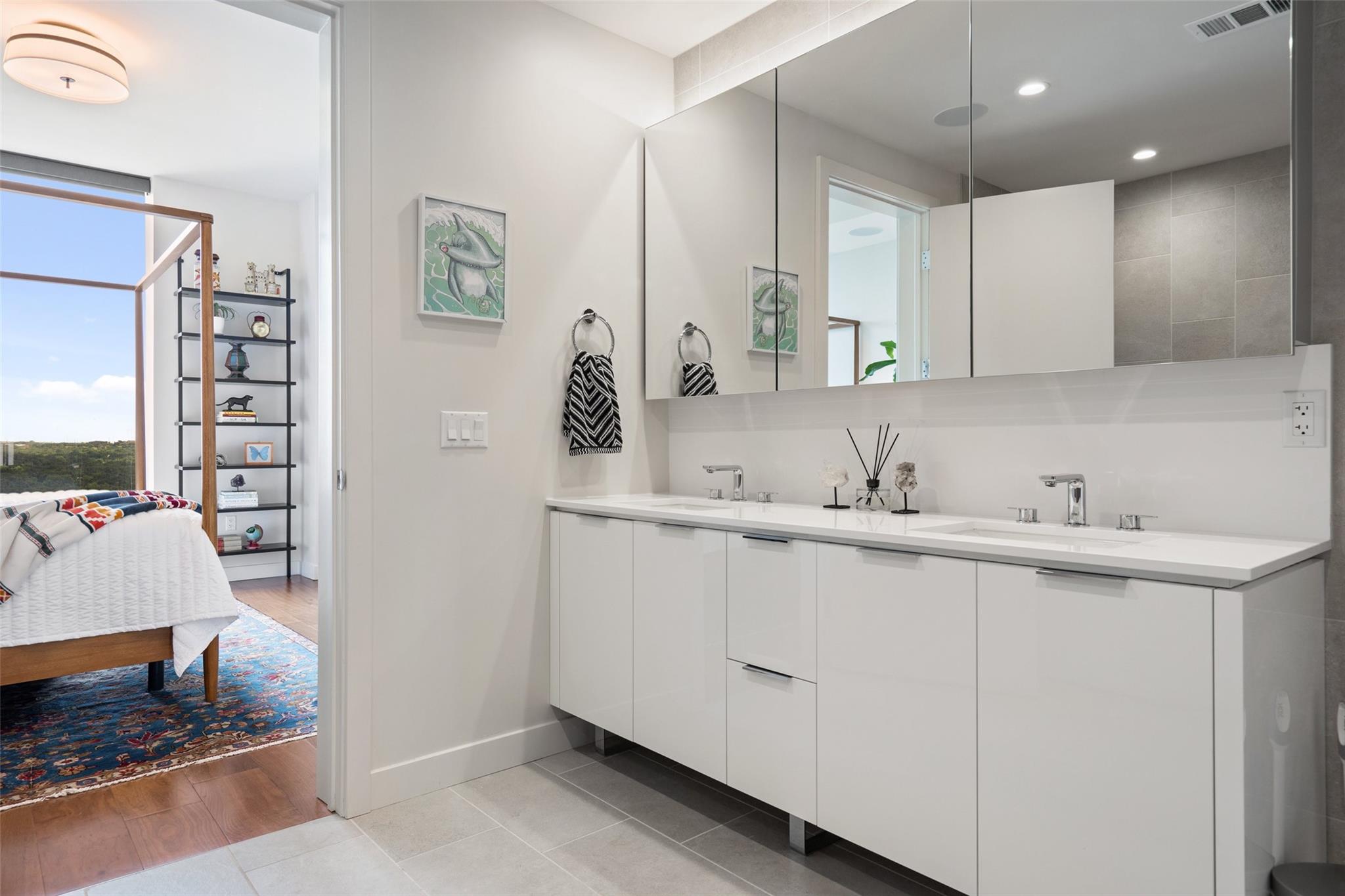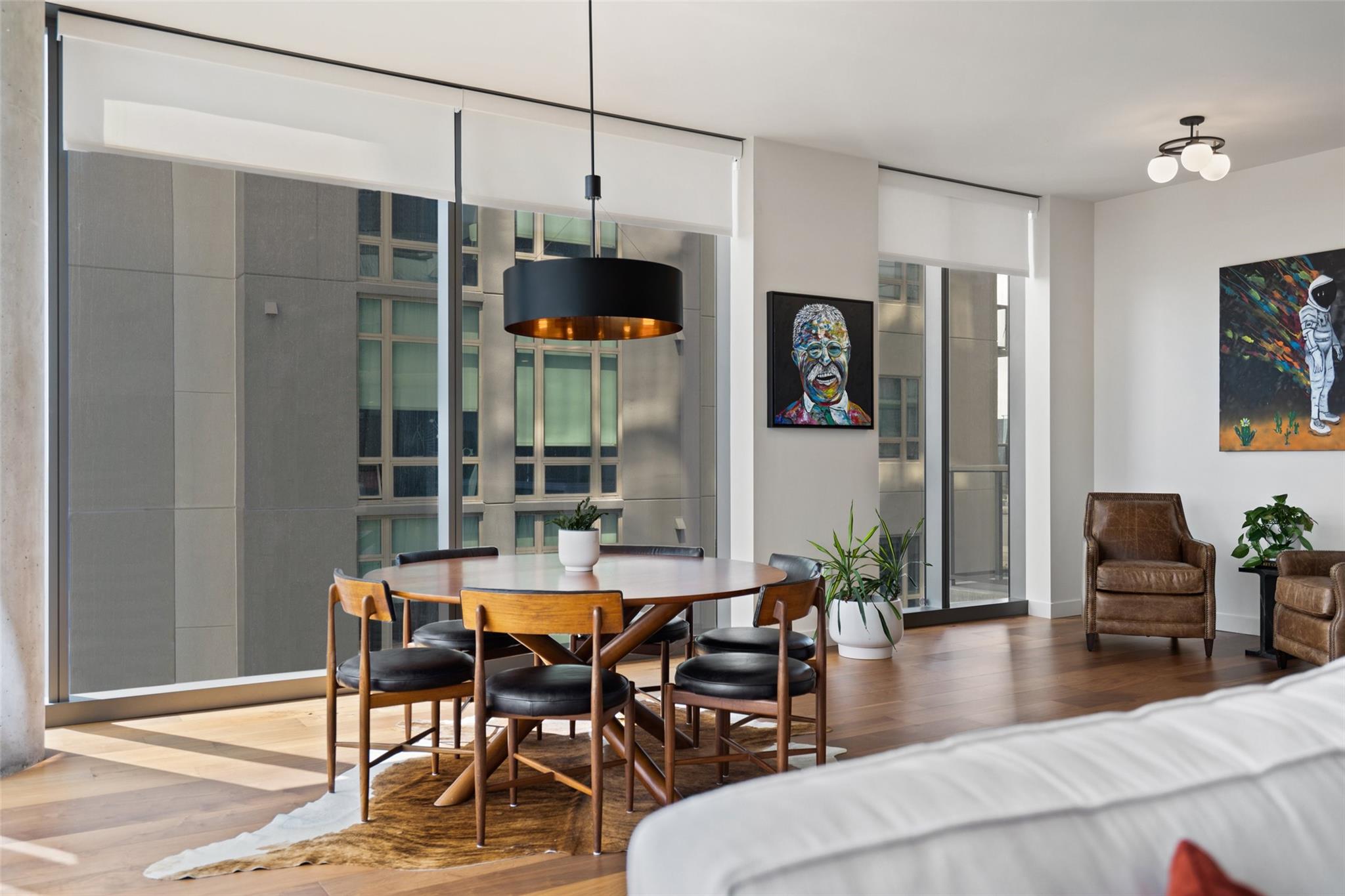 Welcome to your ultimate sanctuary with captivating views nestled in the heart of the vibrant Rainey St. district. This exceptional 3 bedroom, 3 bathroom condo offers a coveted South facing orientation, granting you unobstructed panoramas of the serene Ladybird Lake and the dynamic downtown corridor. Step inside and be mesmerized by the floor-to-ceiling walls of glass, meticulously designed to frame the awe-inspiring views and flood the space with natural light. Every detail has been carefully considered to create an atmosphere of unparalleled elegance. Submerge yourself in the timeless refinement of hardwood floors and the sleek allure of quartz counters, which effortlessly blend style and functionality. The open living, kitchen, and dining areas create a seamless flow, ideal for entertaining guests. The condo comes wired with speakers, while the automatic window shades on all windows provide effortless privacy and shade at the touch of a button. Wake up to breathtaking lake views from the comfort of your primary bedroom and unwind in your spa-like bathroom. Organize your wardrobe with ease in the custom closet systems. Step out onto the large covered balcony and revel in the stunning South facing views of the lake. A second covered balcony off the guest bedroom presents picturesque downtown corridor views. Your new home comes complete with two parking spots on the 6th floor, conveniently equipped with an electric car charger, ensuring convenience for your modern lifestyle. At 44 East, luxury extends beyond your private abode. Immerse yourself in the world-class amenities offered by this premier building. Take a refreshing dip in the sparkling pool, stay active and energized in the state-of-the-art gym, or unwind in the inviting resident lounges. The sky deck on the 37th floor allows you to experience breathtaking views from new heights, while the 24-hour concierge ensures your every need is met with utmost care and attention.