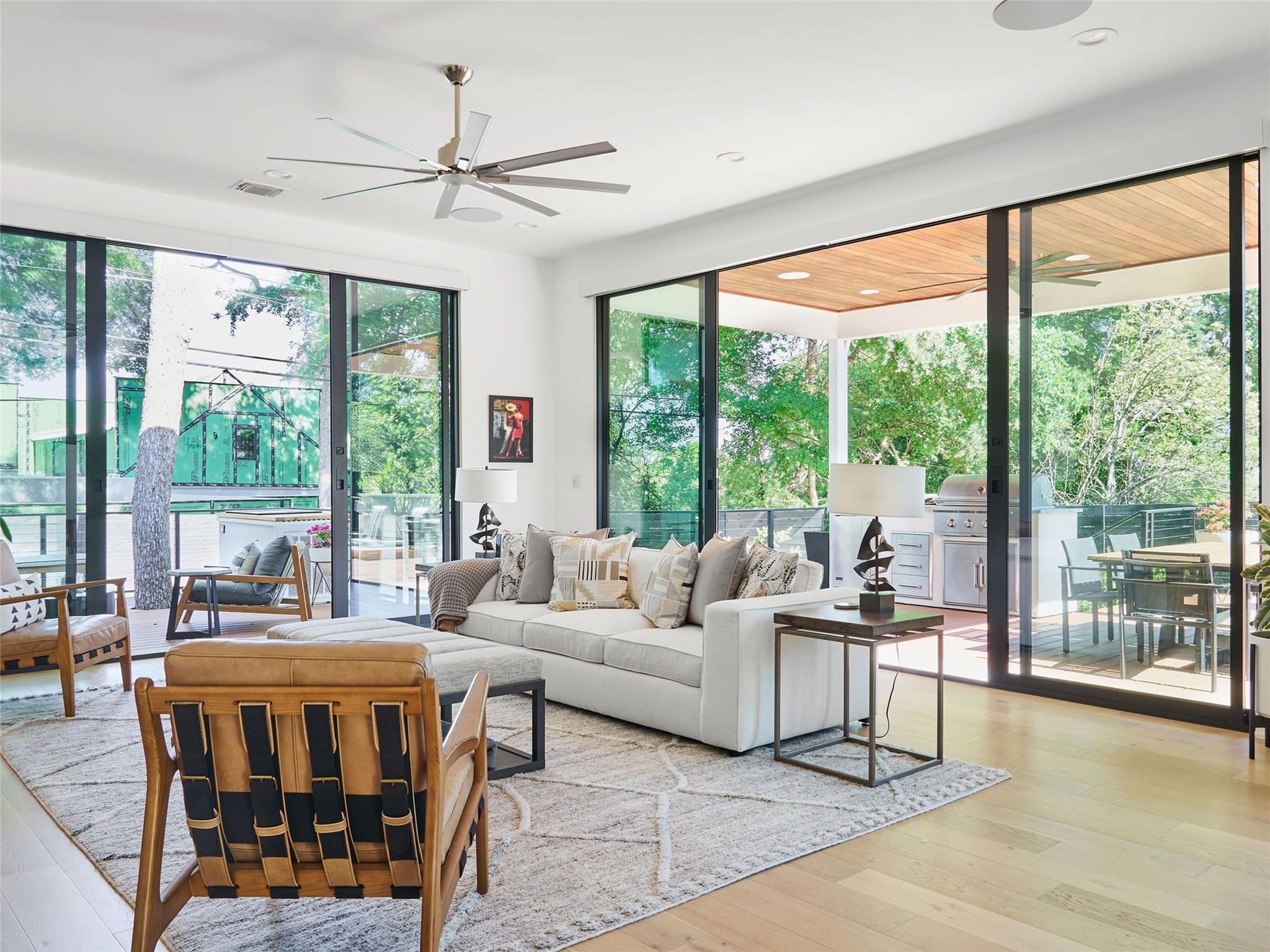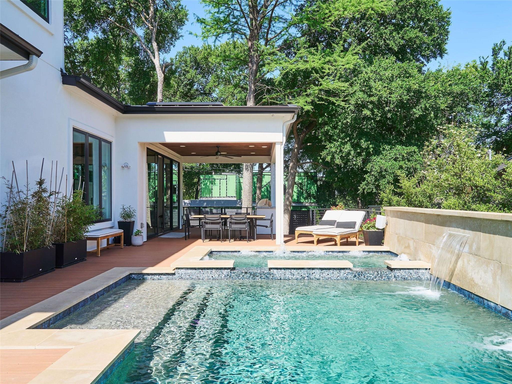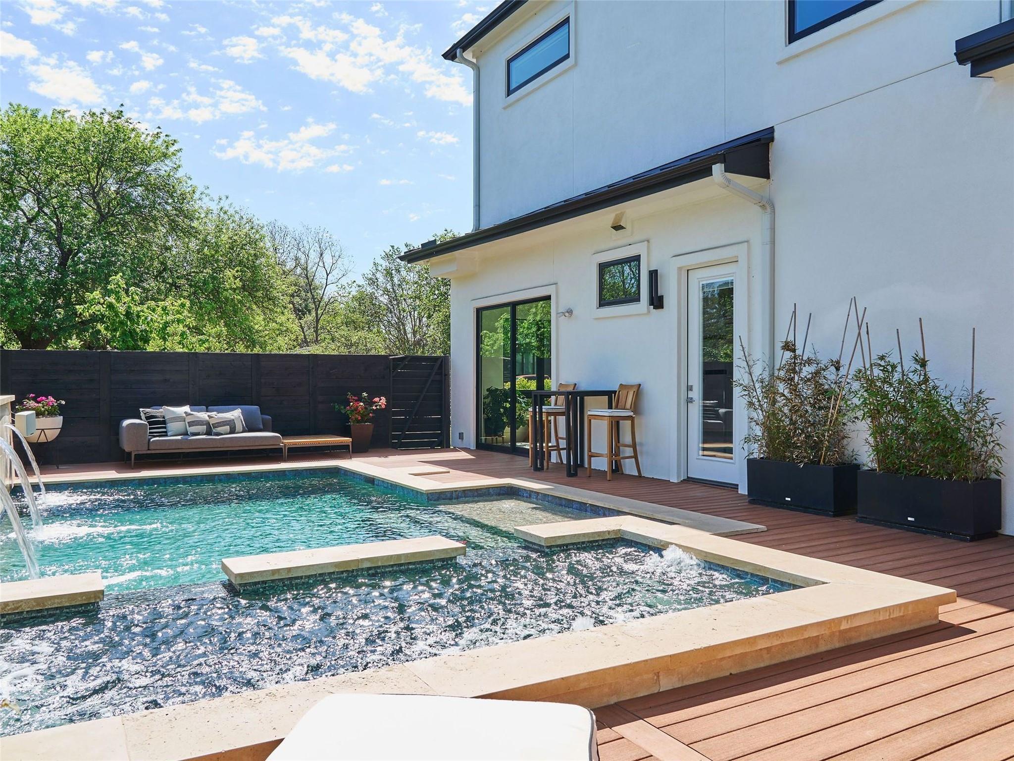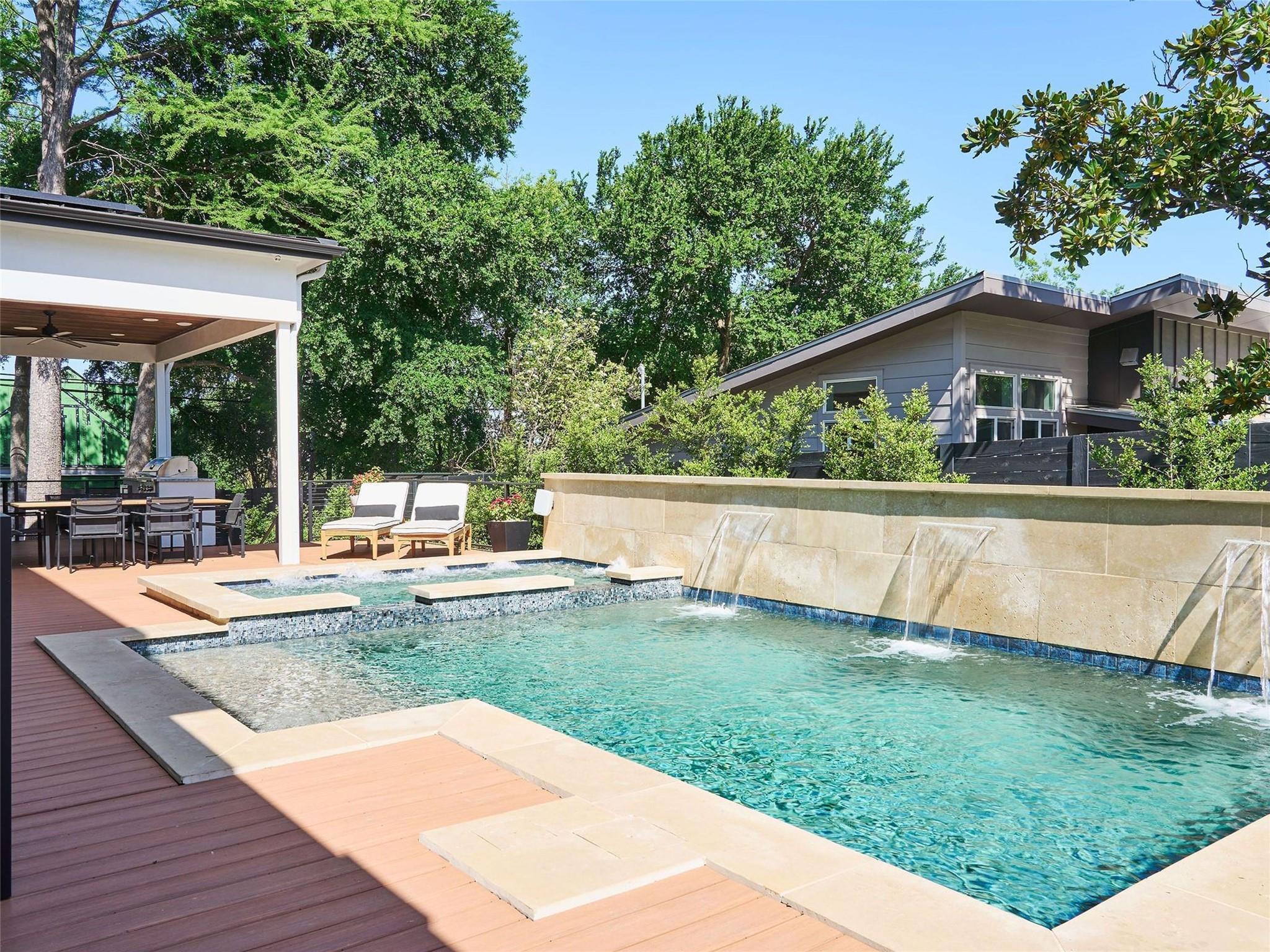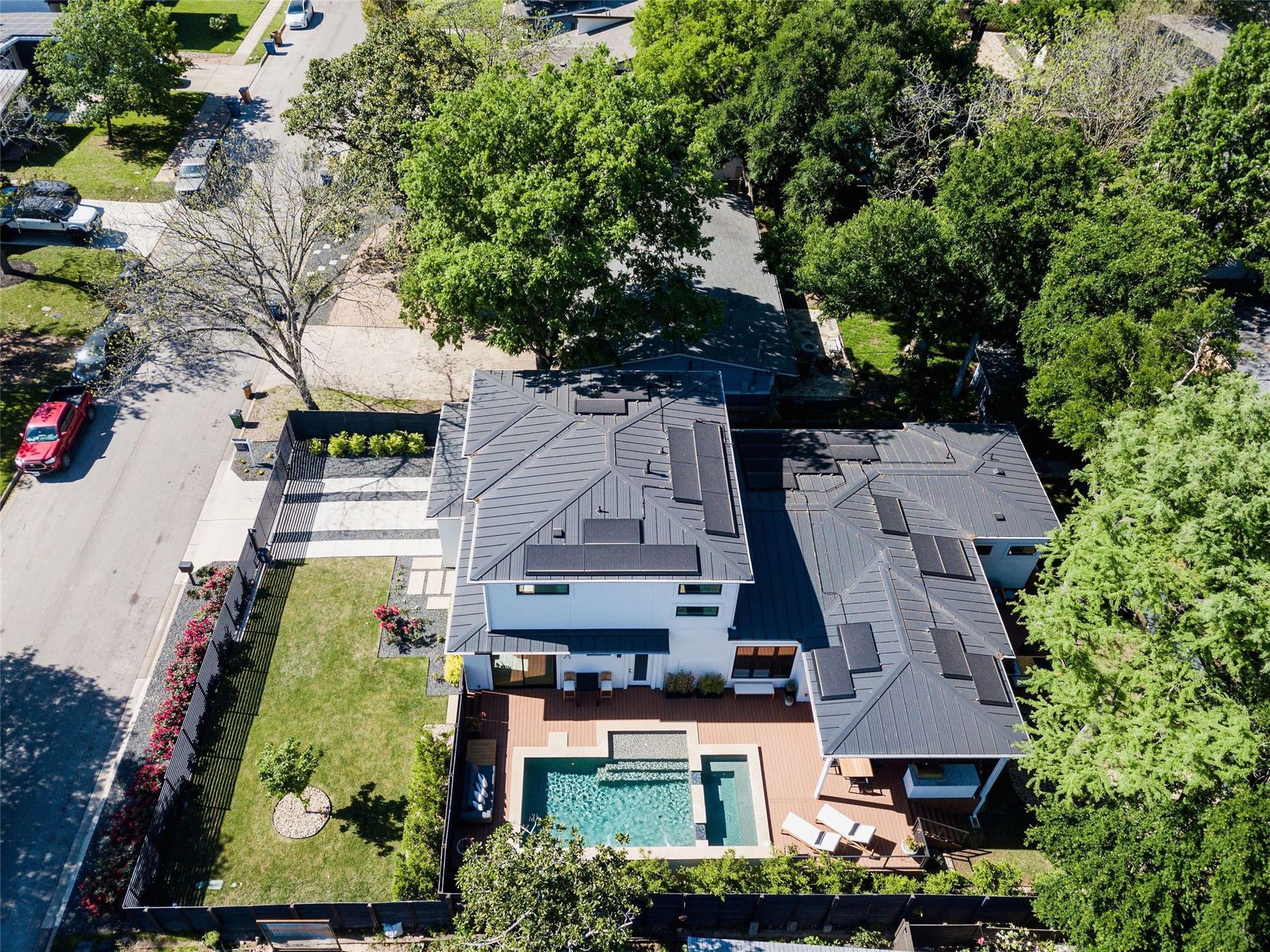 Welcome to 2321 Westoak Drive, an exquisite masterpiece of modern luxury nestled in the prestigious Barton Hills neighborhood of Austin, Texas. Built by the esteemed Paradisa Homes, this architectural marvel spans 3212 square feet of meticulously crafted living space, offering a harmonious blend of sophistication, comfort, and convenience. Situated on a generous .22-acre lot, the property is fully fenced and gated, providing privacy and security for you and your loved ones. The heart of this home lies in its gourmet kitchen, where commercial-grade Thermador appliances, including a gas range and double ovens, await the culinary enthusiast. A 75-bottle wine fridge adds a touch of luxury, perfect for entertaining guests in style. Adjacent to the kitchen and living room you can seamlessly access your own private outdoor oasis, complete with a 12-person hot tub, heated/chilled pool, an outdoor kitchen with beverage fridge, and a built-in natural gas fire pit. Whether you're hosting lavish gatherings of 50-100 people or enjoying quiet evenings under the stars, this outdoor space is sure to impress. For emergencies and sustainability, Tesla solar panels and two Tesla Powerwall batteries are integrated into the home, providing critical backup power during storms and reduced monthly utility expenses. Inside, an integrated reverse osmosis water filtration system with remineralization provides crystal clear and safe drinking water for you and your family. This home is not just about luxury; it's also about connectivity, convenience and peace of mind. The fully-equipped "smart-home" system installed in the home includes wired automatic window shades, a studio-grade in-ceiling surround sound system throughout both the interior and exterior living spaces, high-power wifi and networking hardware, and a comprehensive security system complete with cameras, glass-break and motion sensors, as well as window and door sensors.