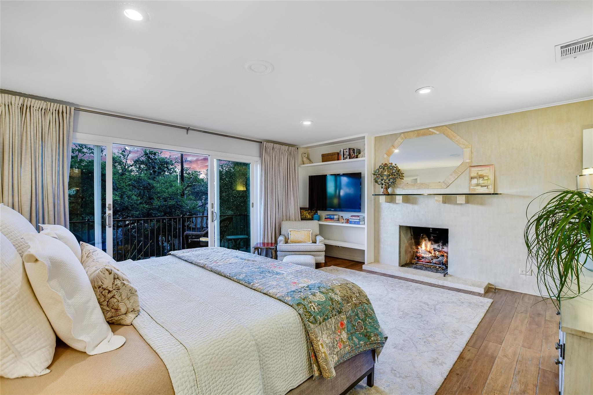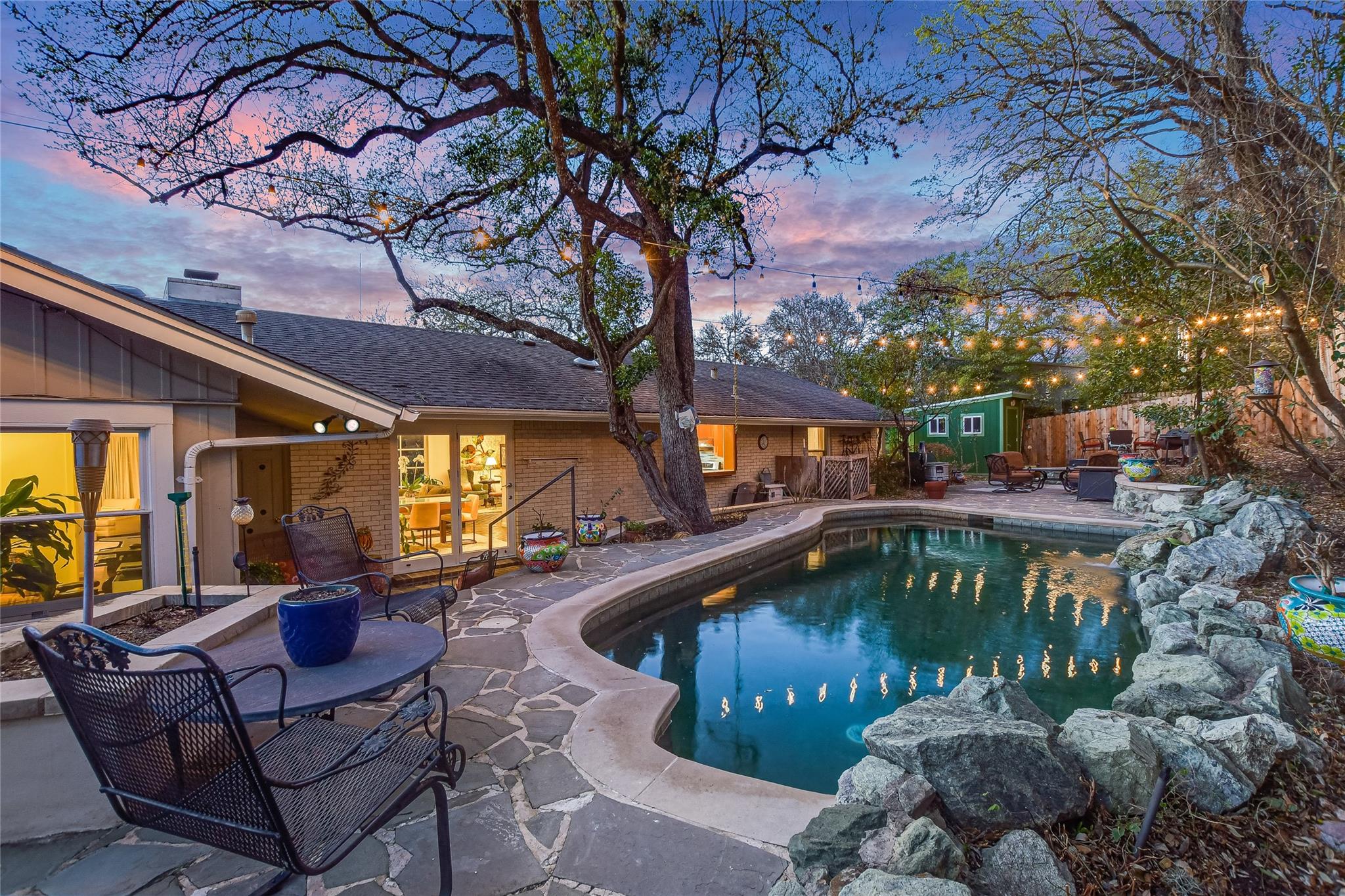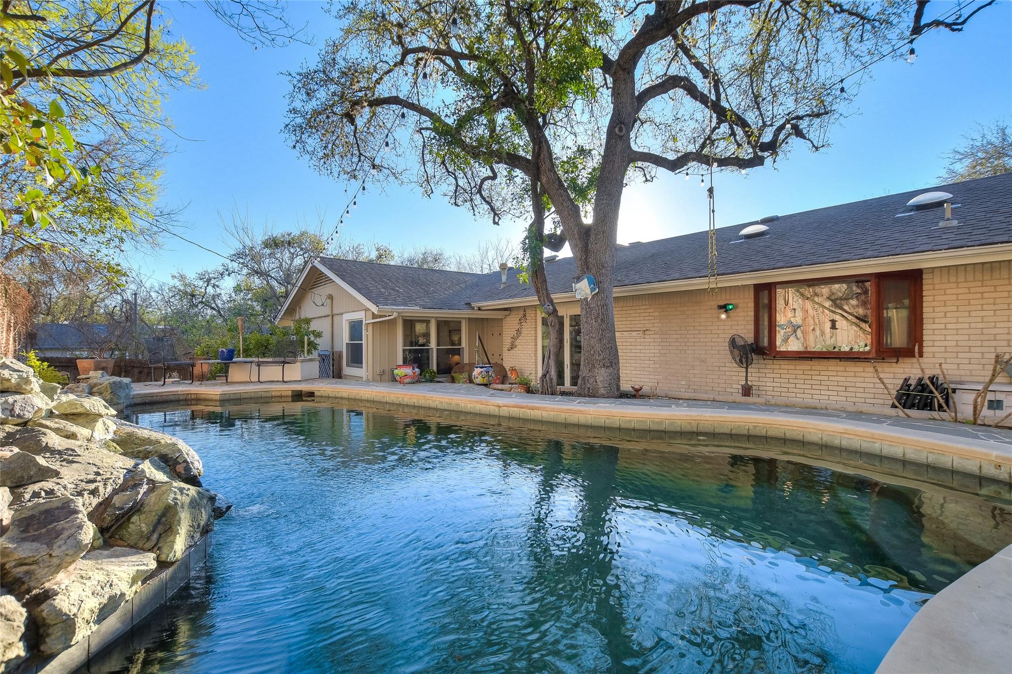 Immerse Yourself in the Enchantment of Scenic Drive Unwind in a stunning one-story residence nestled on the iconic Scenic Drive in Tarrytown, Austin, Texas. Embrace the allure of this highly sought-after location, where peak-a-boo views of Lake Austin add a touch of magic to your everyday life. Step inside and discover an enchanting living room bathed in natural light. A beamed ceiling adds a touch of rustic charm, while built-in shelves flanking the fireplace provide a cozy and inviting atmosphere. Imagine yourself relaxing by the fire, gazing out through the panoramic wall of windows that opens onto your private outdoor oasis. The heart of the home is the spacious, beautifully updated kitchen. Designed for seamless flow and connection, it seamlessly integrates with the living and dining areas, creating a perfect space for entertaining and family gatherings. Ample storage ensures a clutter-free environment, allowing you to focus on the moments that matter most. Retreat to the tranquility of your primary bedroom, a haven of peace and luxury. A crackling fireplace and a cozy sitting area invite relaxation, while captivating views of Lake Austin create a truly unforgettable backdrop. Unwind in the luxurious soaking tub, letting the stress of the day melt away. The versatile fourth bedroom offers ultimate flexibility. Currently serving as a home office, it can easily be transformed into a guest room or additional living space, catering to your evolving needs. Located conveniently next to the upstairs game room, it provides the perfect retreat for children or visiting guests. Step outside and immerse yourself in your own private oasis. The sparkling pool beckons you to cool off on hot summer days, while the serene ambience invites relaxation and rejuvenation.