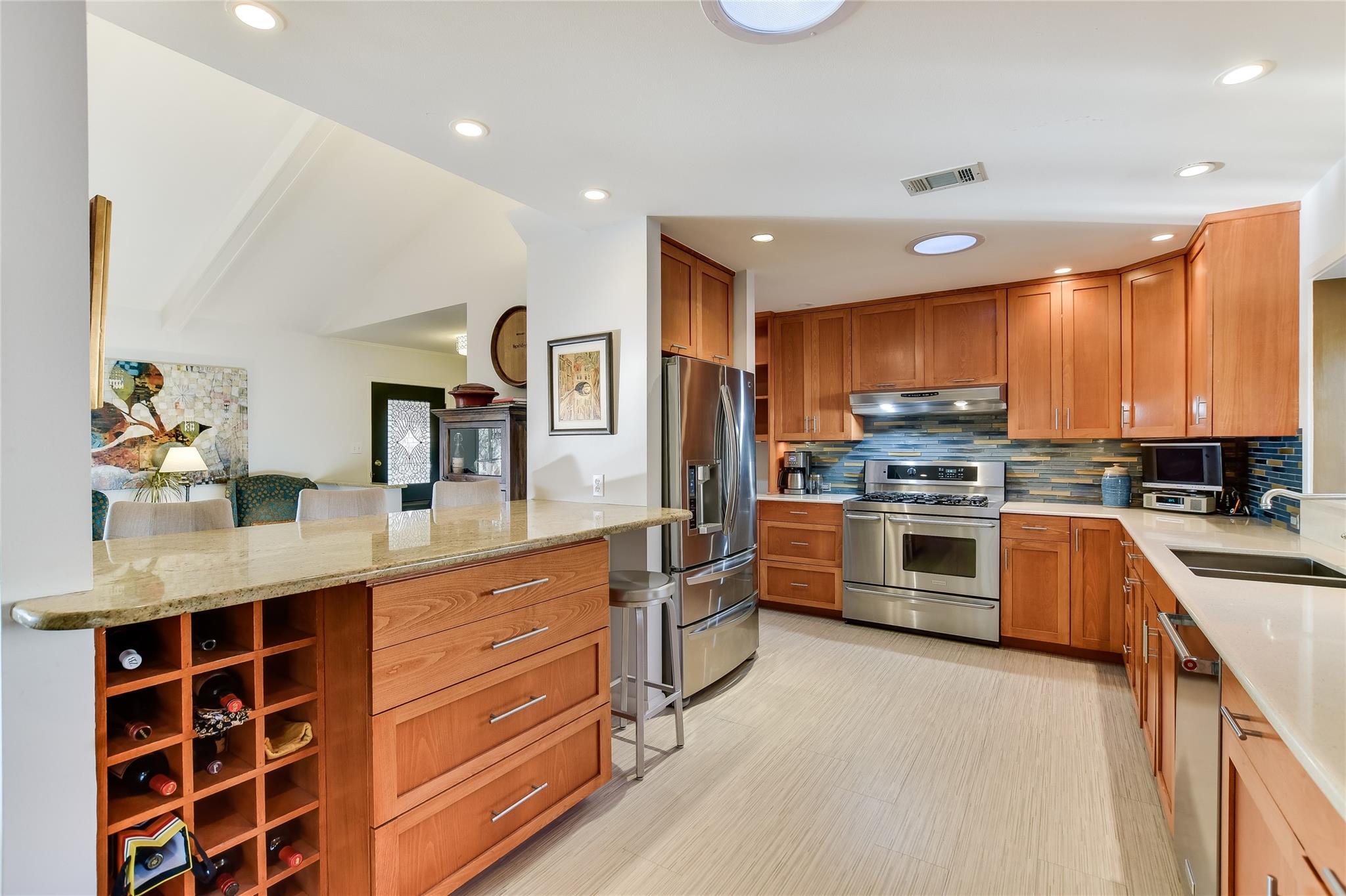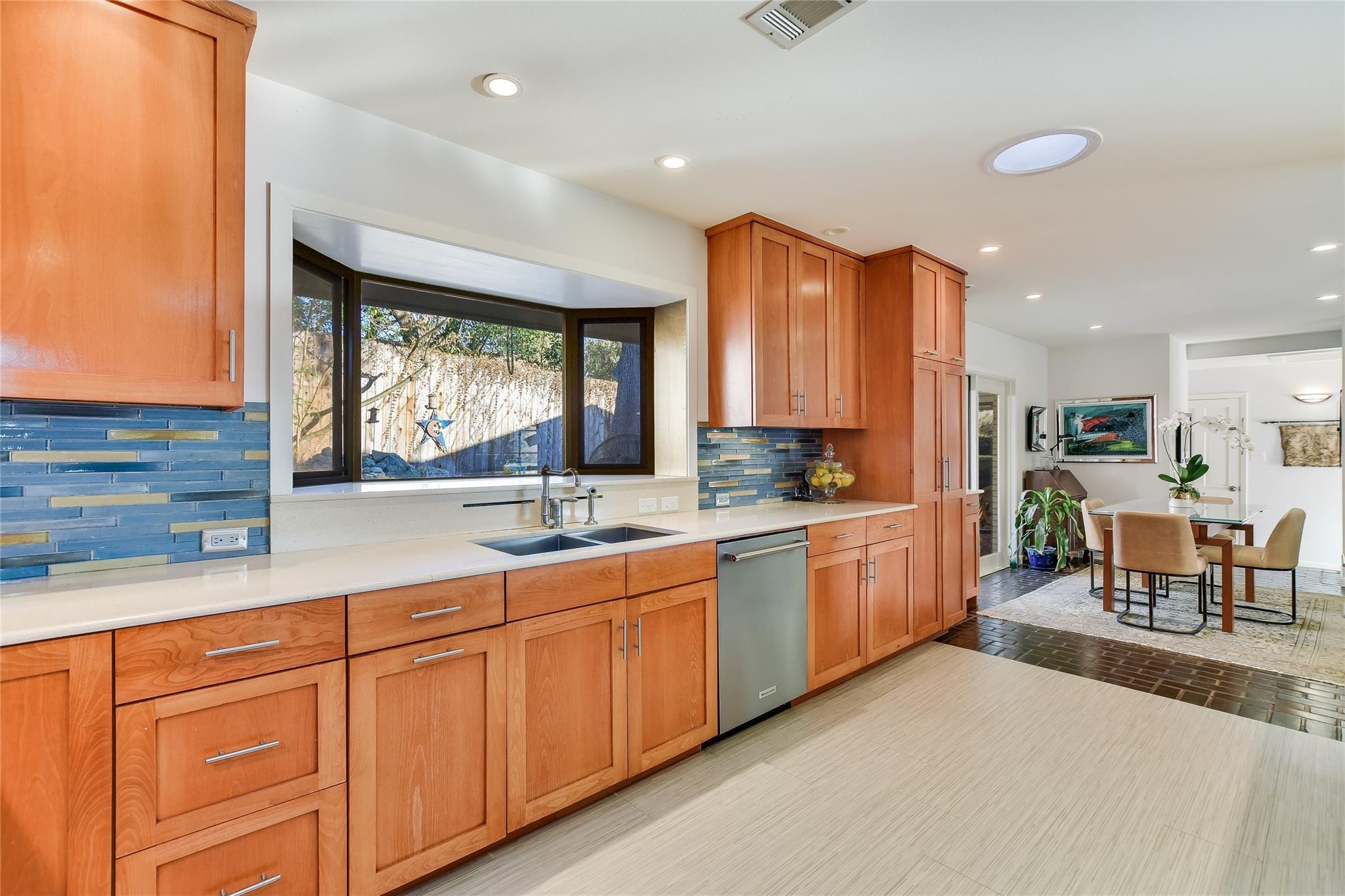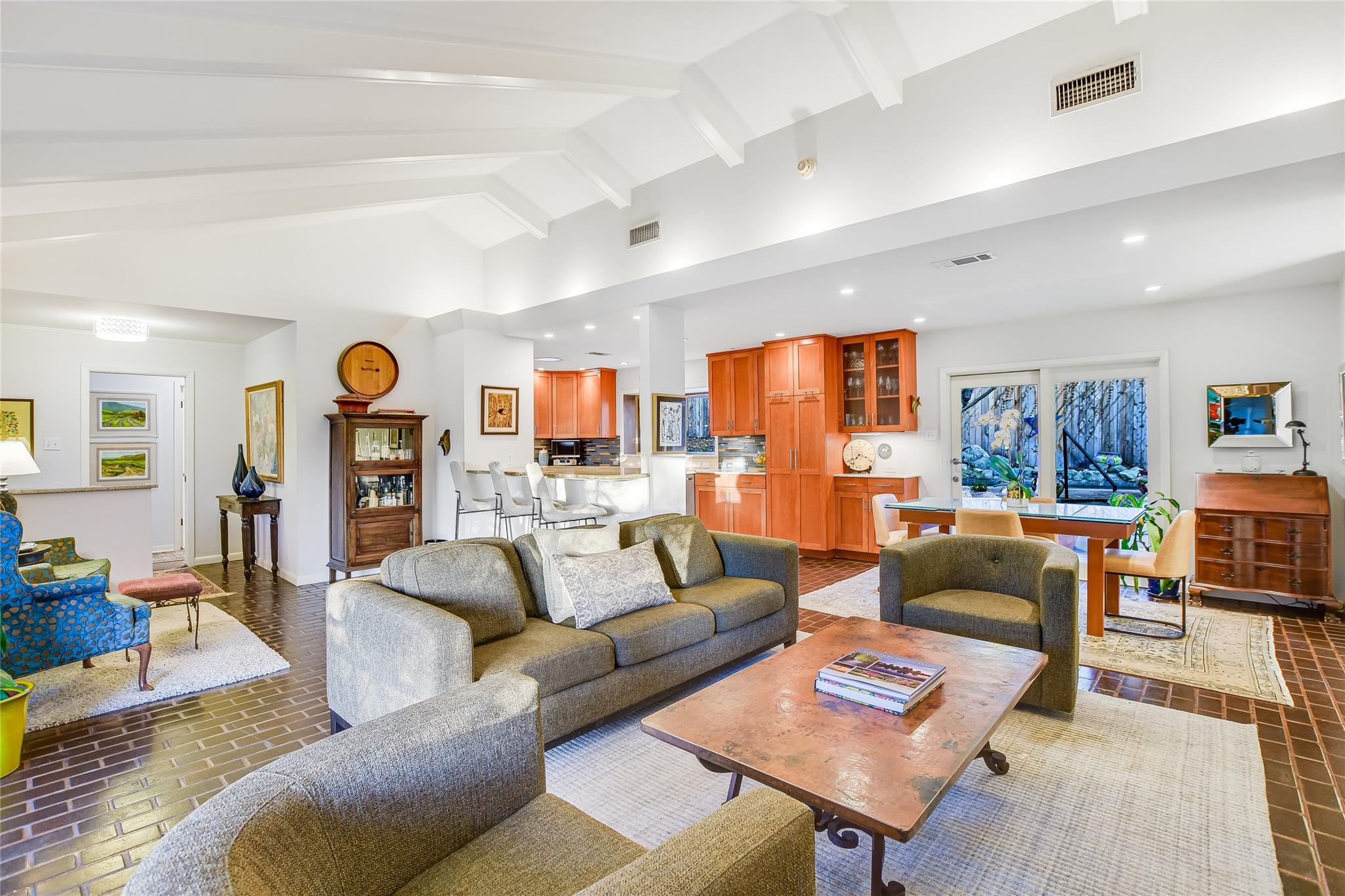 Immerse Yourself in the Enchantment of Scenic Drive Unwind in a stunning one-story residence nestled on the iconic Scenic Drive in Tarrytown, Austin, Texas. Embrace the allure of this highly sought-after location, where peak-a-boo views of Lake Austin add a touch of magic to your everyday life. Step inside and discover an enchanting living room bathed in natural light. A beamed ceiling adds a touch of rustic charm, while built-in shelves flanking the fireplace provide a cozy and inviting atmosphere. Imagine yourself relaxing by the fire, gazing out through the panoramic wall of windows that opens onto your private outdoor oasis. The heart of the home is the spacious, beautifully updated kitchen. Designed for seamless flow and connection, it seamlessly integrates with the living and dining areas, creating a perfect space for entertaining and family gatherings. Ample storage ensures a clutter-free environment, allowing you to focus on the moments that matter most. Retreat to the tranquility of your primary bedroom, a haven of peace and luxury. A crackling fireplace and a cozy sitting area invite relaxation, while captivating views of Lake Austin create a truly unforgettable backdrop. Unwind in the luxurious soaking tub, letting the stress of the day melt away. The versatile fourth bedroom offers ultimate flexibility. Currently serving as a home office, it can easily be transformed into a guest room or additional living space, catering to your evolving needs. Located conveniently next to the upstairs game room, it provides the perfect retreat for children or visiting guests. Step outside and immerse yourself in your own private oasis. The sparkling pool beckons you to cool off on hot summer days, while the serene ambience invites relaxation and rejuvenation.