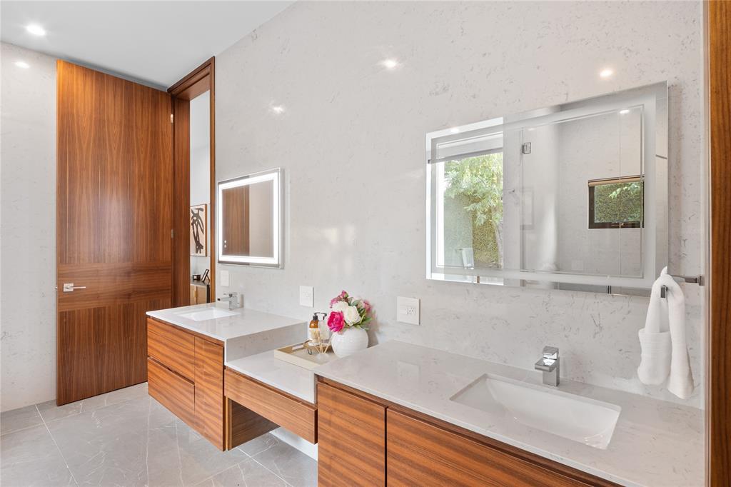 Welcome to this immaculate and carefully designed residence crafted by renowned architect Bernando Pozas. This 3,900 square-foot, two story home boasts five bedrooms, five full bathrooms, two living areas, a home office, three balconies, in-ground pool/spa, and countless designer features. Walk into your foyer and notice the stunning floors and luxury finishes throughout. Floor to ceiling windows surround the floorplan, each with automatic shades. The Chef's Kitchen features top of the line stainless steel appliances, butler pantry, 20" center island, and a private wine pantry. The Master Suite is ideally situated away from all guest rooms and has a personal patio space that overlooks the pool. The Master Spa-Style Bath holds a dual vanity, soaking tub, step-in shower, and walk-in closet. Make your way up the floating staircase to your formal living space, upper level balcony, and all guest bedrooms. Note that each bedroom conveniently hosts an ensuite bath! Make your way to the backyard with thoughtful landscaping and towering oaks that bring ample shade. Entertain on the patio while you prepare meals at the kitchenette, take a dip in the pool, or relax and unwind in the jacuzzi. Located in the coveted 78746 zip code, you are in the heart of Westlake and Eanes ISD while being within walking distance to Cedar Creek Elementary. Exclusive living in ATX awaits you.