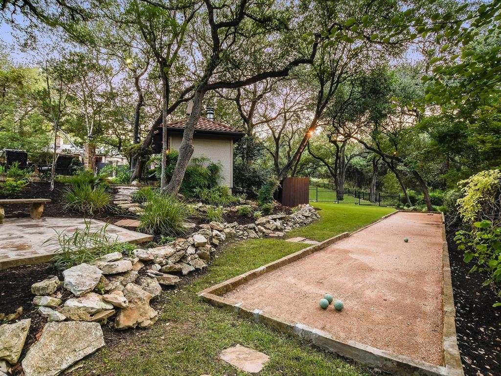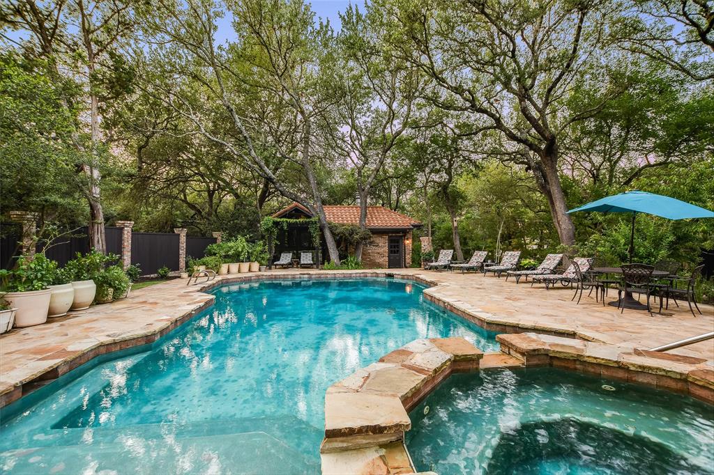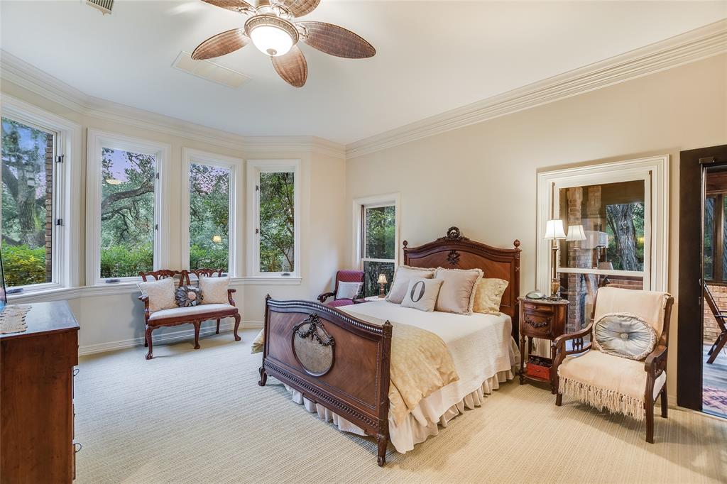 Imposing property reminiscent of a European estate. Situated on .62 professionally landscaped acres and located at the end of a quiet cul-de-sac, this custom built home exudes quality and style. The house includes 5 bedrooms, 5 bathrooms, commercial grade kitchen, 3 living areas (den off kitchen, formal living, game room), custom designed library with hand painted baroque style ceiling, media/billiards room, and 4 season room. Top this off with a below grade wine cellar with a 4,000 bottle capacity, dining table for 10 and featuring a state of the art remote controlled cooling system. Primary wing on second floor. Guest bedroom and bathroom on first floor. The outdoor area includes an oversized, 9ft deep pool and spa, screened pool house, oversized Echelon Fire Magic outdoor grill, and an regulation size bocce ball court, all surrounded by legacy oak trees, and hundreds of perennials. Pool bathroom accessed from outside and kitchen area. The West Rim HOA owns a gated park on Lake Austin within walking distance which includes a 19 slip marina, tennis and basketball court, playground, gazebo with outdoor grill and a day dock. Also for lease for $18,0000/month. Call agent for details.