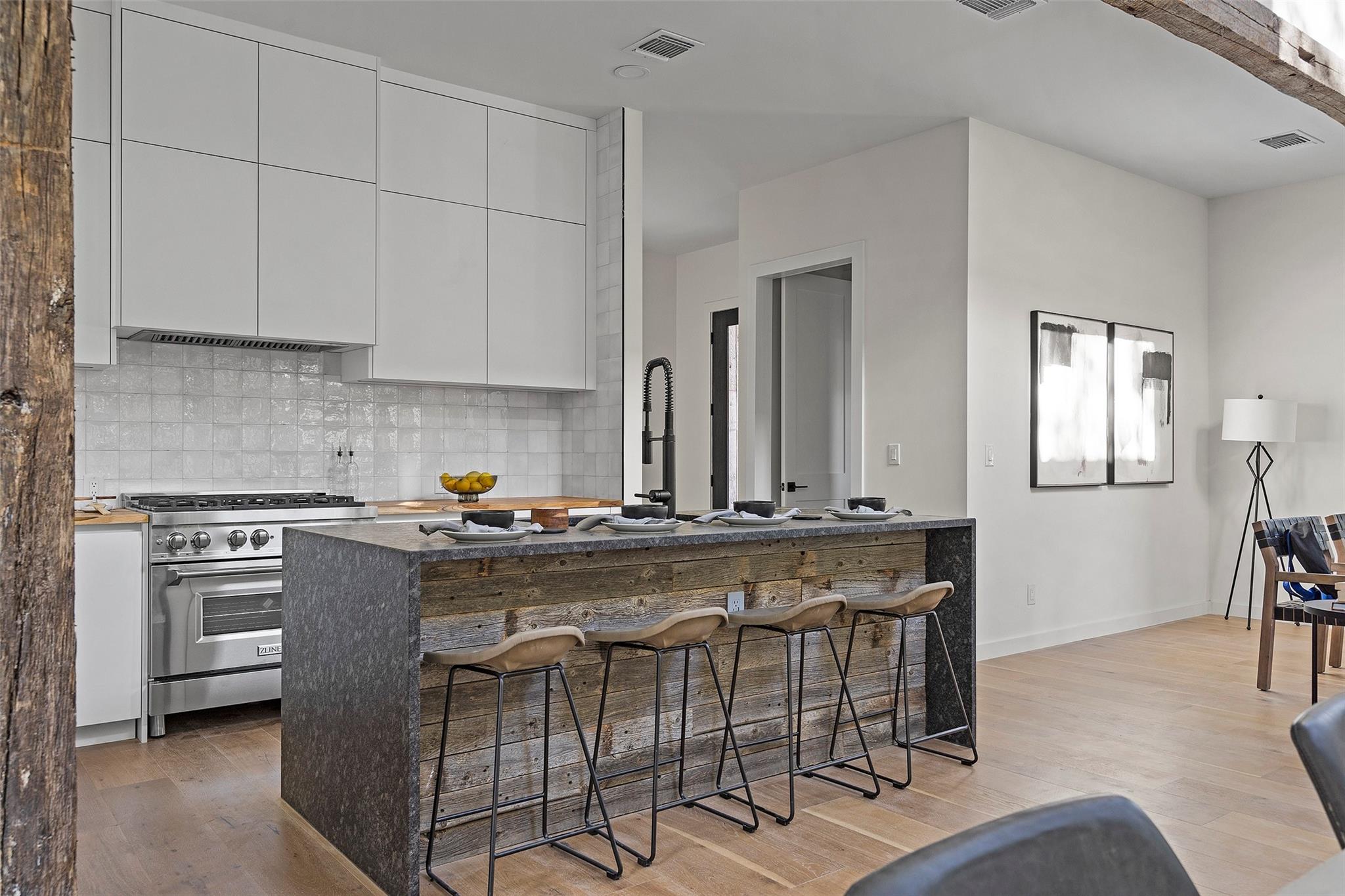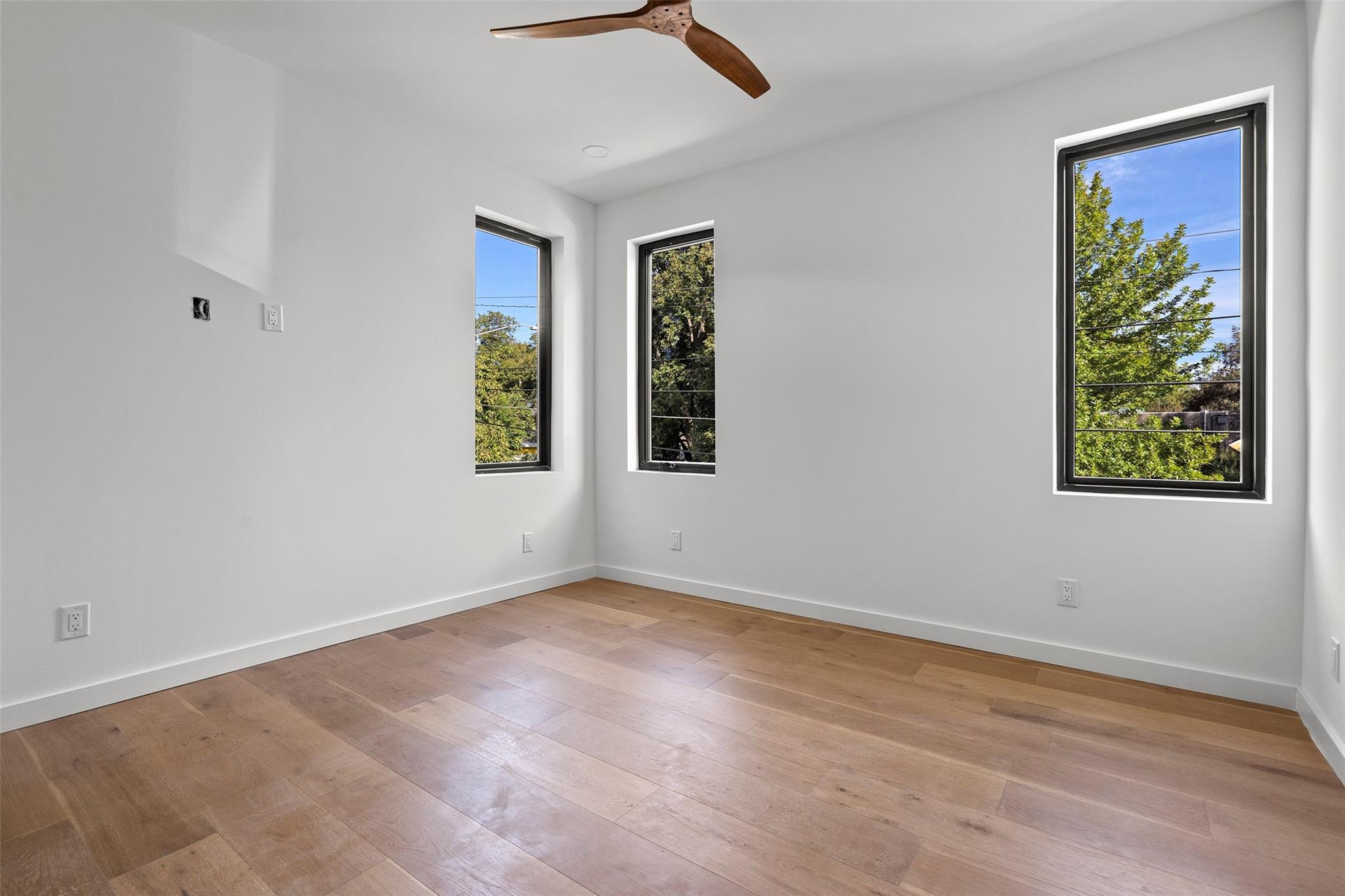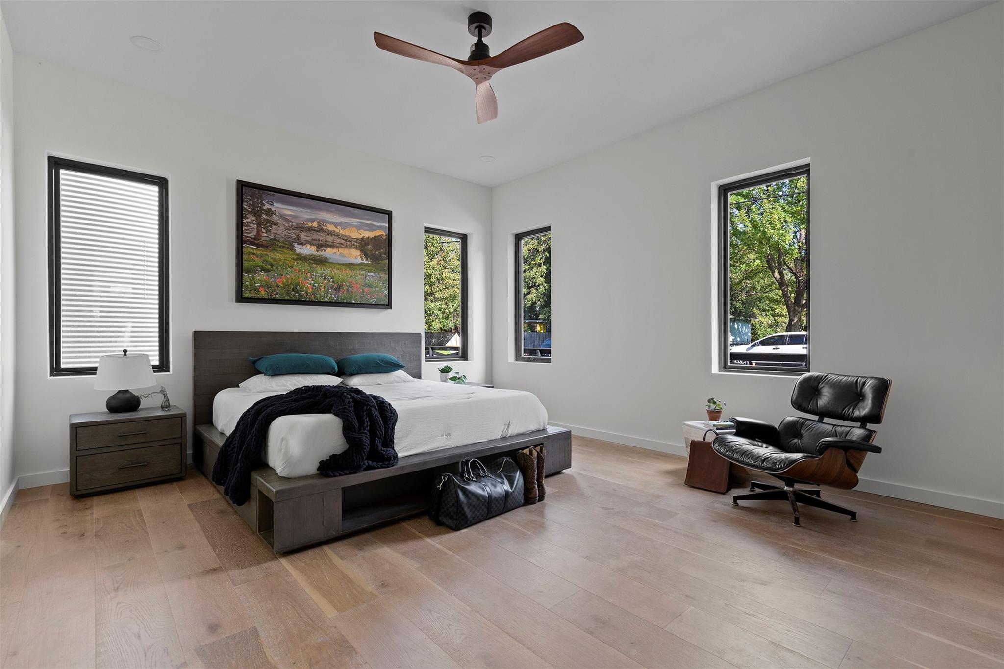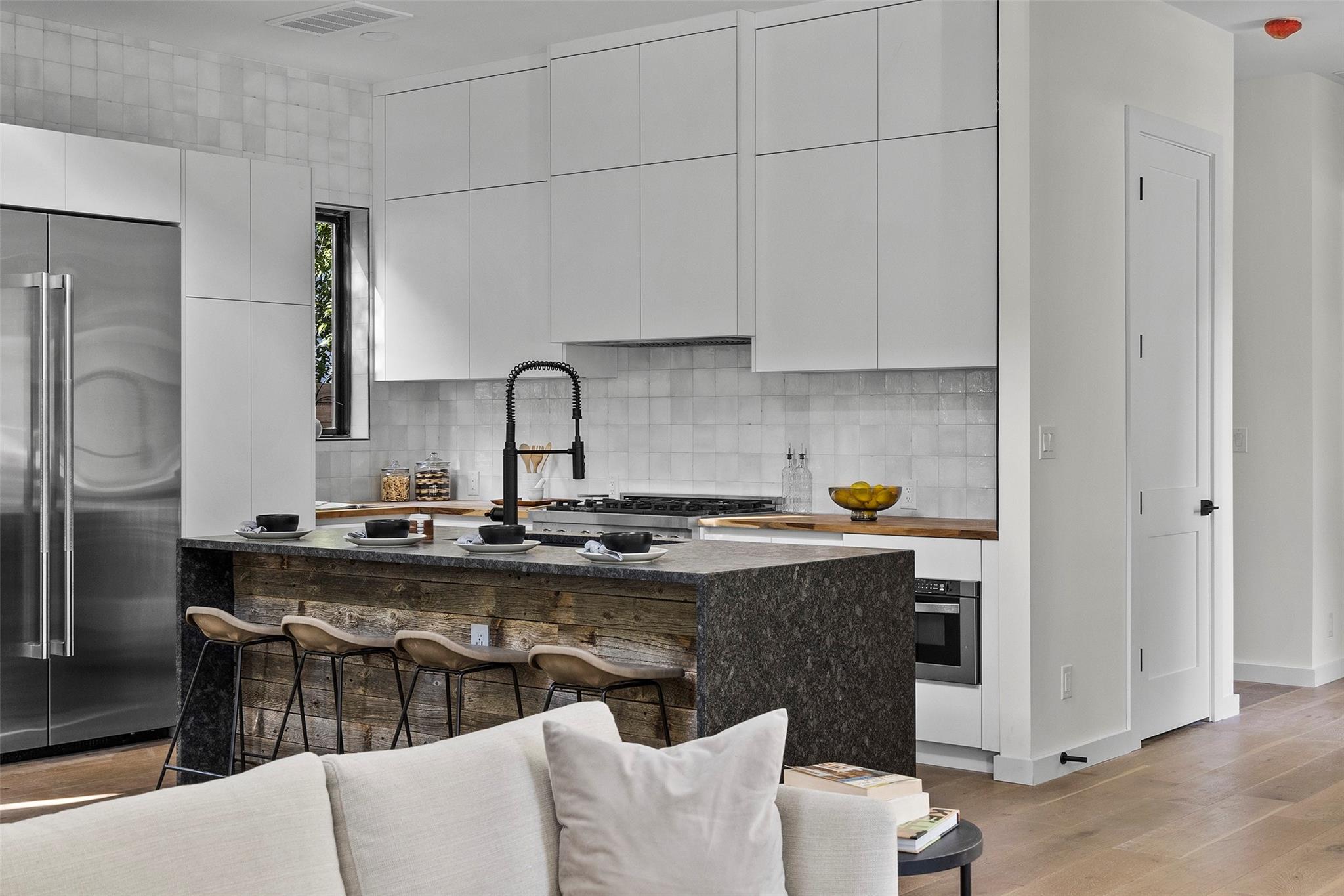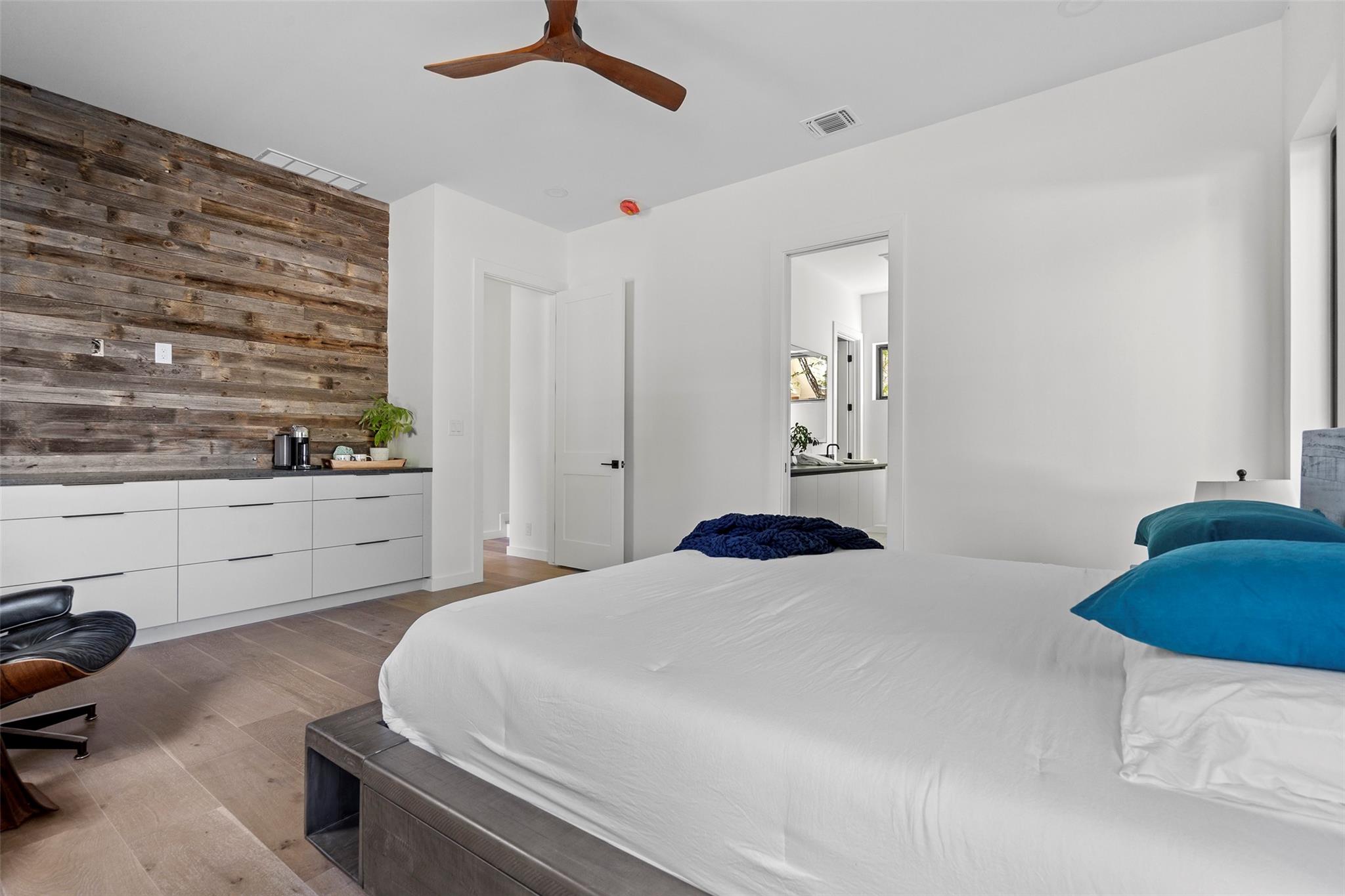 Welcome to the East Austin farm house, and silo! This gorgeous and unique property is situated on just over 1/5 of an acre, and has been designed to create a Texas ranch exterior. The main house is almost 3,100 sq ft and is sided with reclaimed barn wood siding that is believed to be almost a century old. Inside, both the barn and silo are luxury homes with high-end design, finishes and fixtures. The main level in the barn house boasts a primary bedroom with a luxurious spa like marble bathroom. The bathroom has a 9' long floating dual vanity and wet room with an oversized soaking tub. The primary suite is finished with a custom designed closet and convenient in-closet stackable washer and dryer. The remainder of the main level includes a Chef's kitchen, huge screened in porch, living and dining rooms. The kitchen has a stunning JennAir refrigerator, 6-burner stainless gas range, and eat-in island with leathered granite waterfall counter tops. The rest of the kitchen has butcher block counter tops, a cream Zelige tile backsplash and an enormous 25' reclaimed support beam which add to the rustic and modern aesthetic. On the second story, you will find a loft space overlooking the great room and dining area, along with three large bedrooms, each with an en suite bathroom. The third level offers a media room that is pre-wired & a bonus space with full bathroom. Bring your imagination for the bonus space, it could make a great play space, studio, library or more. The silo on the property is the guest house/casita, and is an awesome space which spans almost 700 square feet. Current design has the space utilized as a home gym with a galley kitchen, and the upstairs as a large home office. It is versatile extra space that can work around your life, and can also easily be redesigned as a fully functioning standalone apartment or AirBnb. Come embrace the vibrant East Austin lifestyle in this thoughtfully designed slice of country, in the city.