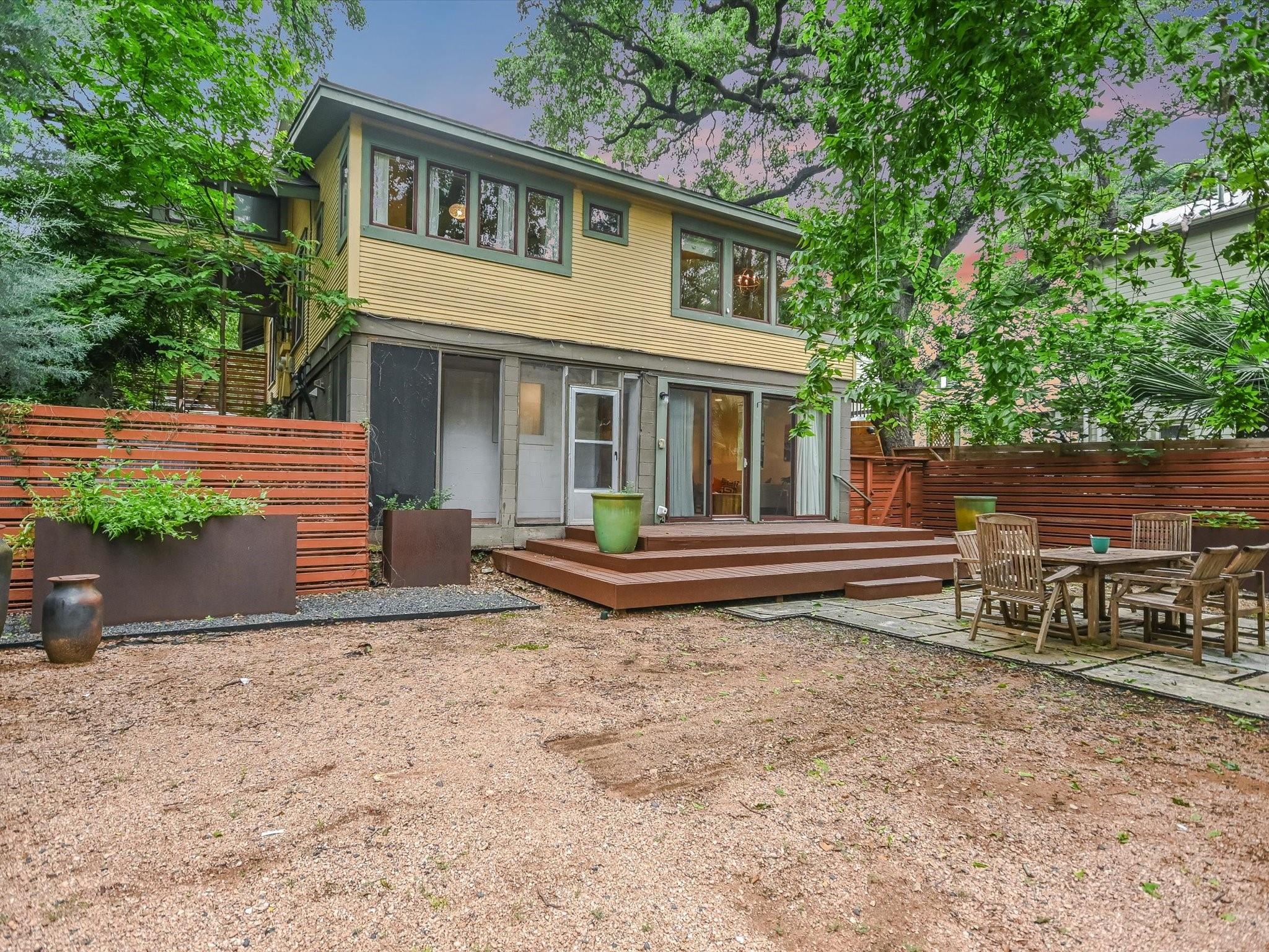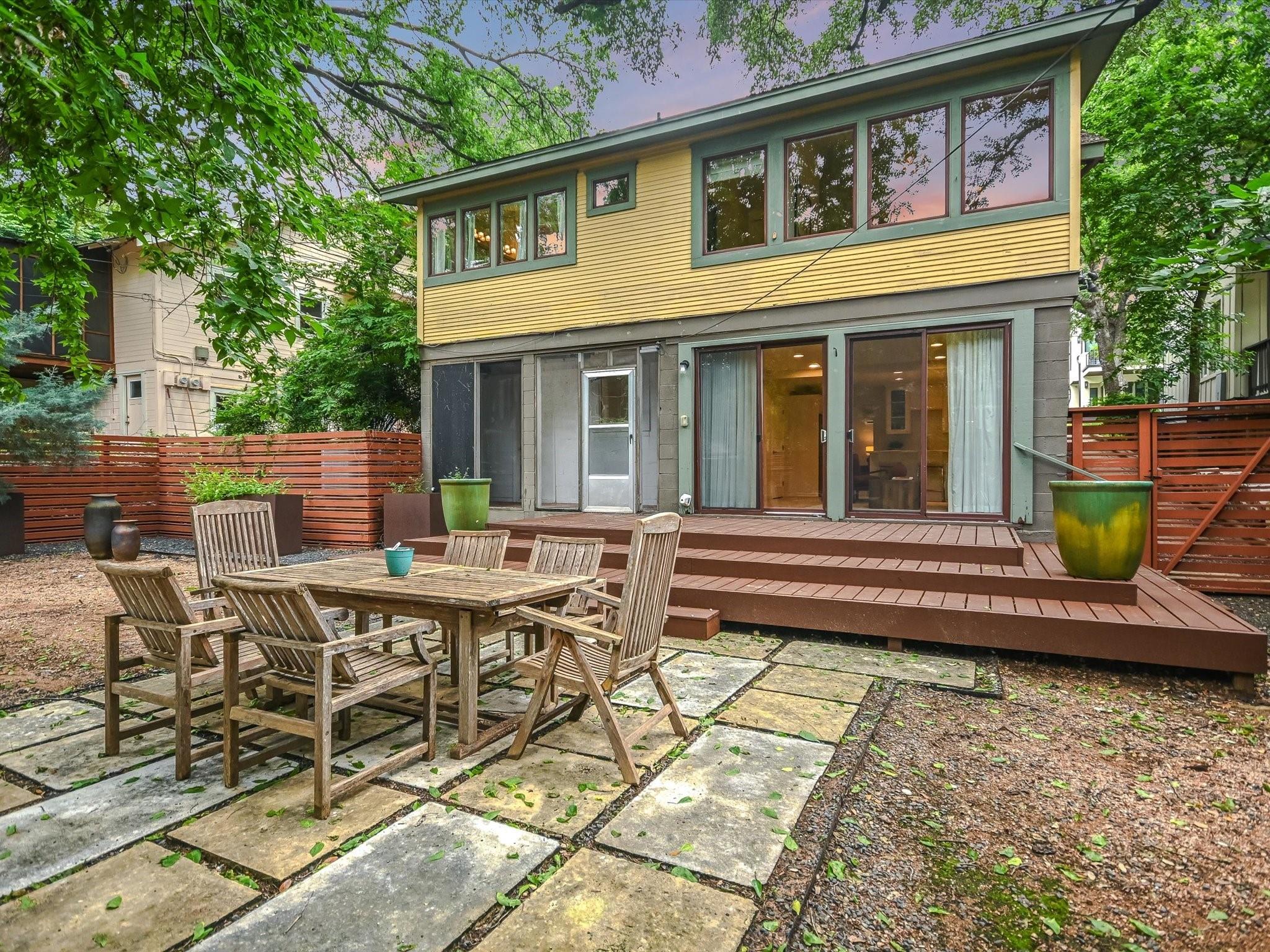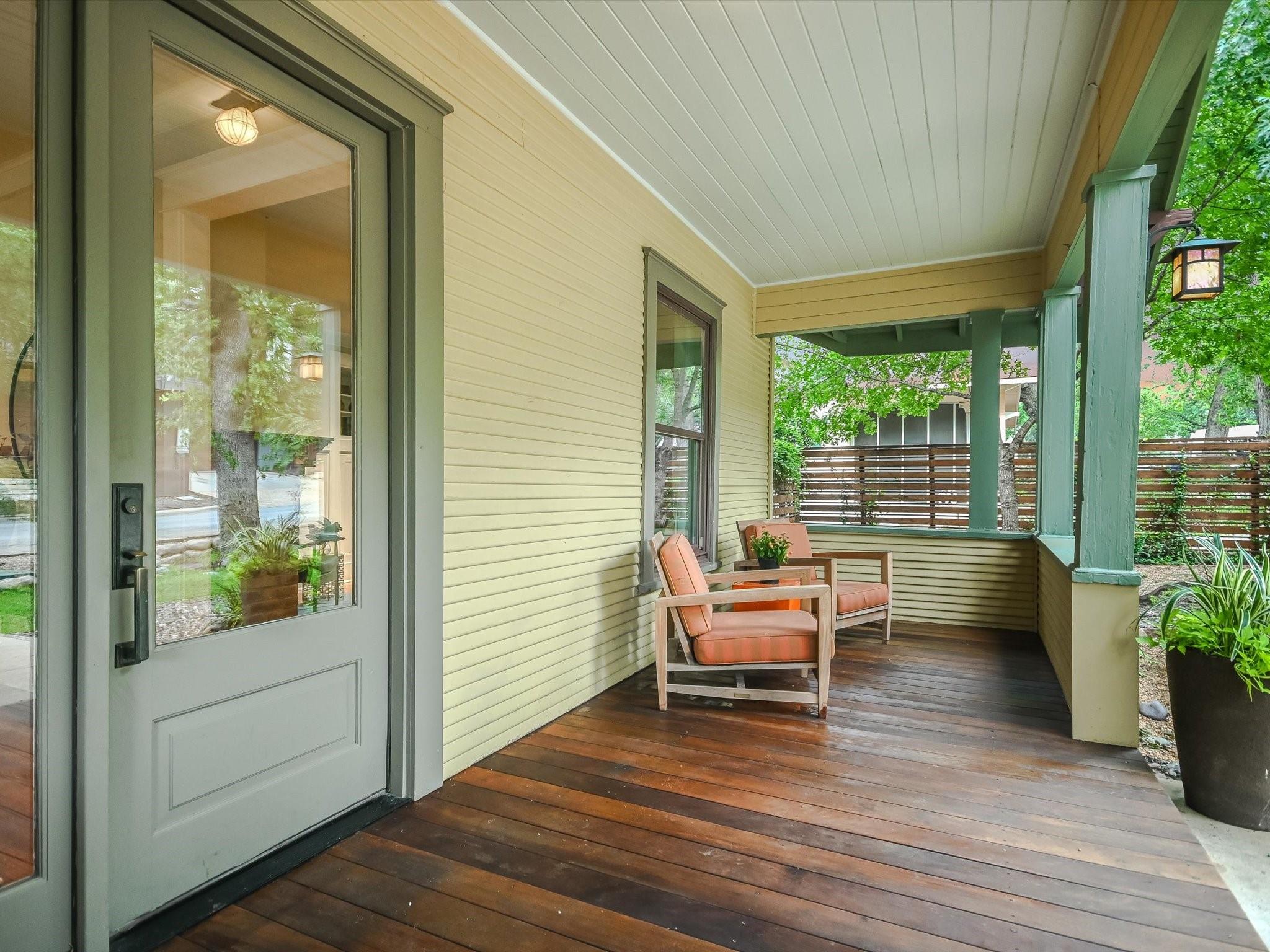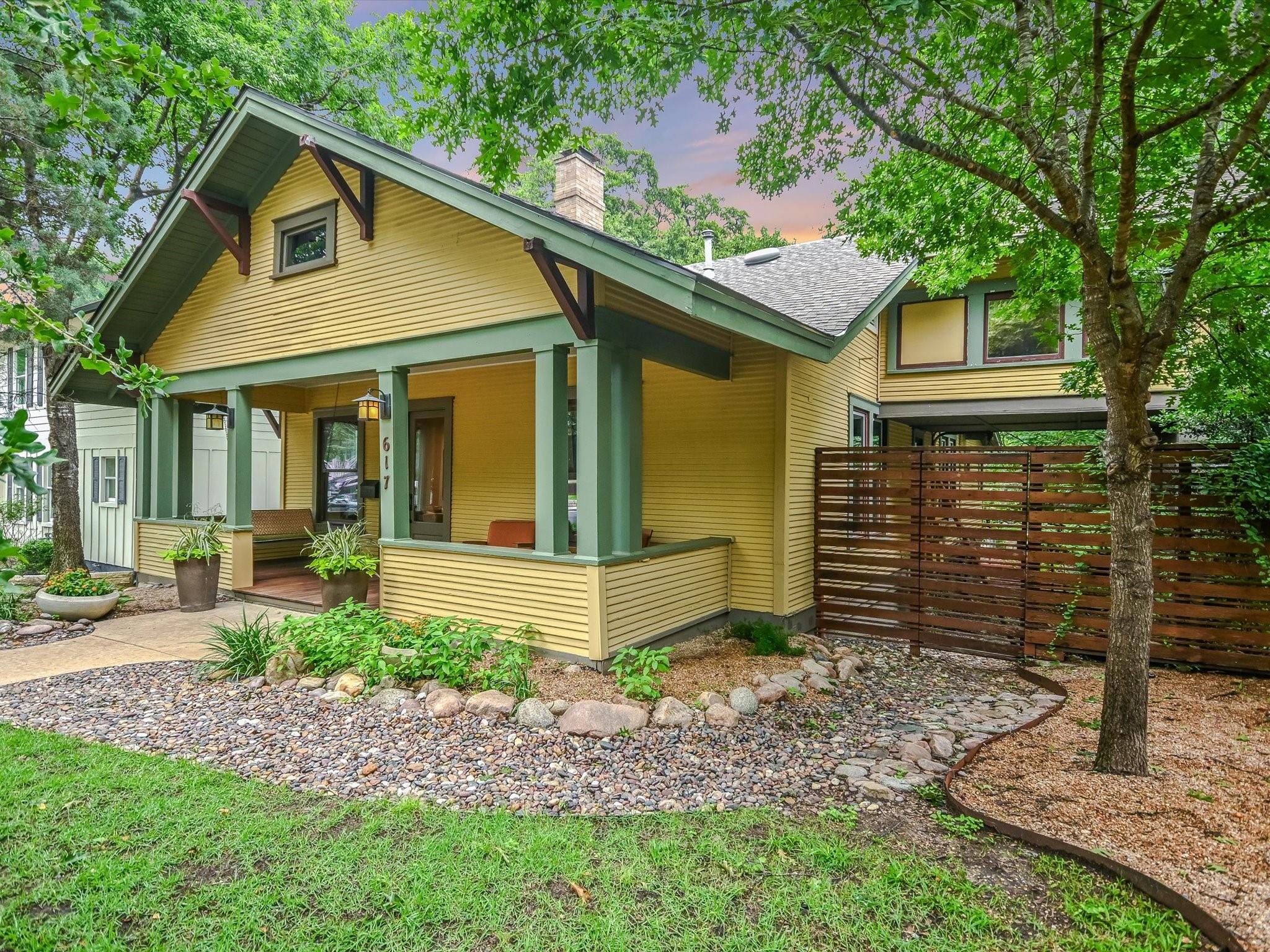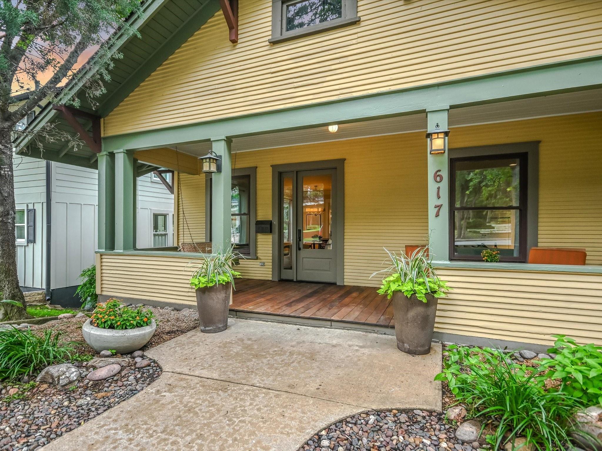 Sited on a spacious lot in charming Clarksville, this 1930 Craftsman captures the essence of period authenticity while offering modern amenities for comfortable living. Well maintained and thoughtfully updated throughout the years, 617 Oakland has architectural integrity without sacrificing convenience. A long gallery porch welcomes you into a highly functional interior with multiple light-filled living and dining spaces, original hardwood floors and craftsman millwork. An updated dine-in kitchen with granite counters and stainless steel appliances and a dedicated office space both offer bright treetop views. Also located on the main level is the primary suite complete with a fully renovated bathroom and walk-in closet. Rounding out the first floor spaces is a powder room and laundry facilities. The second level has two generously sized bedrooms that share a stylish, marble accented bathroom. In addition to the main residence, a modern one bedroom guest apartment (complete with kitchen and full bath) can be accessed through the backyard. This bright, modern space lends itself to any number of live/work or income generating scenarios. Exterior features include mature, low maintenance landscaping, full irrigation, ample storage and off-street parking. 617 Oakland has a true sense of place, and within walking distance you'll find a vibrant array of local shops, trendy restaurants and cultural attractions. Equal parts charm and convenience and anchored in a gem of a neighborhood, this special home is an ideal jumping off point to experience an authentic Austin lifestyle.