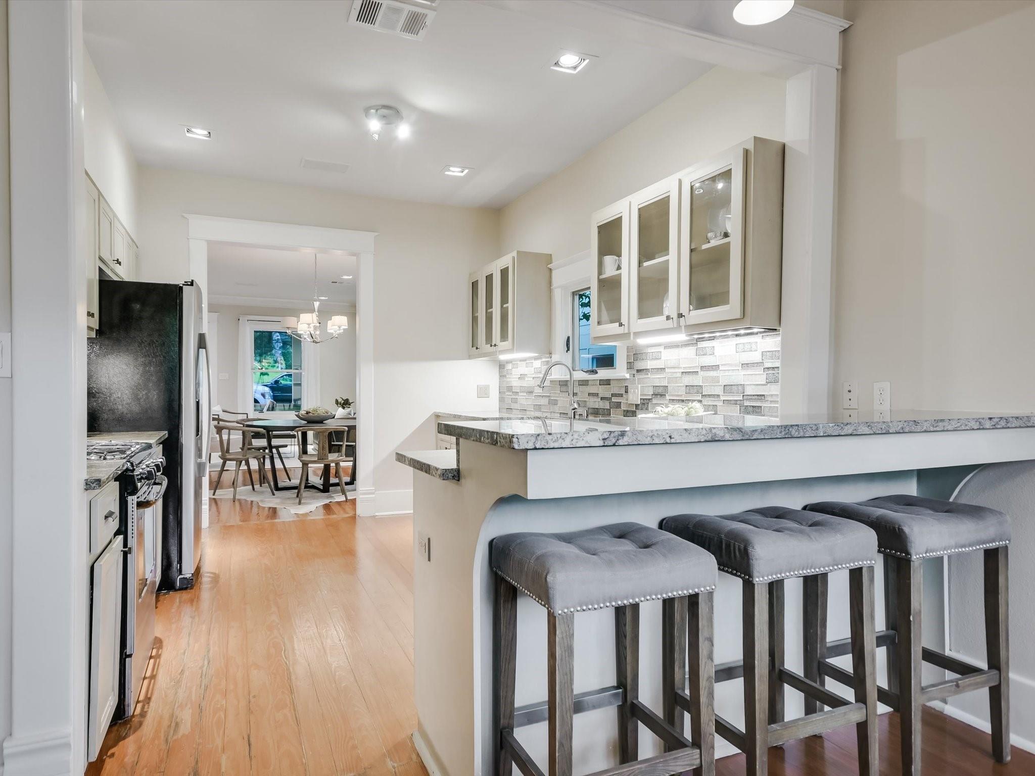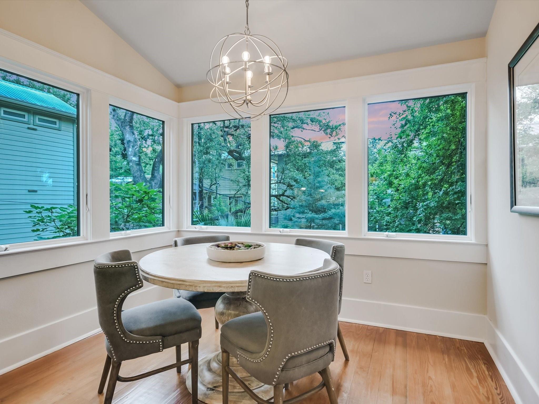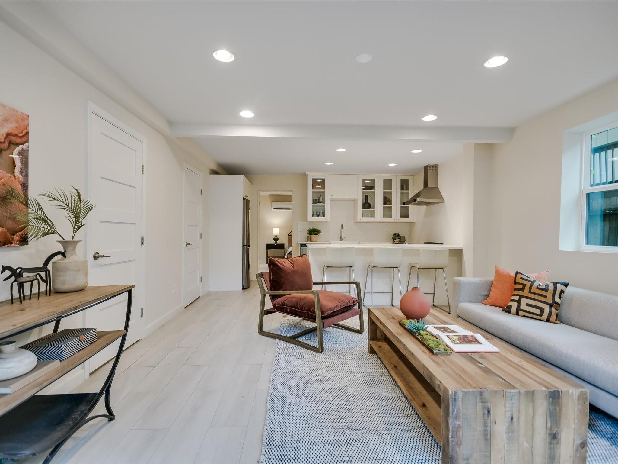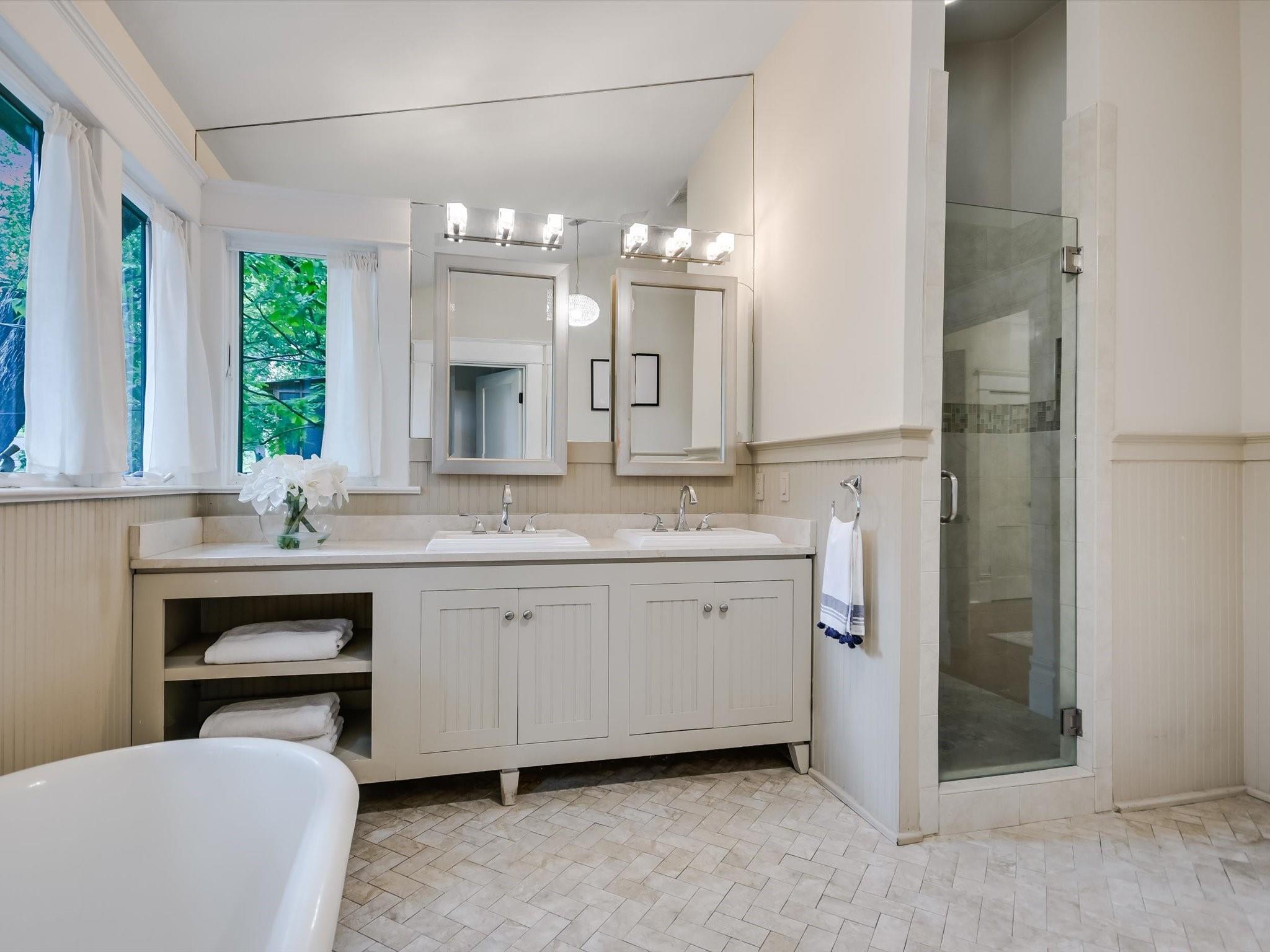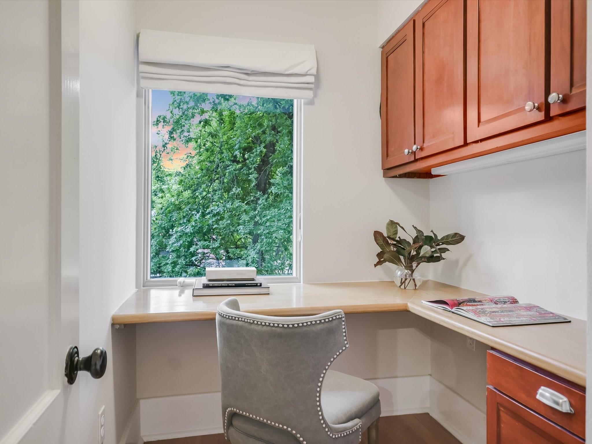 Sited on a spacious lot in charming Clarksville, this 1930 Craftsman captures the essence of period authenticity while offering modern amenities for comfortable living. Well maintained and thoughtfully updated throughout the years, 617 Oakland has architectural integrity without sacrificing convenience. A long gallery porch welcomes you into a highly functional interior with multiple light-filled living and dining spaces, original hardwood floors and craftsman millwork. An updated dine-in kitchen with granite counters and stainless steel appliances and a dedicated office space both offer bright treetop views. Also located on the main level is the primary suite complete with a fully renovated bathroom and walk-in closet. Rounding out the first floor spaces is a powder room and laundry facilities. The second level has two generously sized bedrooms that share a stylish, marble accented bathroom. In addition to the main residence, a modern one bedroom guest apartment (complete with kitchen and full bath) can be accessed through the backyard. This bright, modern space lends itself to any number of live/work or income generating scenarios. Exterior features include mature, low maintenance landscaping, full irrigation, ample storage and off-street parking. 617 Oakland has a true sense of place, and within walking distance you'll find a vibrant array of local shops, trendy restaurants and cultural attractions. Equal parts charm and convenience and anchored in a gem of a neighborhood, this special home is an ideal jumping off point to experience an authentic Austin lifestyle.