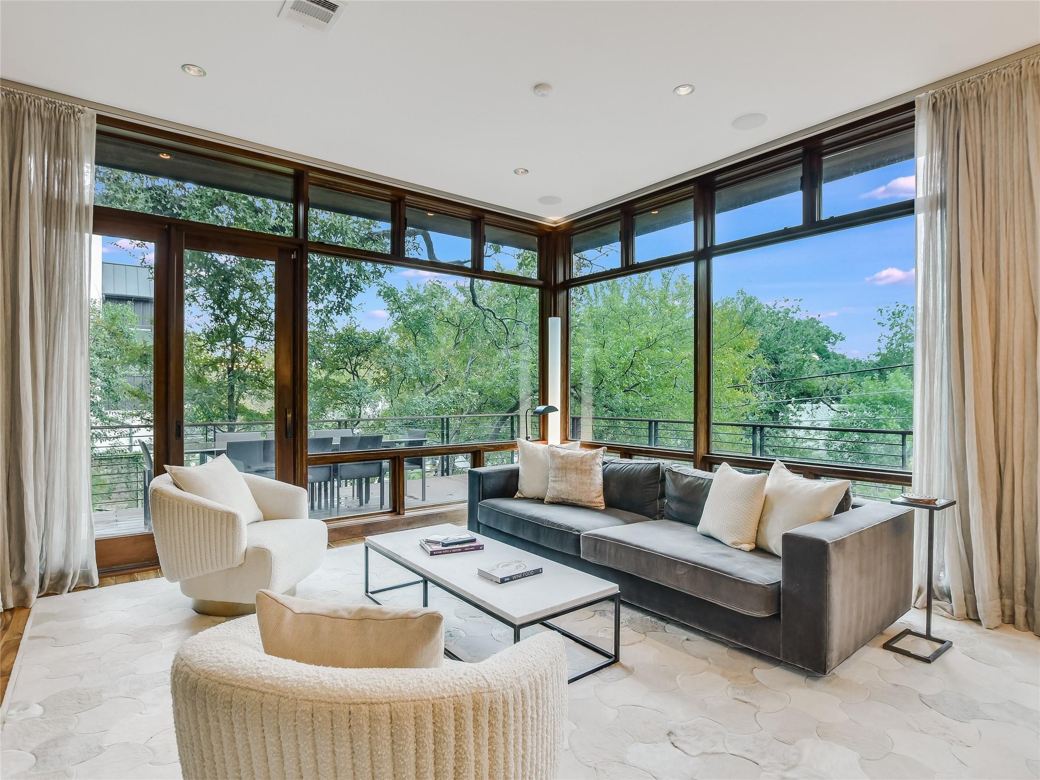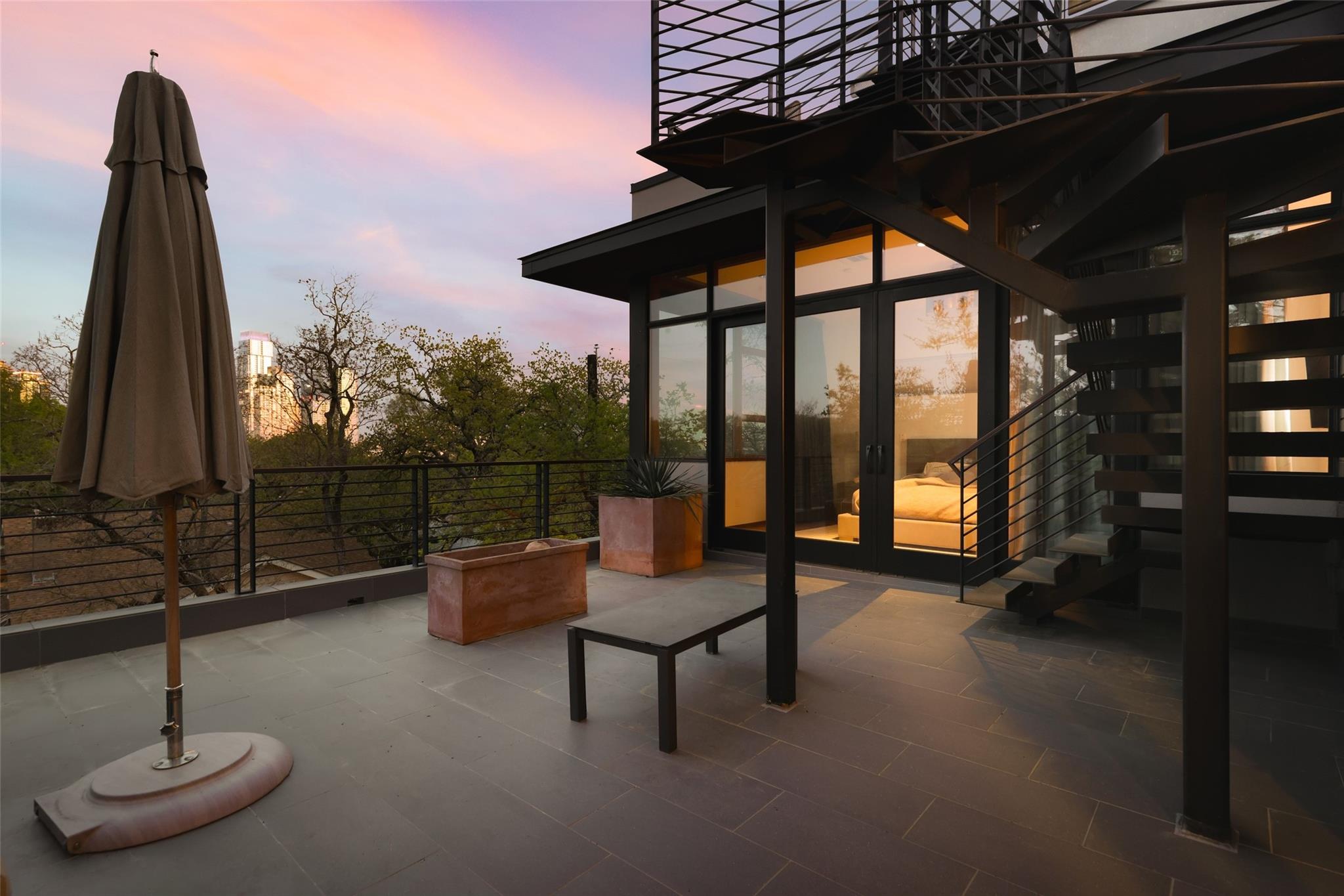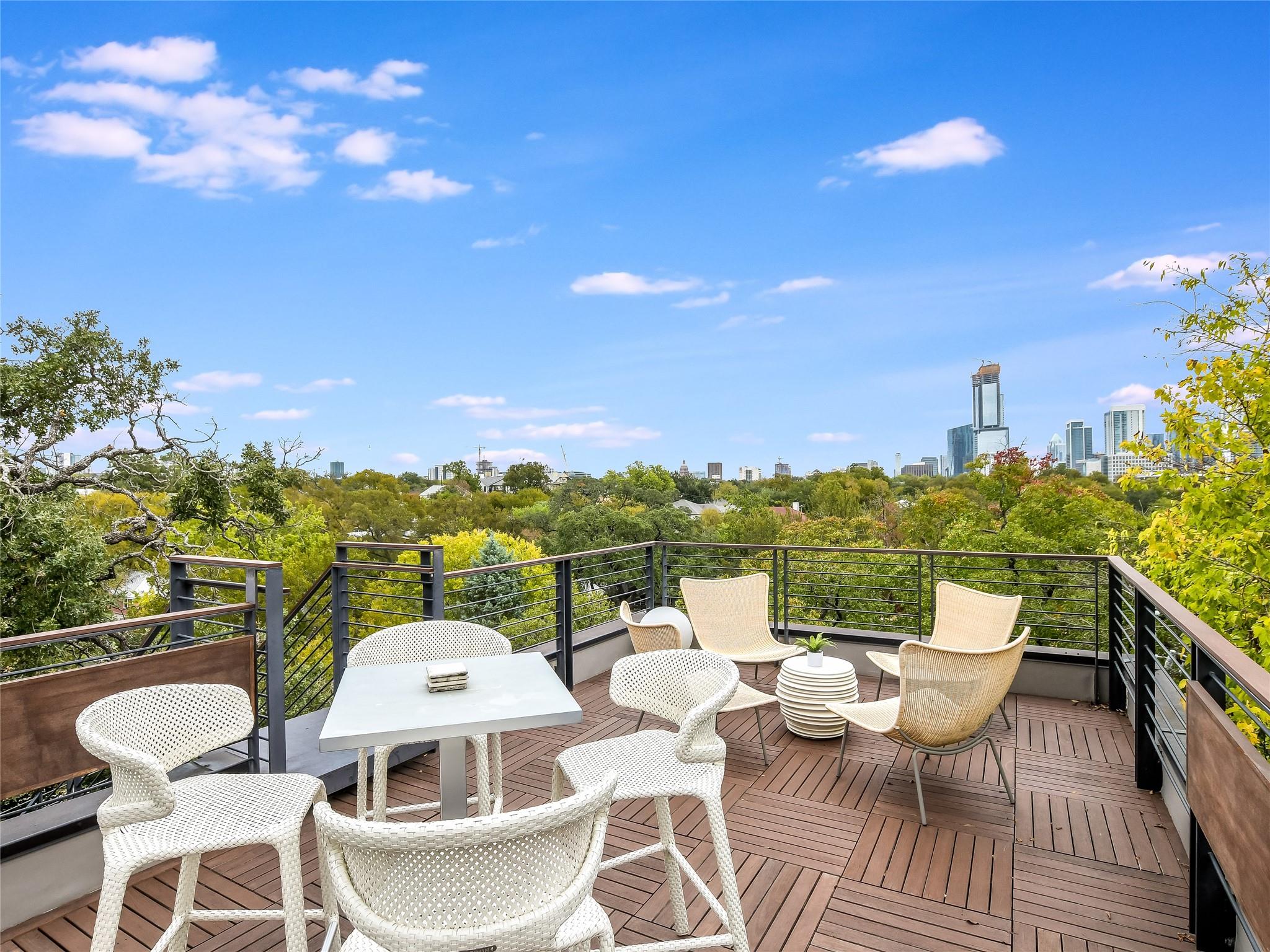 616 Oakland Avenue is a stunning three-story modern home designed by Dick Clark that epitomizes contemporary living. The interior is adorned with modern furniture, creating a sleek and stylish atmosphere throughout. Beautiful window treatments adorn every room, allowing natural light to flood in while maintaining privacy. The home offers two bedrooms + flex room and a full bath conveniently located off the main living area. These well-appointed rooms provide comfortable and private spaces for family members or guests. The full bath, finished with modern fixtures and stylish design, ensures convenience and comfort. Located on the third story, the primary bedroom and bathroom offer a luxurious retreat within the home. The primary bedroom boasts a serene ambiance and ample space for relaxation. The spacious bathroom is a masterpiece, featuring a double vanity, a stone soaking tub, and a rejuvenating steam shower, creating a spa-like oasis. Outdoor spaces are a highlight of this property, with patios on each floor offering the perfect setting for entertainment or relaxation. However, the true gem is the stairwell leading to the rooftop patio, providing breathtaking views of the downtown skyline. Whether you're unwinding with a drink at sunset or hosting an unforgettable gathering under the stars, the rooftop patio offers an unparalleled experience. 616 Oakland Avenue is a true urban oasis, just steps from downtown and all of the Clarksville neighborhood favorites. A combination of modern turnkey living with walkability.