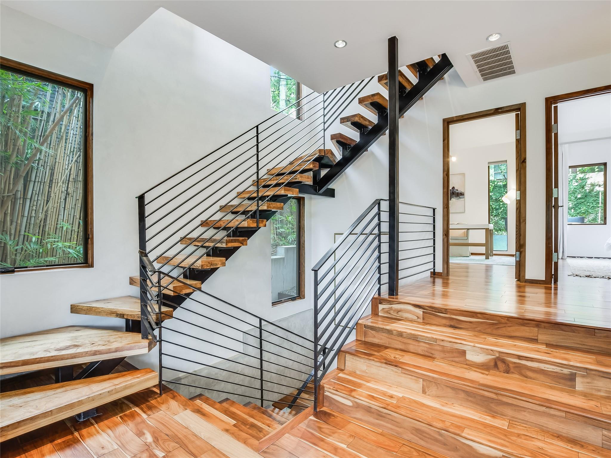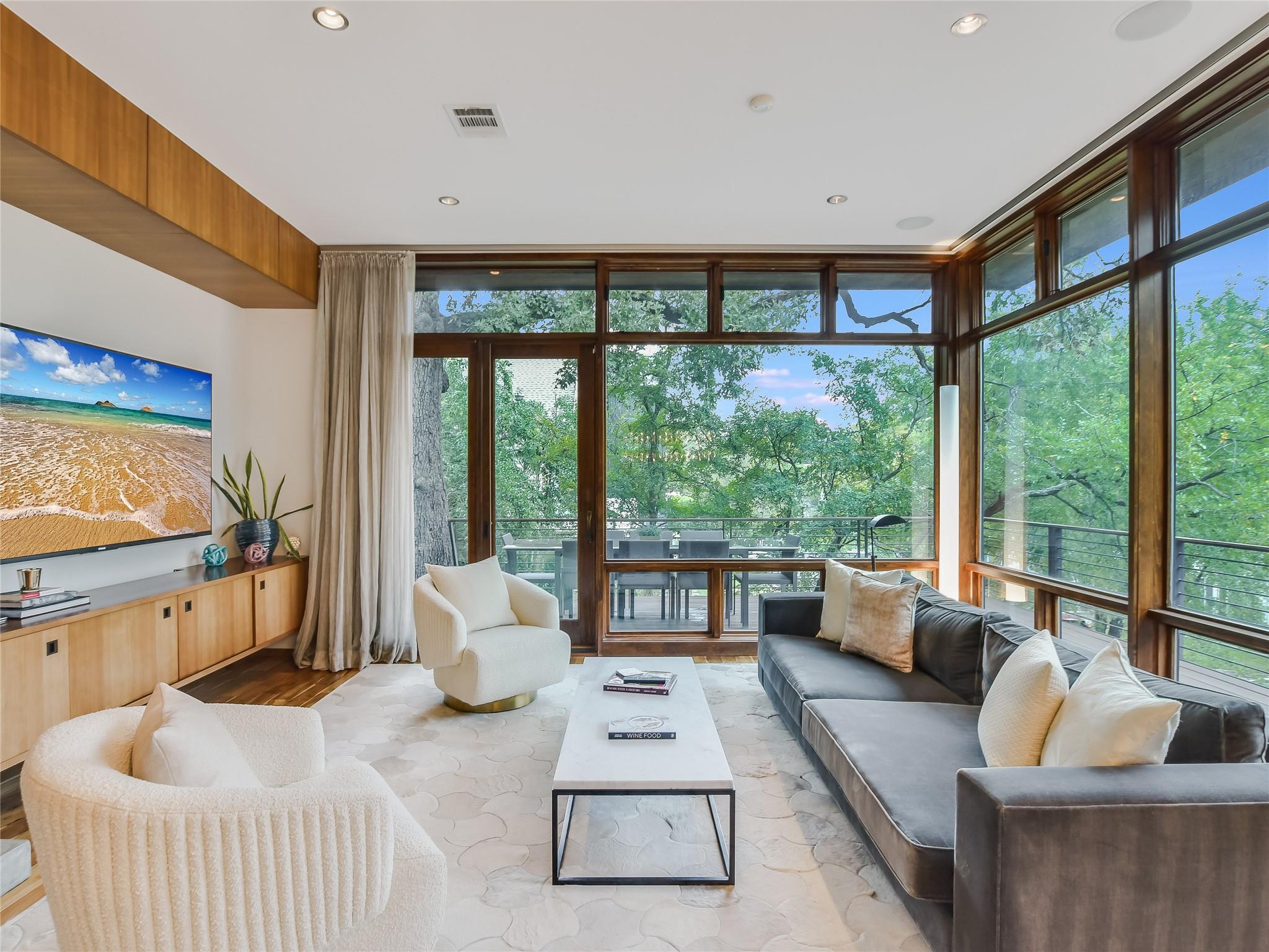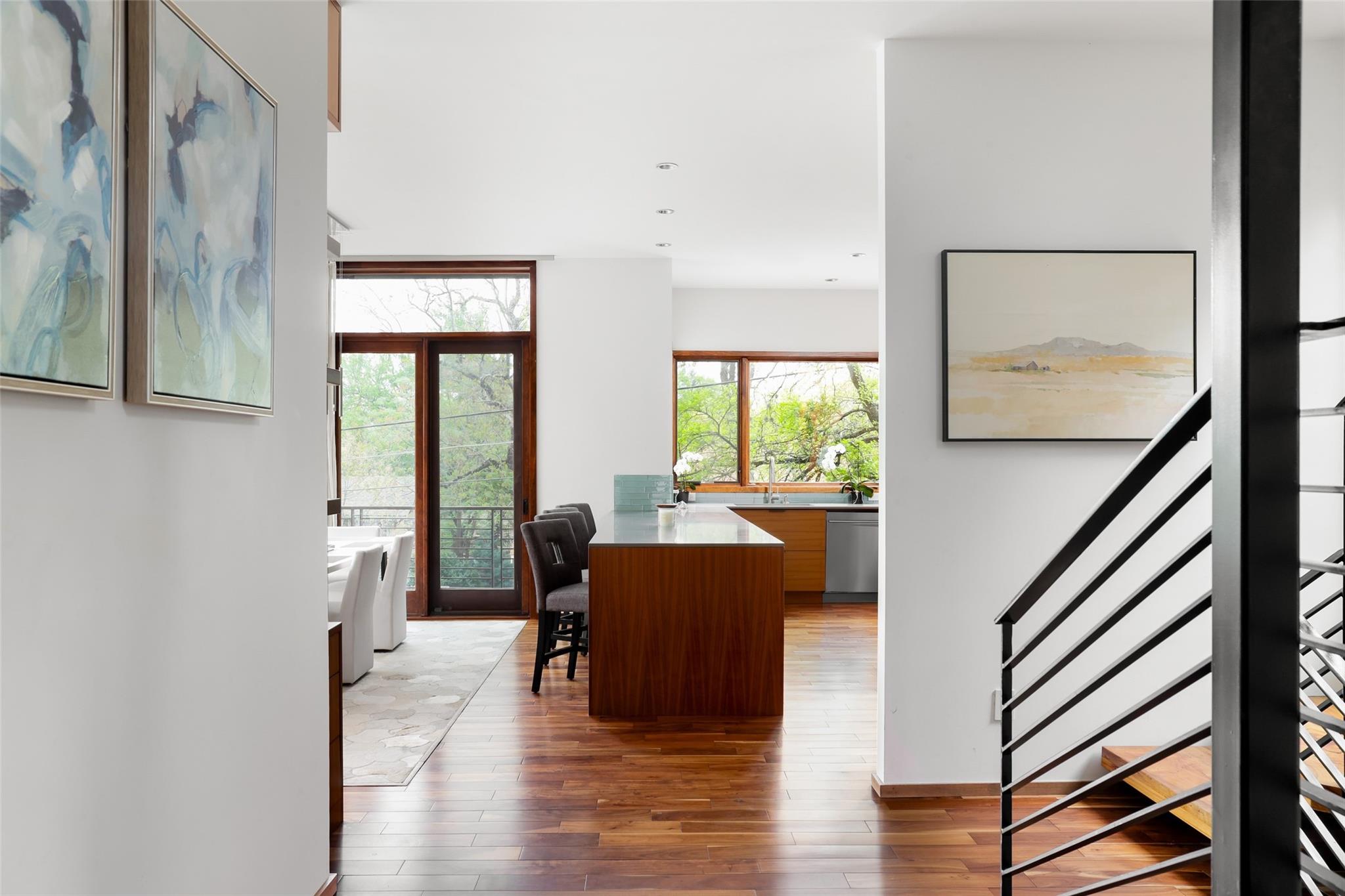 616 Oakland Avenue is a stunning three-story modern home designed by Dick Clark that epitomizes contemporary living. The interior is adorned with modern furniture, creating a sleek and stylish atmosphere throughout. Beautiful window treatments adorn every room, allowing natural light to flood in while maintaining privacy. The home offers two bedrooms + flex room and a full bath conveniently located off the main living area. These well-appointed rooms provide comfortable and private spaces for family members or guests. The full bath, finished with modern fixtures and stylish design, ensures convenience and comfort. Located on the third story, the primary bedroom and bathroom offer a luxurious retreat within the home. The primary bedroom boasts a serene ambiance and ample space for relaxation. The spacious bathroom is a masterpiece, featuring a double vanity, a stone soaking tub, and a rejuvenating steam shower, creating a spa-like oasis. Outdoor spaces are a highlight of this property, with patios on each floor offering the perfect setting for entertainment or relaxation. However, the true gem is the stairwell leading to the rooftop patio, providing breathtaking views of the downtown skyline. Whether you're unwinding with a drink at sunset or hosting an unforgettable gathering under the stars, the rooftop patio offers an unparalleled experience. 616 Oakland Avenue is a true urban oasis, just steps from downtown and all of the Clarksville neighborhood favorites. A combination of modern turnkey living with walkability.