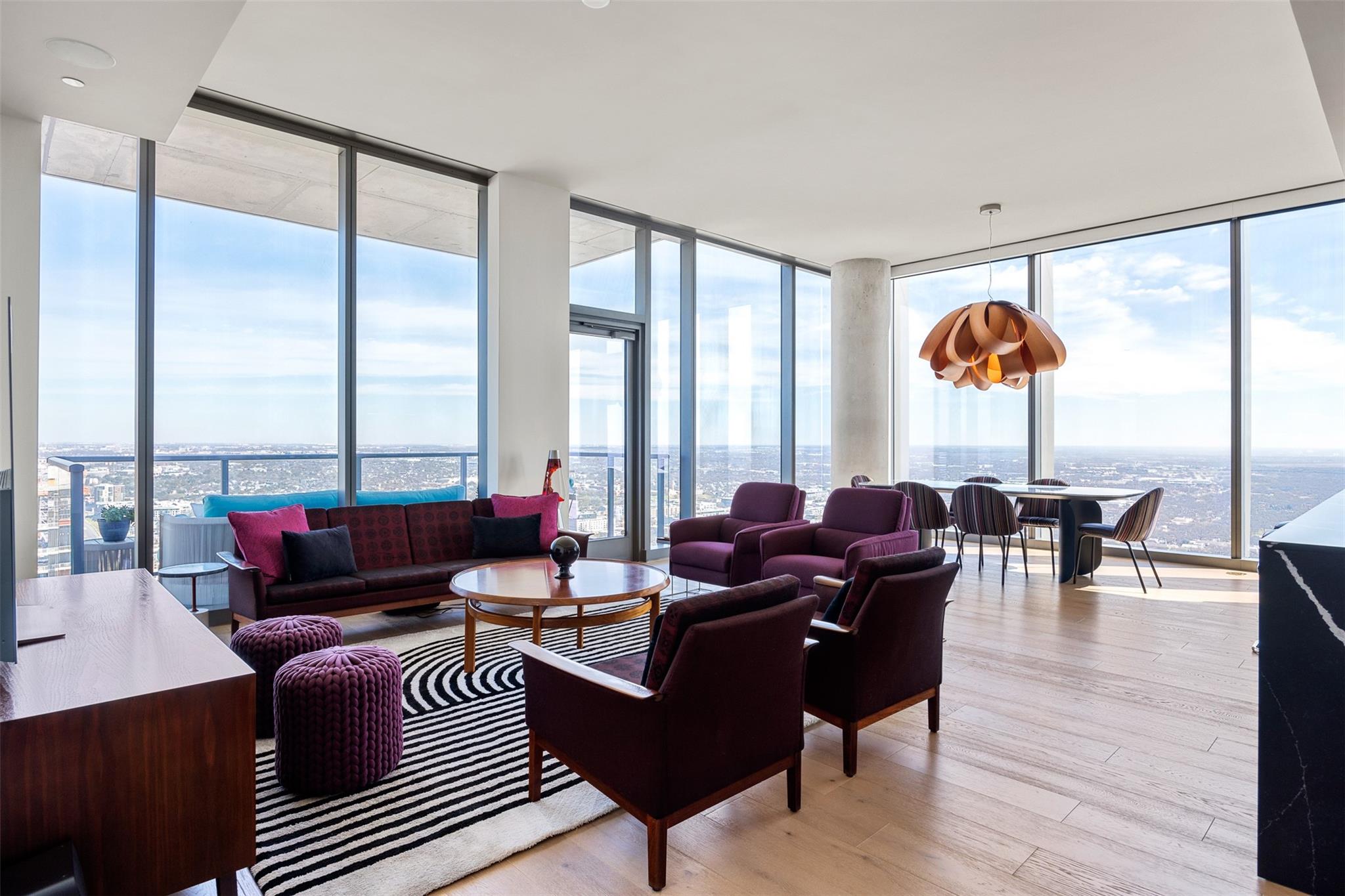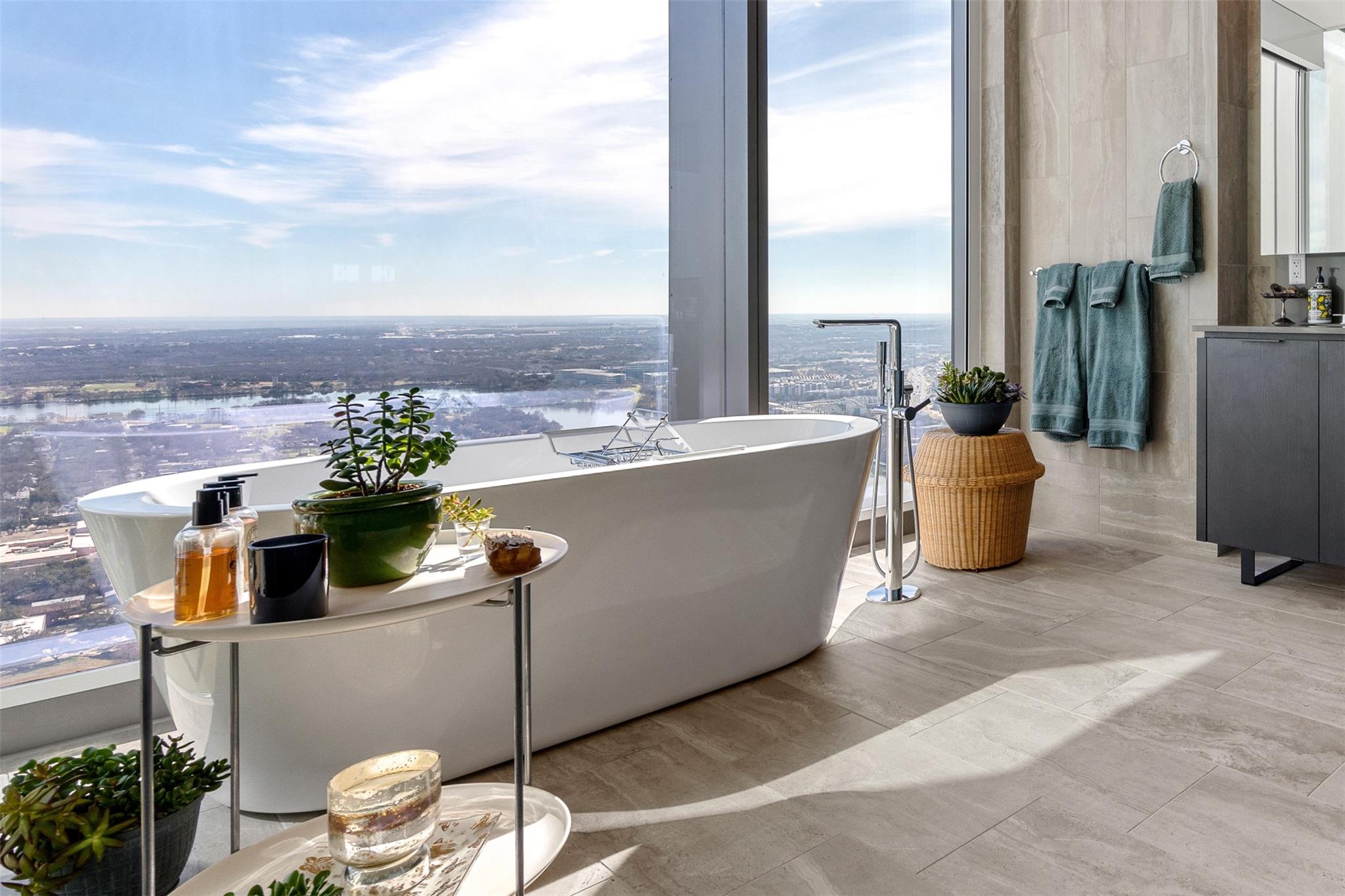 Twilight Open House April 3, 6pm to 8pm, Join Us for - Bubbles and Bites - Hosted with: Kayla Strunk at Guaranteed Rate. Northeast Corner Penthouse on the 47th Floor of 44 East. One of Three PHC4.1 Penthouse Floorplans. Panoramic Views from Stratford Mountain to COTA. View includes wrap-around Lady Bird Lake view from South Congress Bridge to the Longhorn Dam, Shoreline High-rises, Capitol Dome, UT Tower. Future views of The Modern (59 Stories) & the Waterline high-rise (74 Stories). Penthouse Level Features: Only 4 Units Per Floor, Corner Unit, Higher 11 ft. ceilings, Larger 125 SF Balcony, Extended Kitchen Island with Wine Refrigerator, Thermador Appliances with separate Speed Oven & Built-In Coffee Machine, Curtain Glass between Primary Bed & Bath, Amazing Views from the Detached Primary Bathtub, Upgraded Rain Shower, Walk-In Laundry Room with Danish Storage Cabinets & Side by Side Washer & Dryer, Walk-In Closets for all Bedrooms, Upgraded with: Electric Shades & Blackouts, Lutron Lighting System, In-Ceiling Speakers powered by Sonos, Nest Doorbell, August WiFi Locking, EV Charger at 2 Deeded Parking Spaces on Level 2.5, the Highest Level of Luxury Amenities & Common Areas available in Austin. Located directly on Lady Bird Lake at the new 3-Acre Trailhead Park.