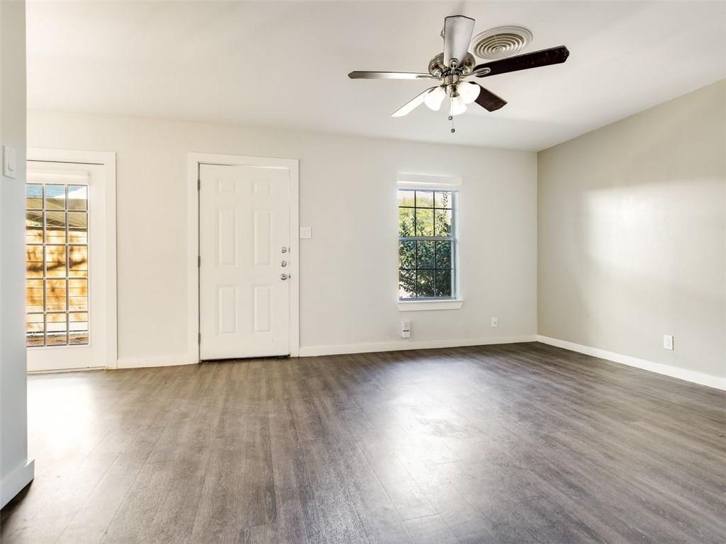 Updated 2 bedroom duplex w/designer touches ready for tenants. Features include gray wood laminate flooring throughout, recent stainless steel appliances, updated fixtures & paint, Washer/Dryer, Nest thermostat, walkin closets, storage, privacy wood fence, large shaded backyard, private patio, carport parking, and off street guest parking. Less than 5 minutes to HEB/Mueller district; 10 minutes to UT; and quick access to East Austin eateries and breweries.