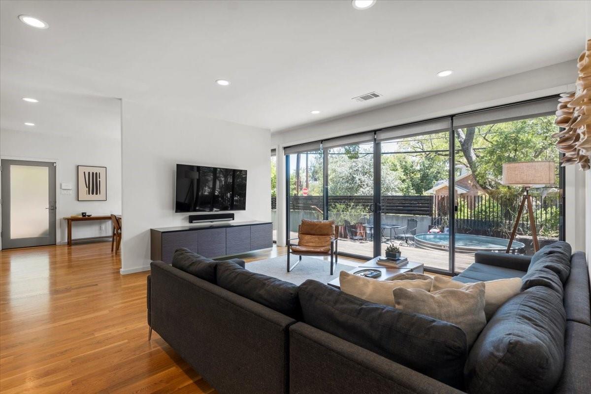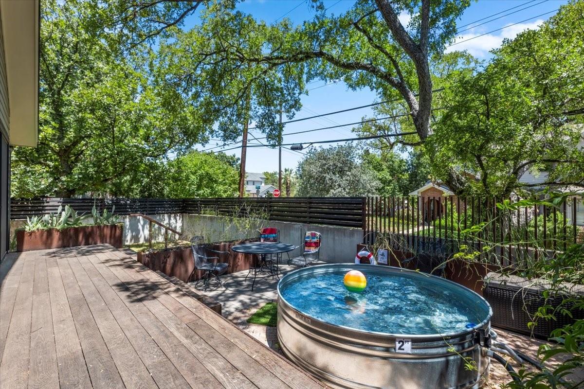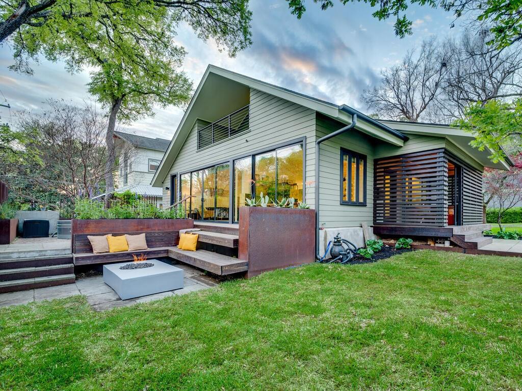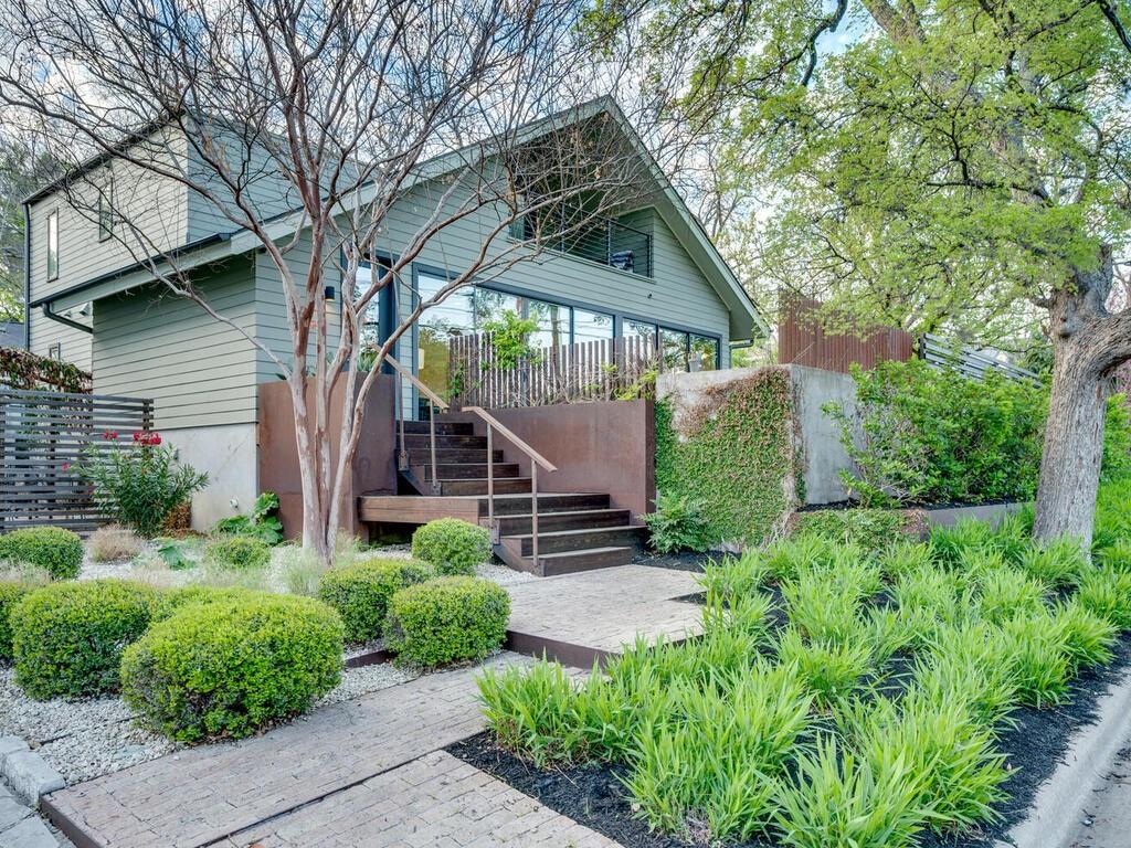 Nestled in the desirable Tarrytown neighborhood, this charming home embodies the spirit of Austin living. Just minutes away from beautiful parks and swimming pools, coffee shops, restaurants and everything downtown has to offer, the 2,385 sqft main house is a reimagined bungalow designed by Stuart Sampley for modern livability. The magnificent kitchen serves as the heart of the home anchoring a flexible open floor plan that will appeal to work-from-home professionals and empty-nesters alike. In the chef's kitchen you will find a gorgeous 50 sqft center island topped with luxurious walnut wood, as well as Silestone countertops, Wolf appliances and custom cabinetry. The east facing window wall with floor to ceiling sliding glass doors suffuses the interior with light while connecting the communal living space to your outdoor deck and courtyard. Created by Word and Carr, and highlighted by a concrete, iron and wood fence with vibrant native plant choices, the landscape design reflects beauty and privacy, offering multiple areas to enjoy a respite from the hustle and bustle. Whether you want to relax and watch the neighborhood go by in the modern screened porch, enjoy dinner outdoors, gather with friends by the gas fire pit, or lounge in the Cowboy Pool on a hot summer day, there is a space for that! The owner’s suite on the upper level is a peaceful sanctuary with sunlight streaming through skylights (equipped with blackout blinds) and a private balcony. A spa-like bathroom, large walk-in closet and flex room complete the upstairs. In addition to the main house there is a 1,788 sqft bonus building with a separate entrance and its own private courtyard! Built as a professional recording studio, the possible uses are endless....an office, mother-in-law suite, guesthouse, game room or kids hangout area are just a few ideas (Buyer to verify any desired updates to studio with COA). Solar panels were installed that service both buildings saving 25-33% on electricity costs.