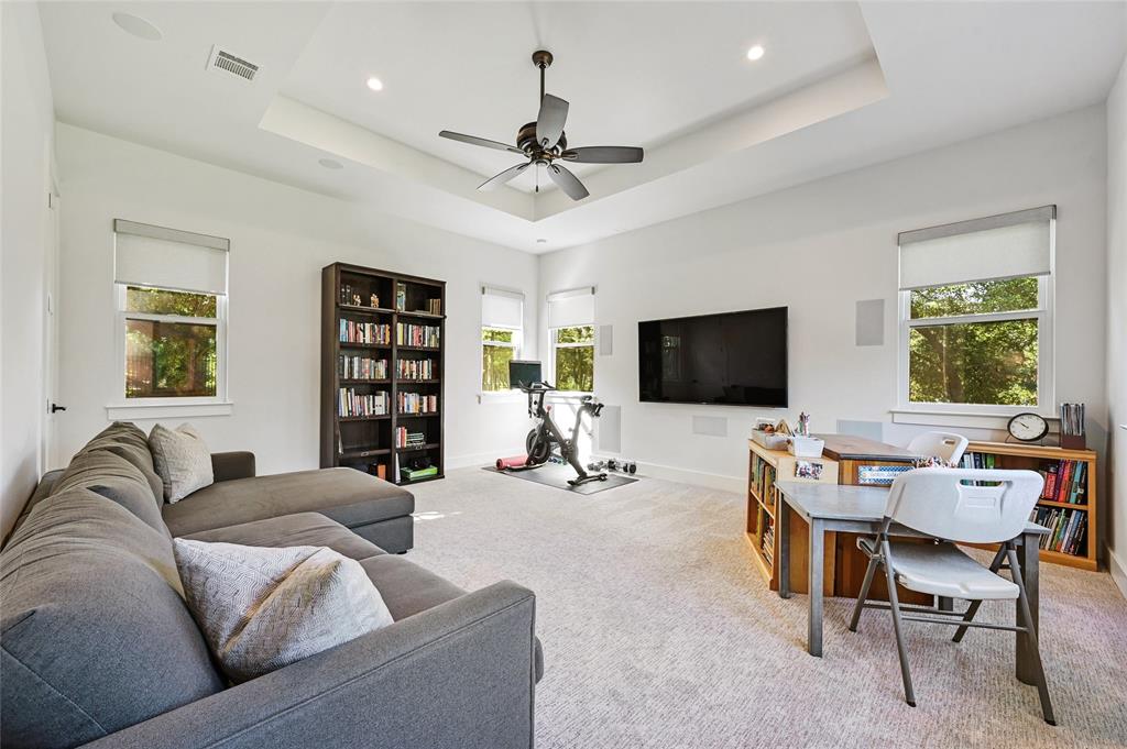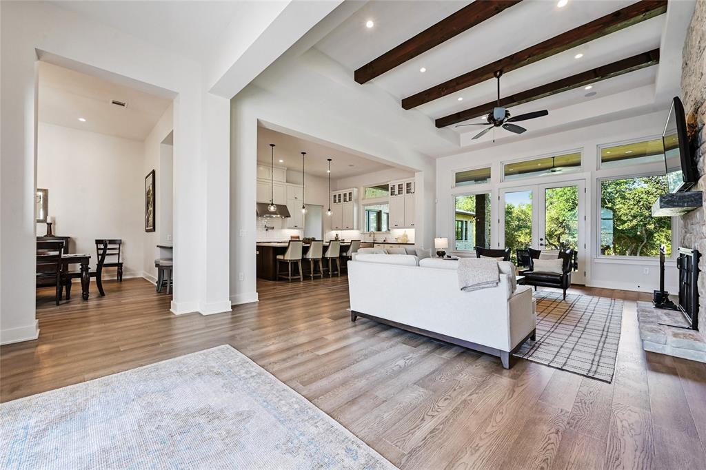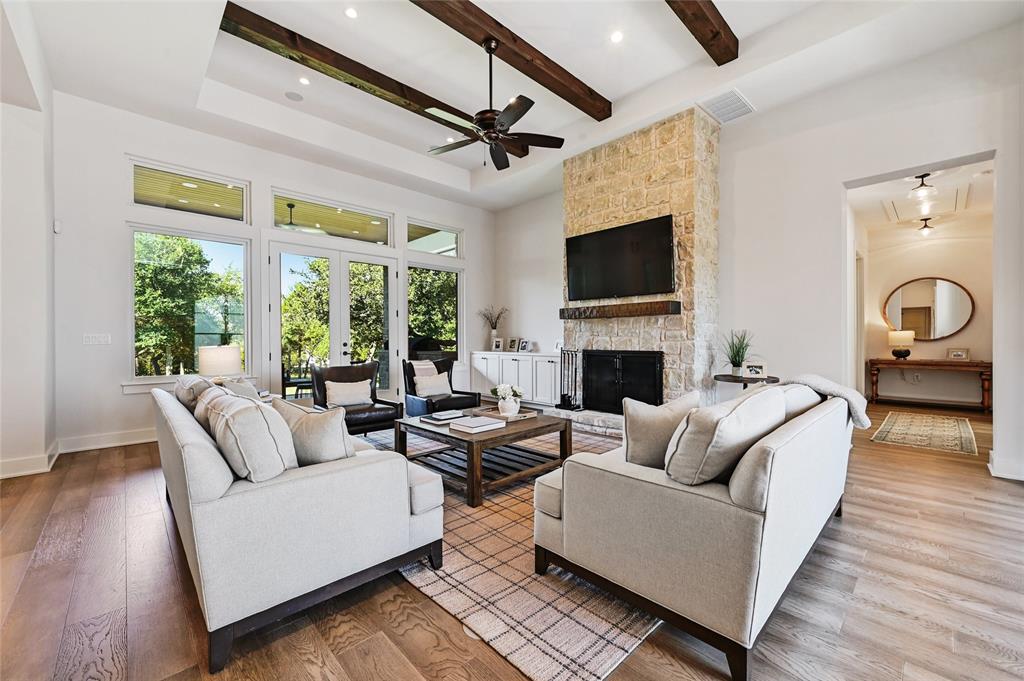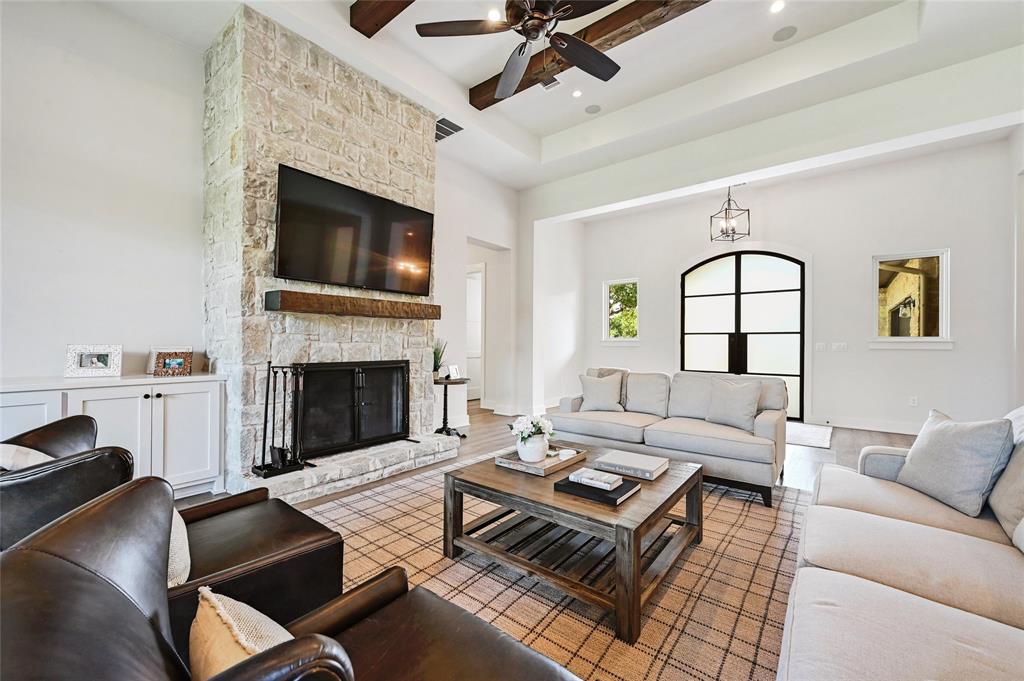 This highly upgraded home features a grand 9 foot iron double door with frosted glass, 4 Bedrooms, 3 ½ baths, 2 living rooms, main living features decorative ceiling beams, custom built-in cabinetry, floor to ceiling stone wood-burning gas fireplace with a custom hand-scraped wood mantel. Hardwood floors are in the living room, kitchen, dining room, study, master bedroom, powder room, hallways, mudroom, and pantry. Tile in laundry room, jack-n-jill bathroom, guest bathroom, and master bathroom. Carpet in bedrooms, gameroom, and master closet.