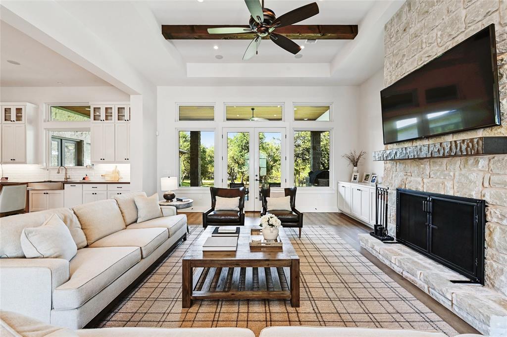 Wonderful Modern Custom Built Home by Nalle Custom Homebuilders, on a quiet, cul-de-sac, 1 acre lot filled with large oak trees. This single story home is constructed out of all stone and stucco with 3-car garage and room for extra parking on property.