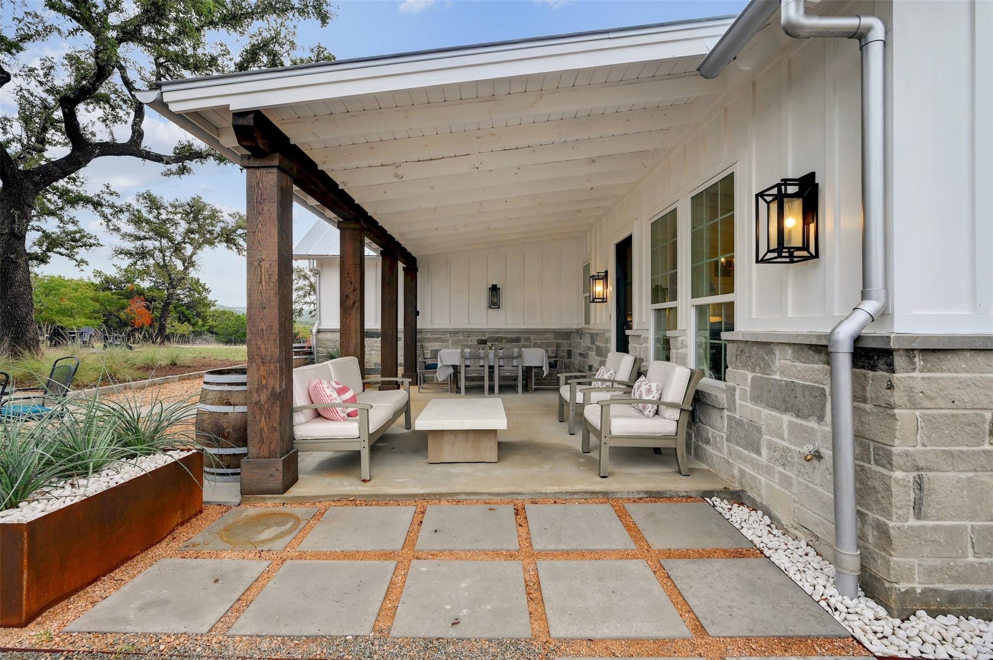 Welcome to Madrona Ranch, a sprawling 30-acre haven of Hill Country bliss offering limitless possibilities. This remarkable property, nestled atop rolling hills, is an ideal canvas for creating a multi-generational homestead or establishing a thriving short-term rental venture. Unrestricted and ag-exempt, Madrona Ranch boasts a 1,524 sq ft main residence and three charming casitas, all meticulously designed with a luxurious modern farmhouse aesthetic. Perched on top of a hill, each dwelling captures panoramic views of the picturesque surroundings. The property is fully enclosed by fencing, featuring an electric gate that welcomes you onto the half-mile paved driveway, ensuring both security and a grand entrance. A wet weather creek meanders through the landscape, enhancing the natural beauty of the land. Water sustainability is a key feature, with rainwater collection, a working well, and a 1,500 sq ft workshop equipped with two automatic roll-up bays, water, electricity, and a 30/50AMP RV hookup. The workshop serves as a versatile space for various endeavors. All improvements showcase a commitment to quality, featuring 50-year metal roofs, vertical siding, energy-efficient windows, and rainwater collection systems. Additionally, an owned water purifier and a separate water storage tank in the well house contribute to the property's self-sufficiency. Madrona Ranch invites you to embrace a lifestyle where luxury meets functionality in the heart of the Hill Country. Dripping Springs offers a vibrant array of activities and attractions, from picturesque weddings and tastings at local wineries and distilleries to lively events like the Songwriter Festival, ensuring there's something for everyone to enjoy. Whether envisioning a tranquil family retreat or an investment in the flourishing short-term rental market, this property is a rare gem offering both serenity and potential. Seize the opportunity to make Madrona Ranch your own slice of Hill Country paradise.