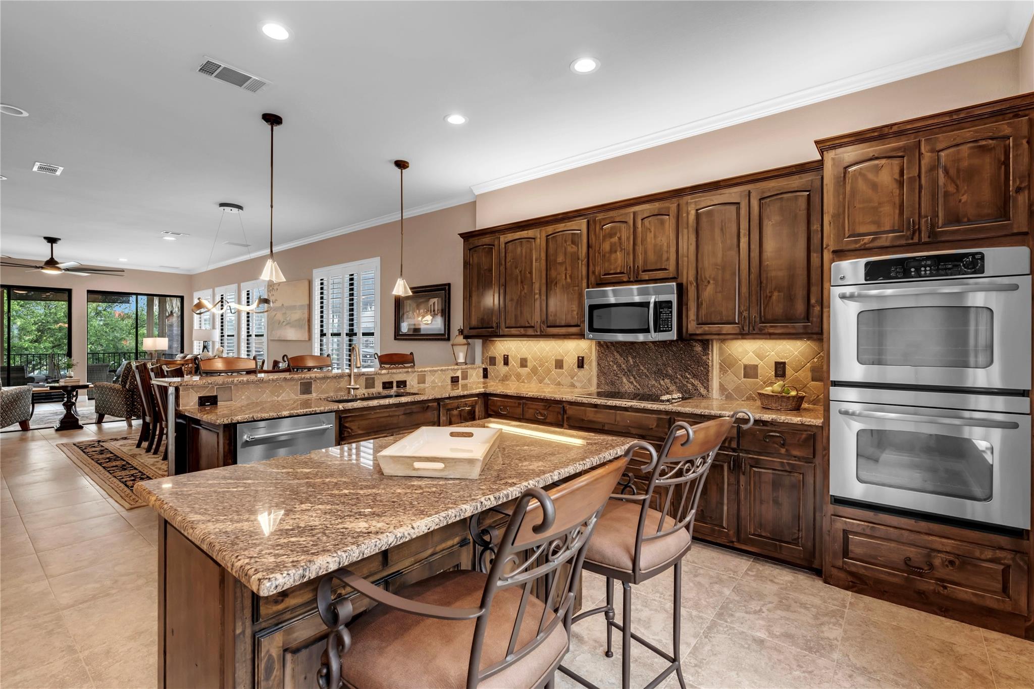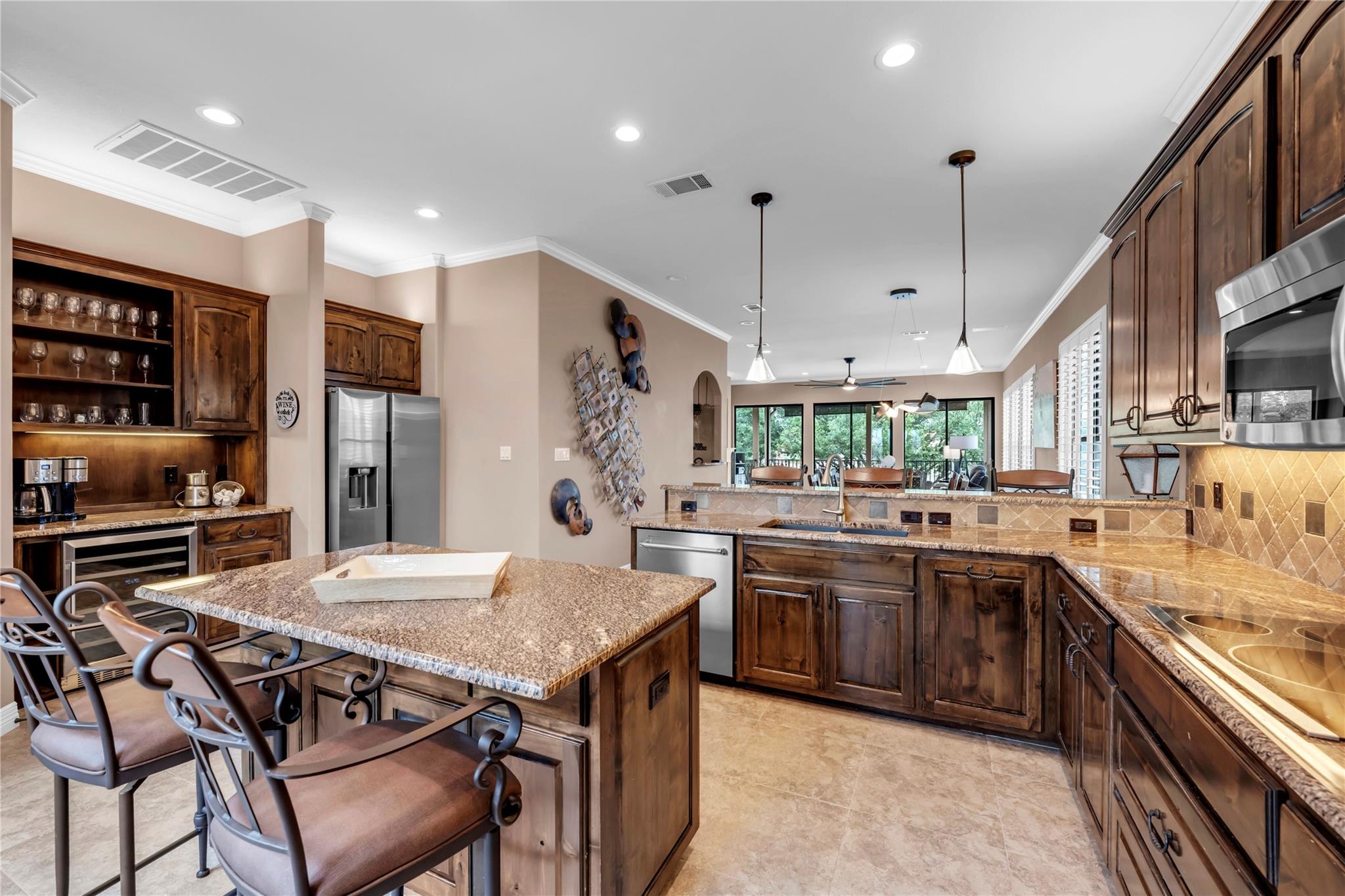 | Appliances | Bar Fridge, Built-In Electric Oven, Built-In Oven(s), Cooktop, Dishwasher, Disposal, Dryer, Microwave, Refrigerator, Washer, Water Softener | |