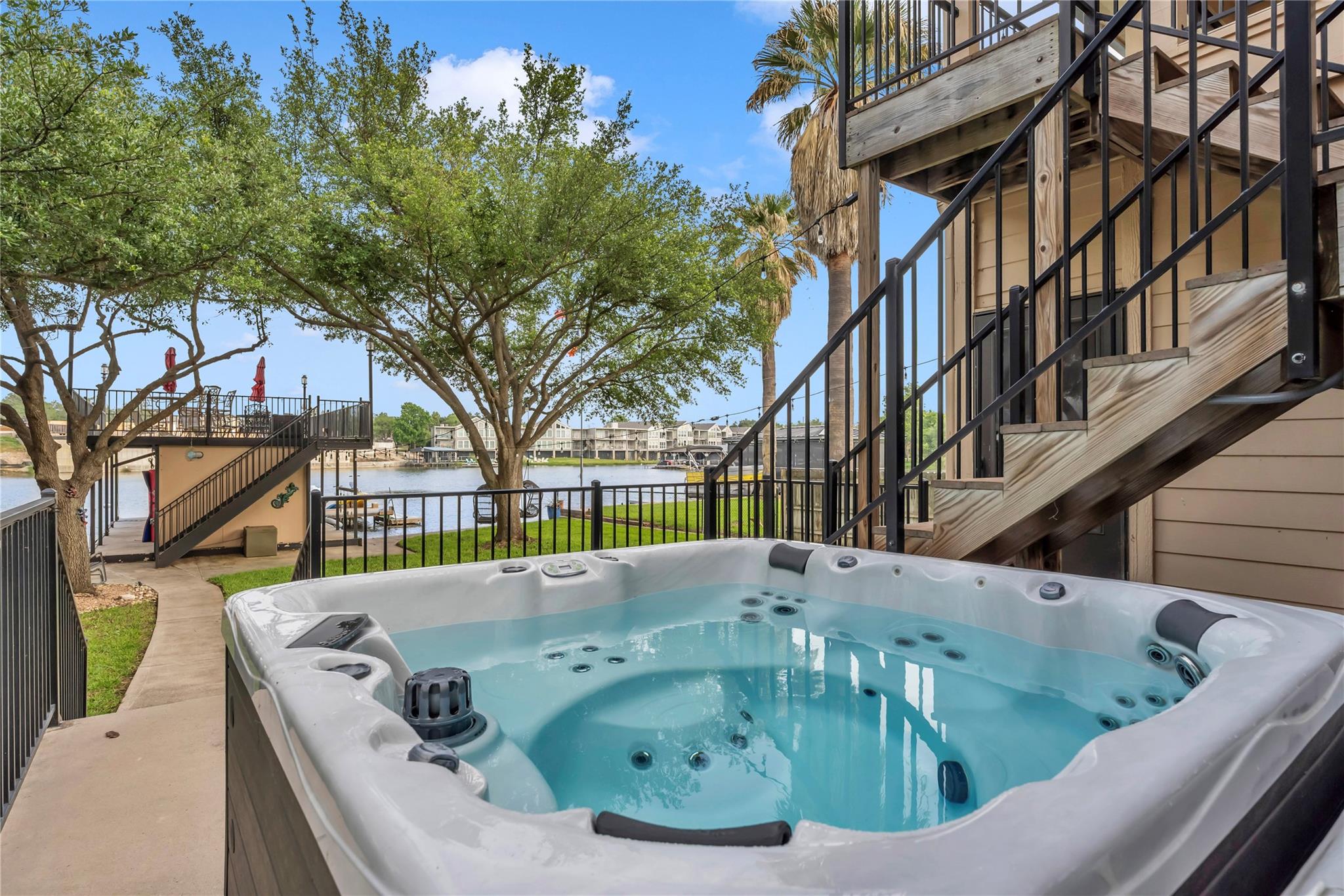 Looking for a waterfront escape? This stunning 3-bedroom, 3-bathroom home on a beautiful peninsula in Granite Shoals is your own private paradise. This fully furnished home boasts majestic oak trees for a shaded yard and evening shade and a stunning cove perfect for enjoying all that Lake LBJ has to offer. Unwind and relax in the inviting hot tub after a day on the water. Explore the cove with water toys. All toys convey that are not motorized. kayaks. This fully furnished home is move-in ready, with all furnishings conveying with the purchase. Enjoy the freedom of no HOA fees and the opportunity for short-term rentals, making this property a great investment. Stay connected with high-speed internet and experience the tranquility of island life.
