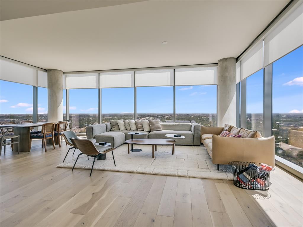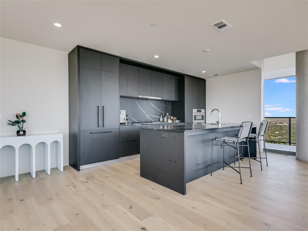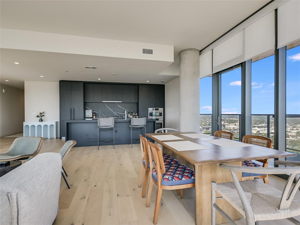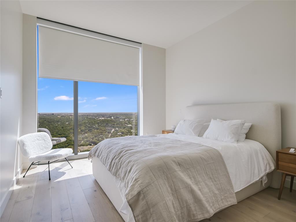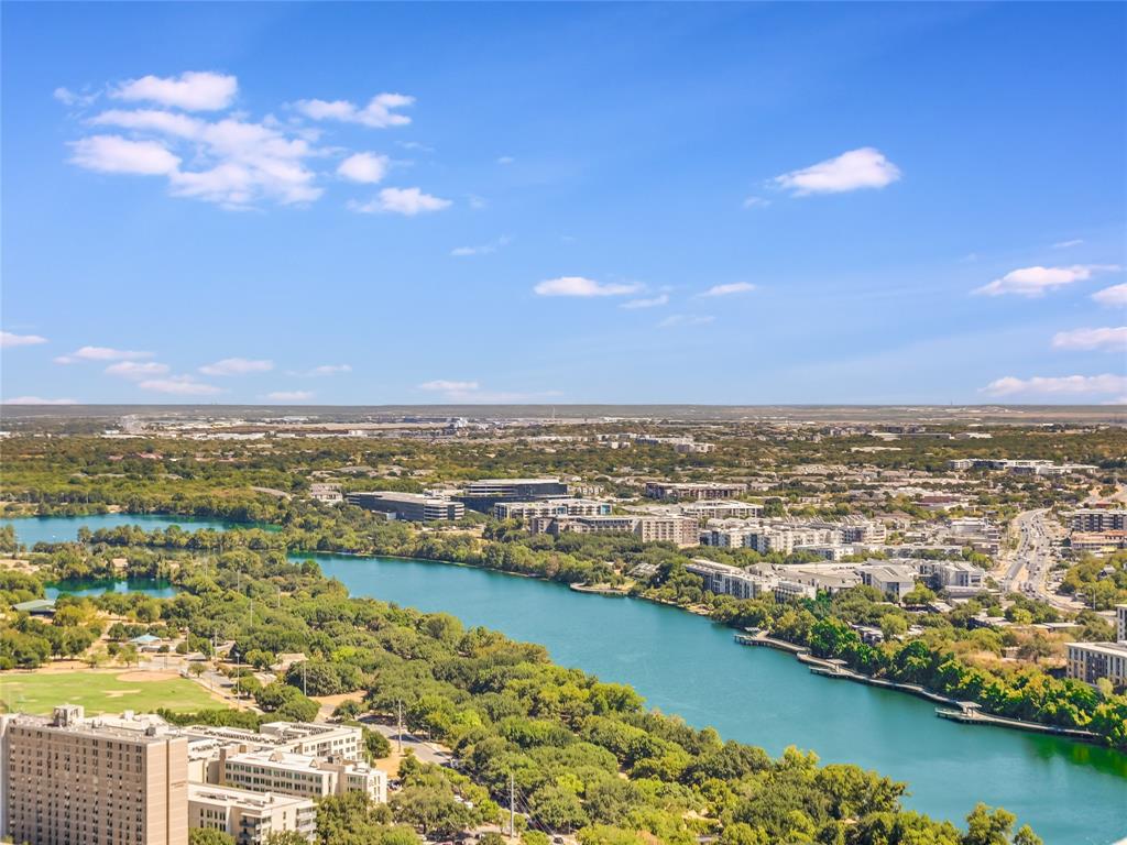 Expansive lake views greet you from this luxury 3 bedroom residence at 44 East Ave. Abundant natural light fills the space from the floor-to-ceiling windows allowing striking views throughout the open floor plan. The kitchen comes equipped with soft-close Italian cabinetry, Bosch appliances, built-in refrigerator, quartz countertops and large center island with under-counter wine fridge. Wake from the primary bedroom to amazing lake views, with a spacious walk-in closet and bath featuring walk-in glass shower, free-standing soaking tub and dual vanity. Covered balcony and hardwood + tile floors throughout. This southeast corner residence provides the best of both worlds with both scenic sunrise and sunset skies. Two premium parking spaces ideally located next to the elevators on garage level three included. Extend your living space into 44 East Ave’s beautifully appointed indoor and outdoor amenity spaces featuring a swimming pool with sundeck, gas grills, fitness center + yoga studio, dog park, conference rooms, lounges, caterer’s kitchen and 24/7 concierge service. Experience the best of urban living along the sparkling shores of Lady Bird Lake with easy walkability to the vibrant Rainey St area.