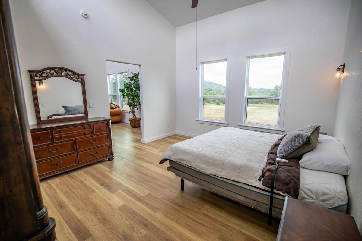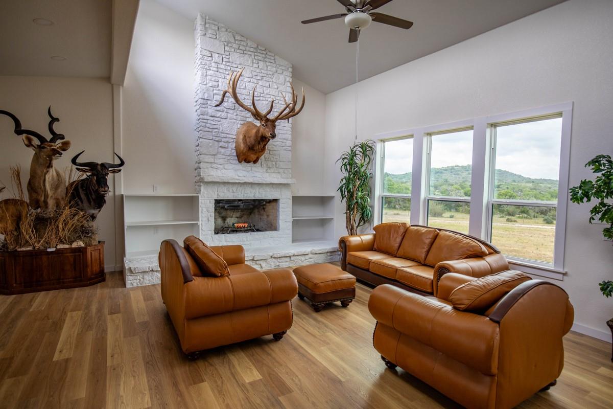 A secluded yet convenient residential/recreational property with classic Hill Country topography, long-range views, and multiple hilltop home sites that have 360-degree views. The property also has 340’ of elevation change, a wet weather creek/pond area, multiple draws, and is covered with Live Oaks and Spanish Oaks. One of the hilltops has been recently cleared of cedar and is ready for your dream home. This 328-acre tract is part of the 800-acre Hall Ranch that has been subdivided into only 4 tracts to conserve open space. There is a recently remodeled 1920 sq. ft. farmhouse that has 1 bedroom, flex room, and 1.5 baths that could serve as temporary living quarters while you build or as a guest house. This is a rare opportunity to have a conveniently located sizeable tract with so much to offer. The property is 10 minutes from Comfort, less than 30 minutes to Kerrville, Fredericksburg, and Boerne, and under an hour to San Antonio. Near the entrance to the property is a great hilltop build site that tops out at 1900’, has already been cleared of cedar, has electricity nearby, and a new road that winds around the hill to the top. If you want to build deeper into the property, there are several other prime hilltop locations. There is an extensive road/trail system that provides UTV access to most of the property. The property has a great balance of heavily wooded areas that provide cover and bedding locations for wildlife and more open areas that provide diverse feeding habitats. In the SE corner of the property, there is a wet weather creek and pond complex. The farmhouse has an eclectic but modern feel with an open concept living room and kitchen, high ceilings, a large wood-burning fireplace, 1 bedroom, one full bath, a flex room, and half bath. New wood laminate flooring throughout, new wiring, and all new plumbing. Multiple acreage options available- 266 Ac. #6537907 62 Ac. #5942899