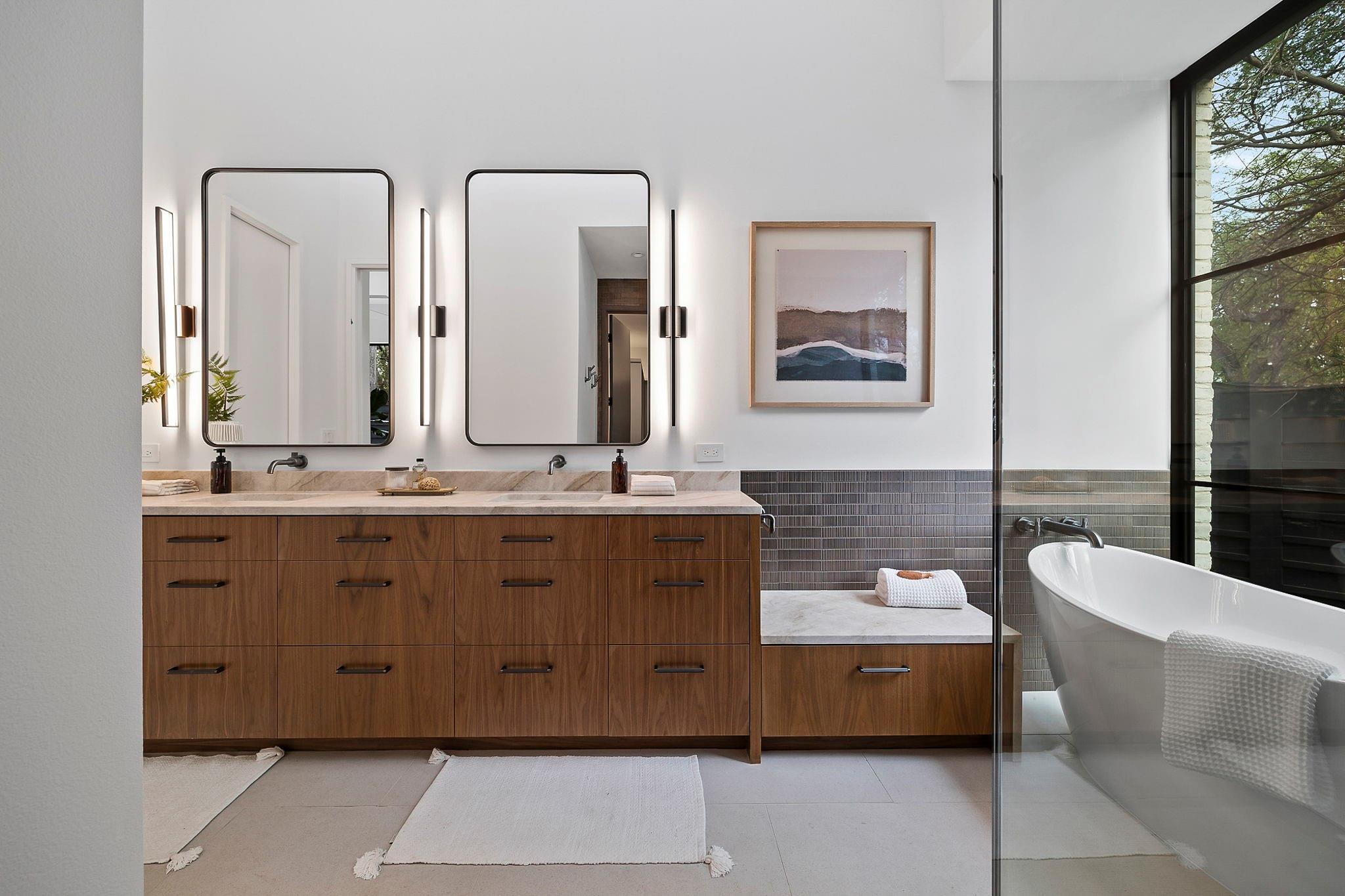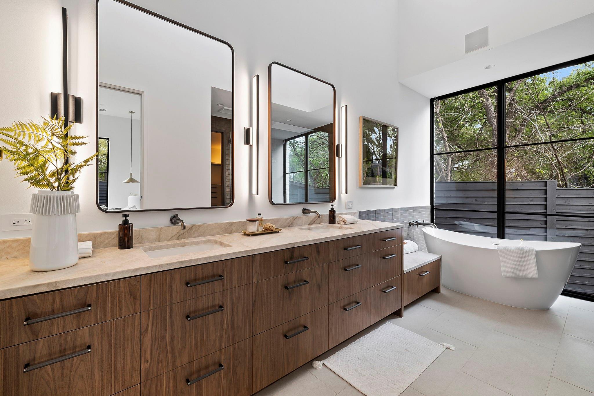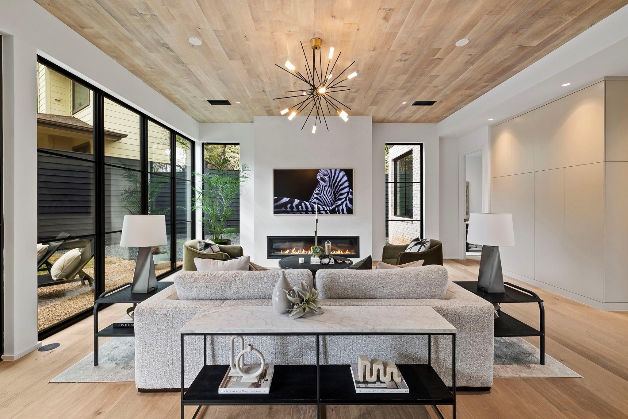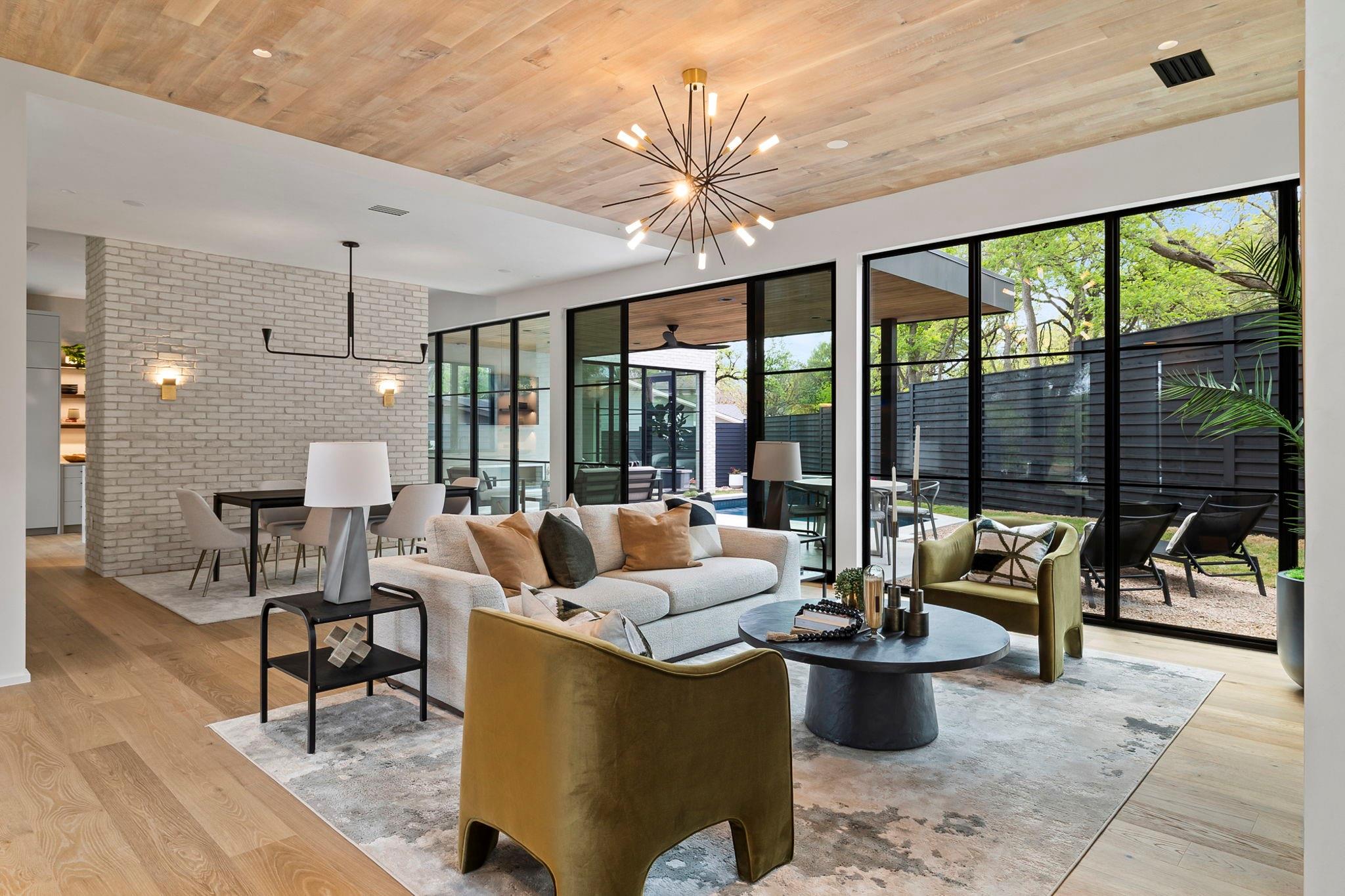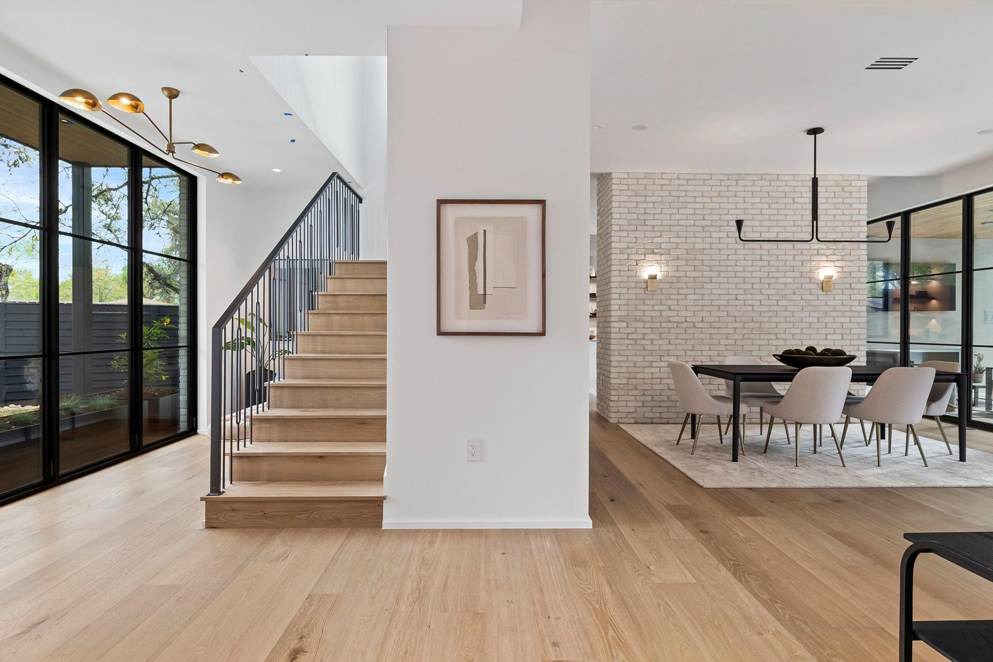 This timeless, transitional-modern property from Mosier Luxury Homes melds sophisticated finishes with discerning design. Stunning epicurean kitchen with state-of-the-art Wolf/SubZero appliances, custom cabinetry brilliantly illuminated by Restoration Hardware pendants, and Denali Quartzite throughout the kitchen including range walls, waterfalls, and pantry. The dining room is enhanced by a gorgeous backdrop of brick harmonized with Kelly Wearstler and Peter Bristol lighting. A sophisticated custom wet bar is elevated by SubZero wine storage with dual temp zones and Wi-Fi-enabled features. Escape to the primary suite located on the main level with private access to the pool and outdoor living retreat. Tranquil owner’s bath with designer tile, an elegant quartzite vanity, a free-standing soaking tub, and a spacious walk-in shower surrounded by natural light from the oversized window. A flex room plus 3 bedrooms are located on the 2nd floor and an incredible indoor/outdoor bonus space featuring a balcony nestled among the tree tops spans the third level. A beautifully constructed, peaceful retreat with close proximity to downtown and walking distance to Lady Bird Lake, close to the famed Muni golf course, a flagship new HEB, and Barton Springs. Zoned to esteemed Tarrytown schools.. The perfect blend of luxury and functionality - A MUST SEE!