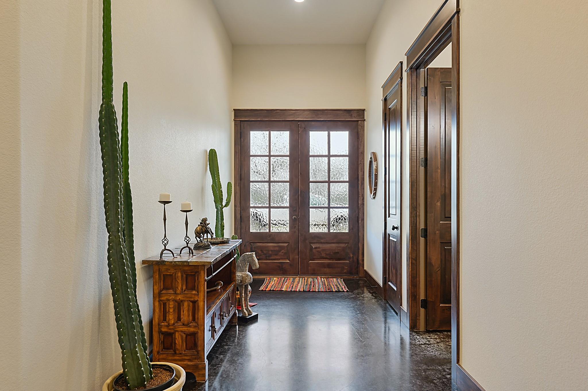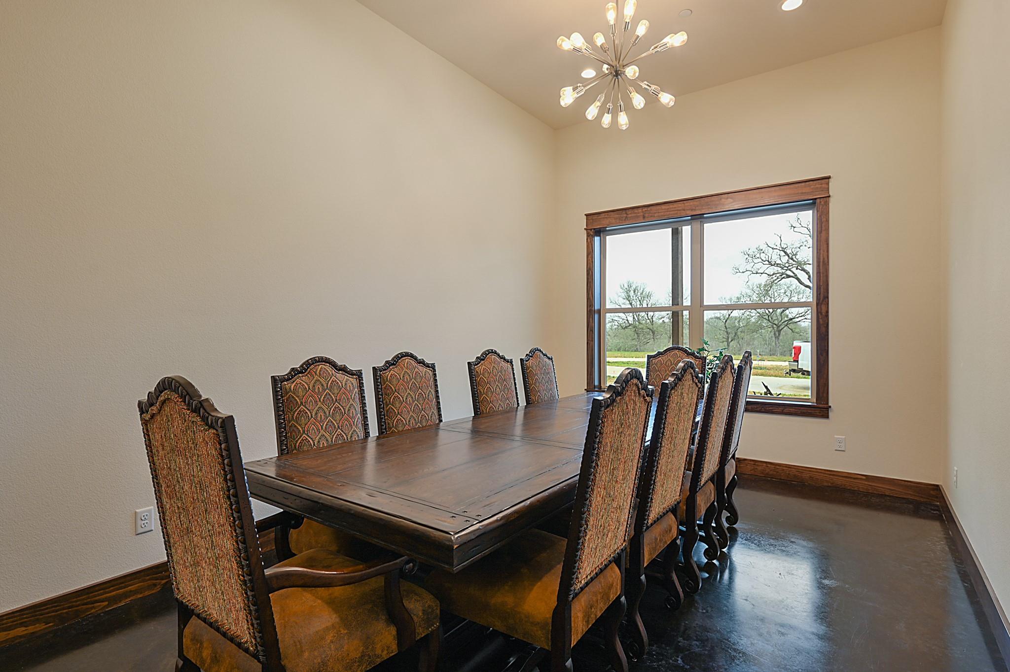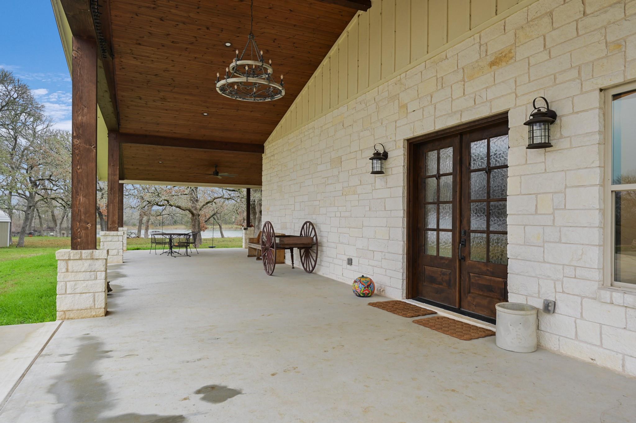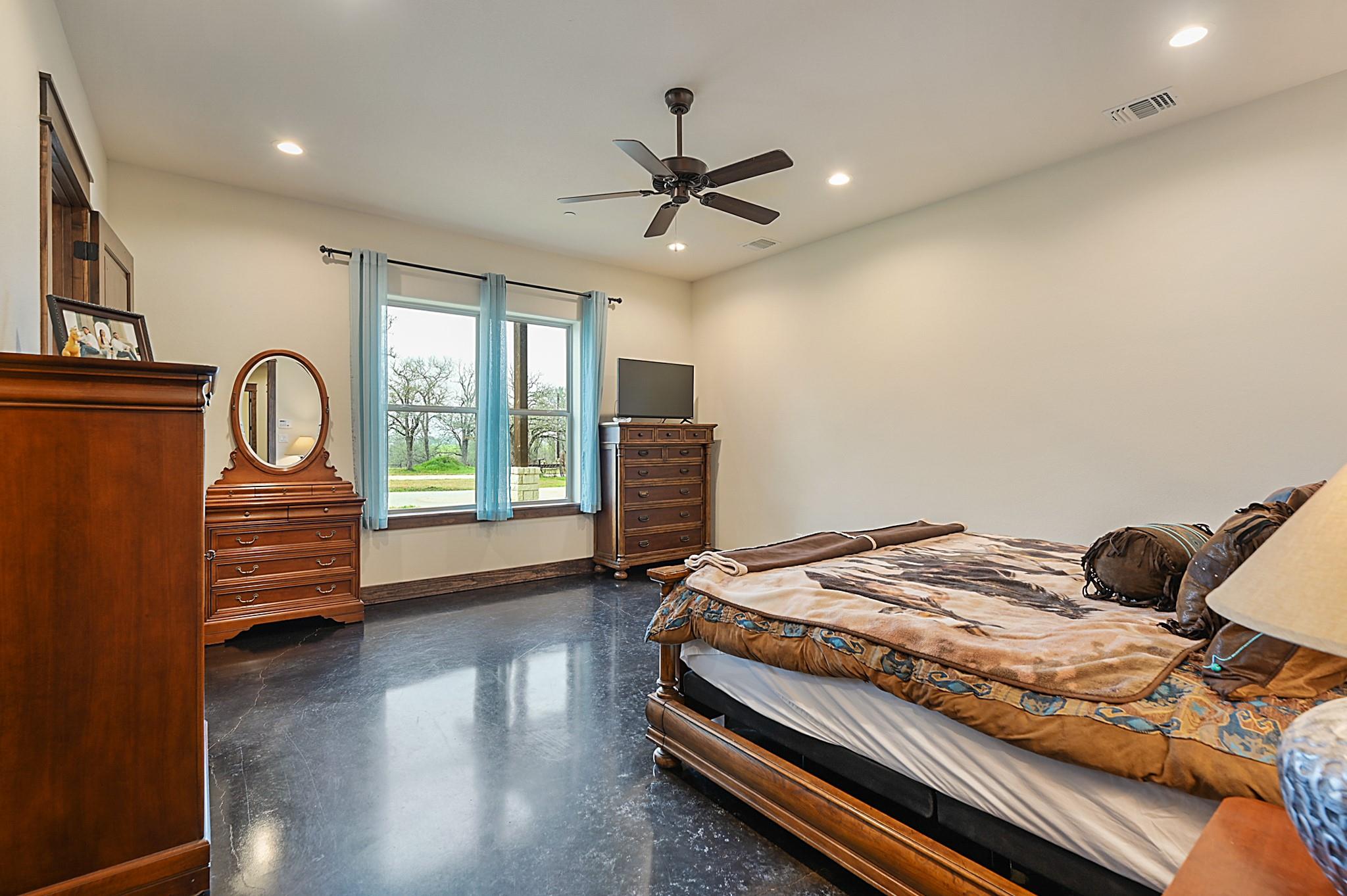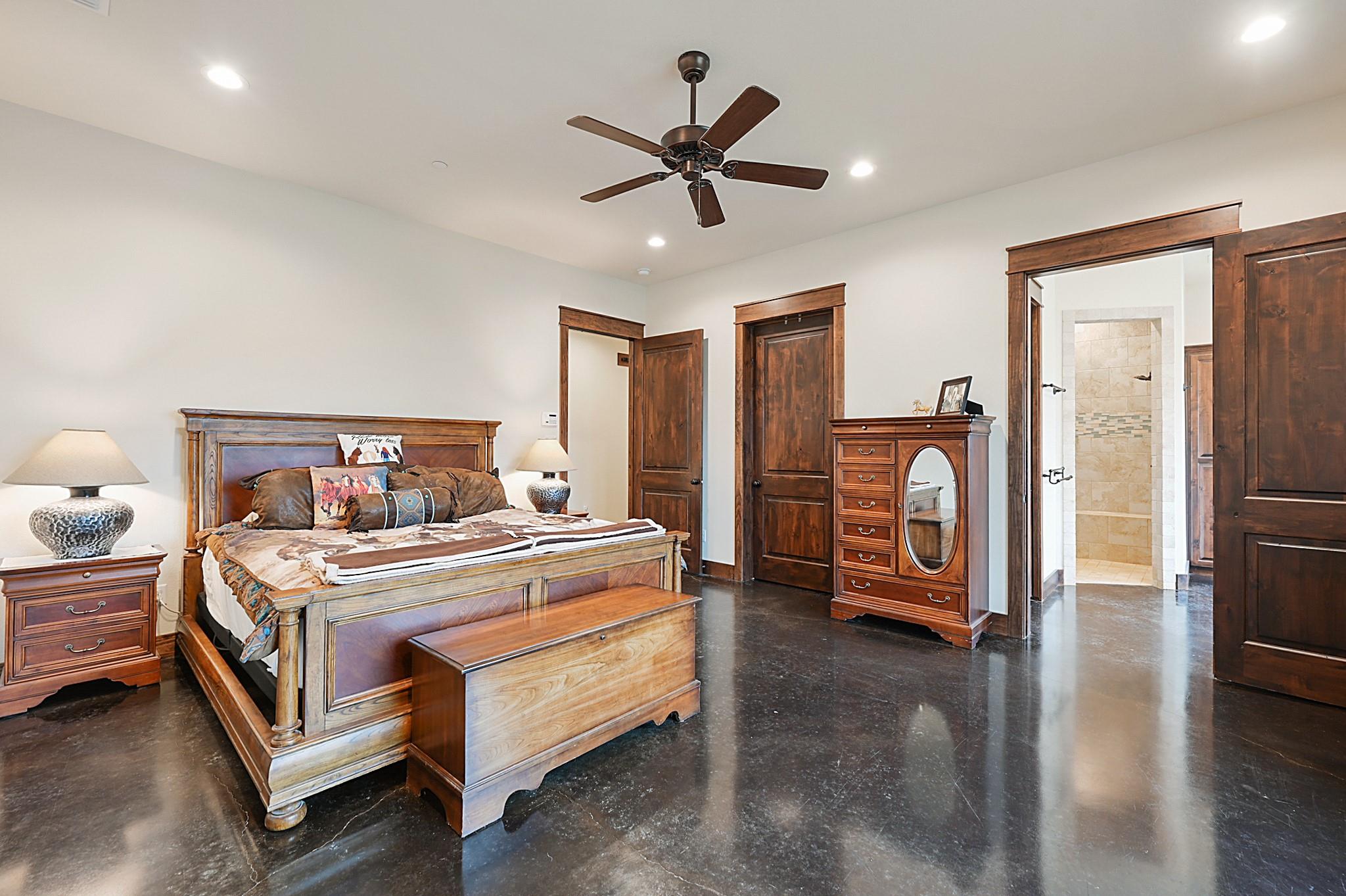 Sincerely stunning & one of a kind custom country home on 114 acres provides you luxury living at its finest! With open and wooded areas, wildlife or livestock lovers will be right at home! This rural stunner was built in 2018, and you will find no detail left undone in this gorgeous open concept 4 bedroom, 4.5 bath home. You will love the stained concrete flooring, high ceilings, stone accents, upscale finishes, indoor and outdoor fireplaces, ample windows that provide natural light and views for days! Entertainers dream high end appliances, wet bar with “sonic ice” and giant eating bar! The bonus room is perfect for a game room or office and you will love all of the barn doors! There are ADA features including large doorways/hallways & walk in shower access! The massive pantry, mud room, laundry room & hidden safe room make this home check all the boxes. Along with the interior elegance, fall in love with nature while you enjoy paved driveway access, 4 car garage with additional storage space, porches all around, fenced yard, outdoor kitchen & additional 1920 sqft 2/1 bath Barndo guest house, lake and stocked ponds & plenty of outside space for breathing room. Cattle or horse ranch dreams are found here!!