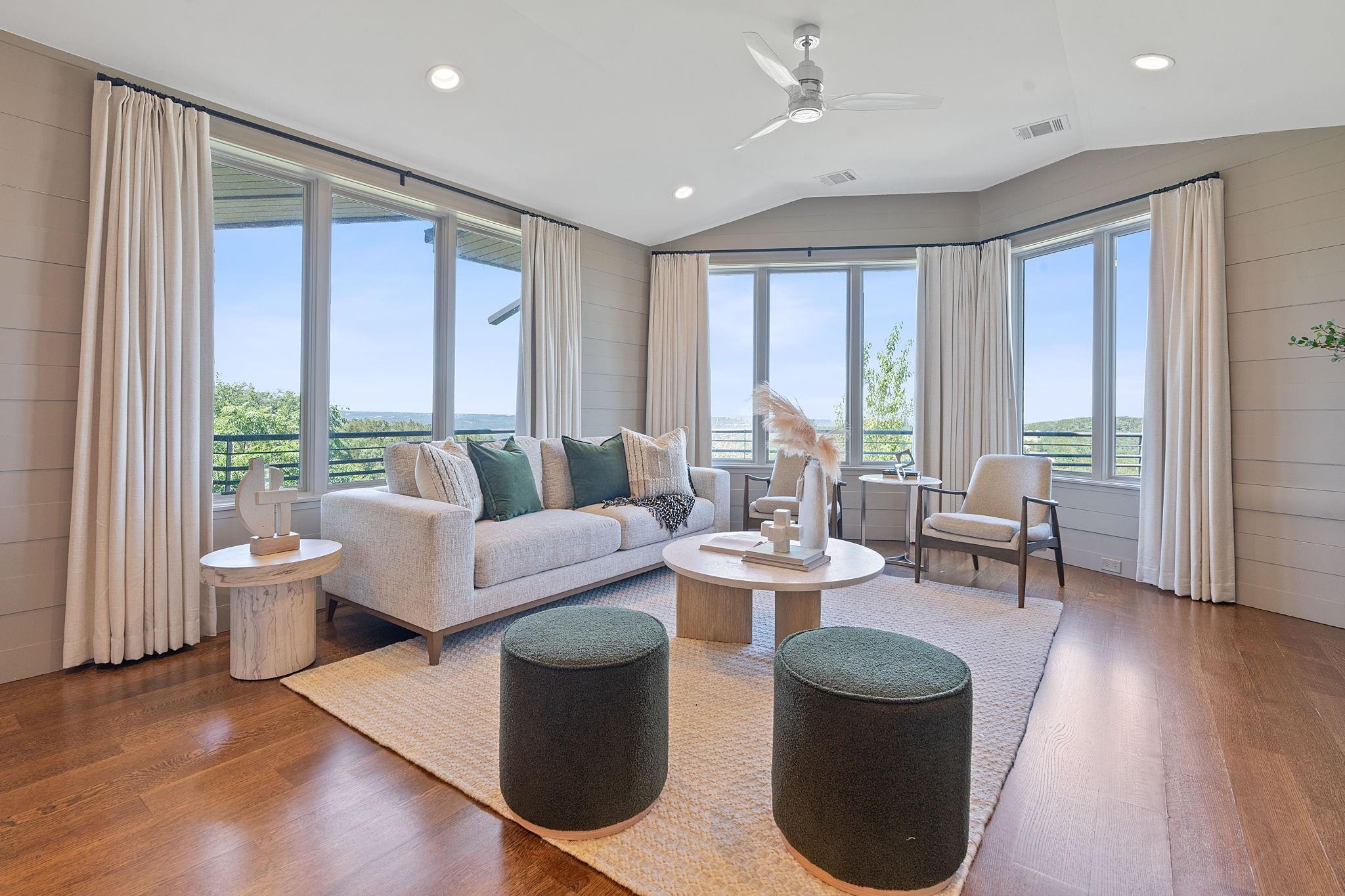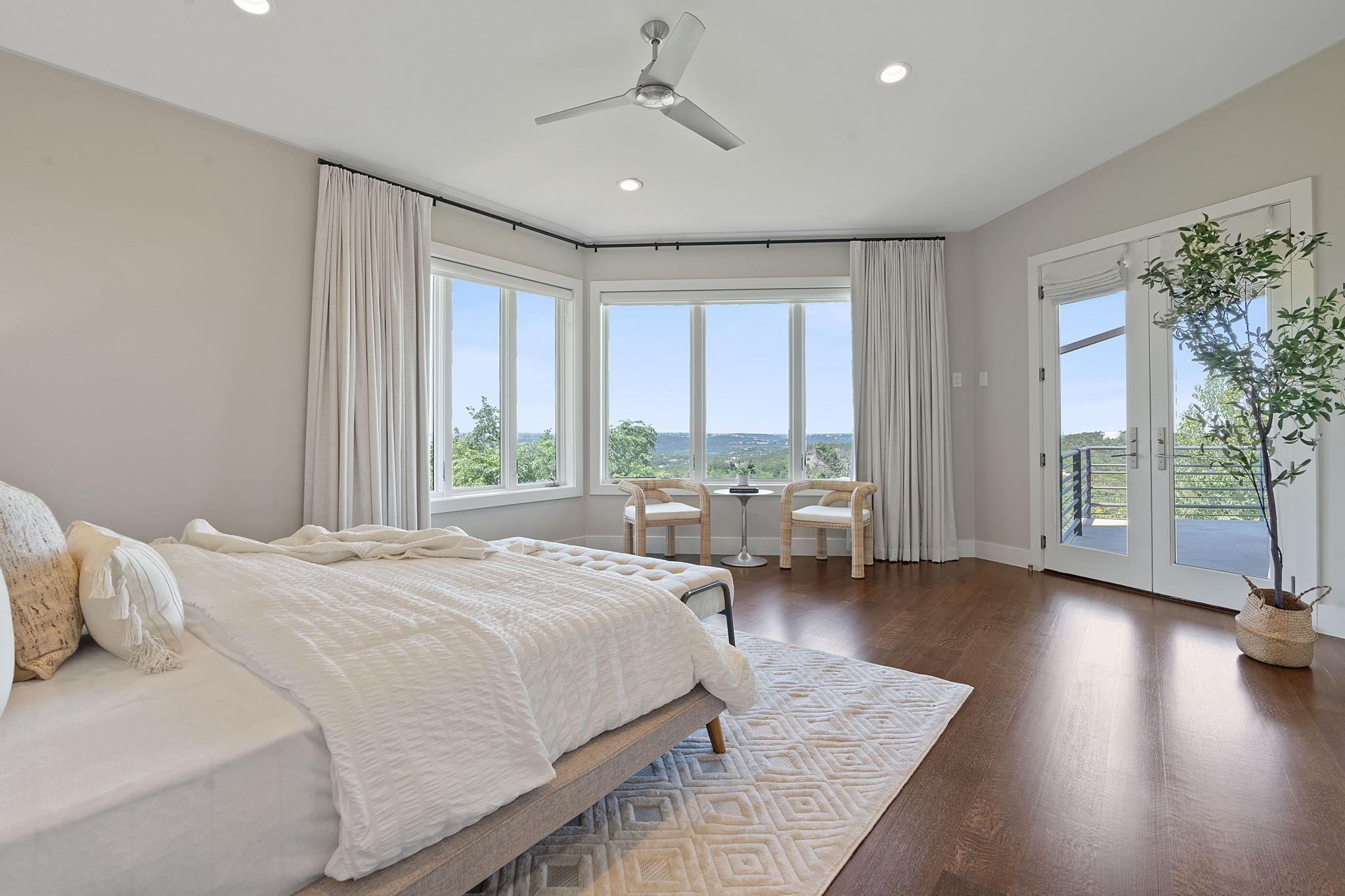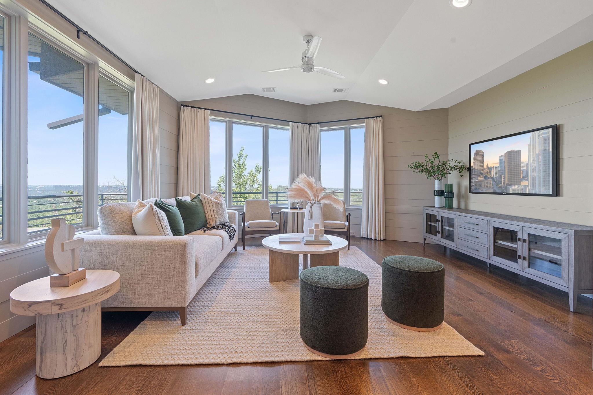 Experience the epitome of luxury living at 10 Hedge Ln, tucked away in the exclusive Rob Roy neighborhood. This majestic property boasts unparalleled panoramic views of downtown Austin and the lake from its premier hilltop location. Enter through your private gated driveway and arrive at a grand motor court that accommodates multiple guests and showcases a sprawling greenspace for recreation with a sports court for the ultimate in entertainment. Once inside discover Venetian plaster walls, custom cabinetry, and thoughtfully placed windows adding a lavish ambiance to every room. The expansive back patio is a serene retreat to bask in the stunning city and lake views, enveloping you in a peaceful haven of tranquility.